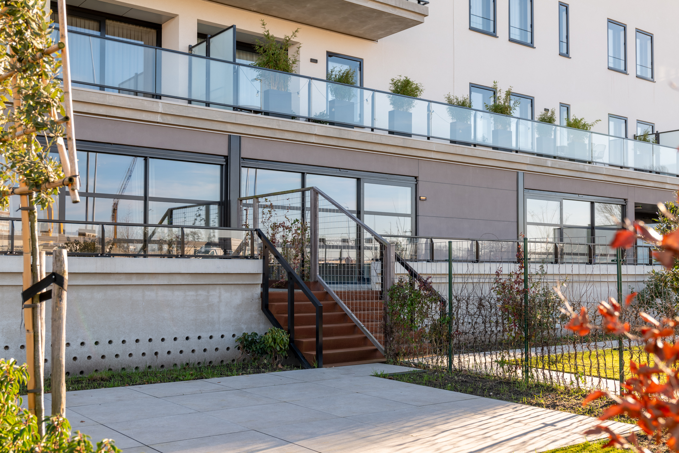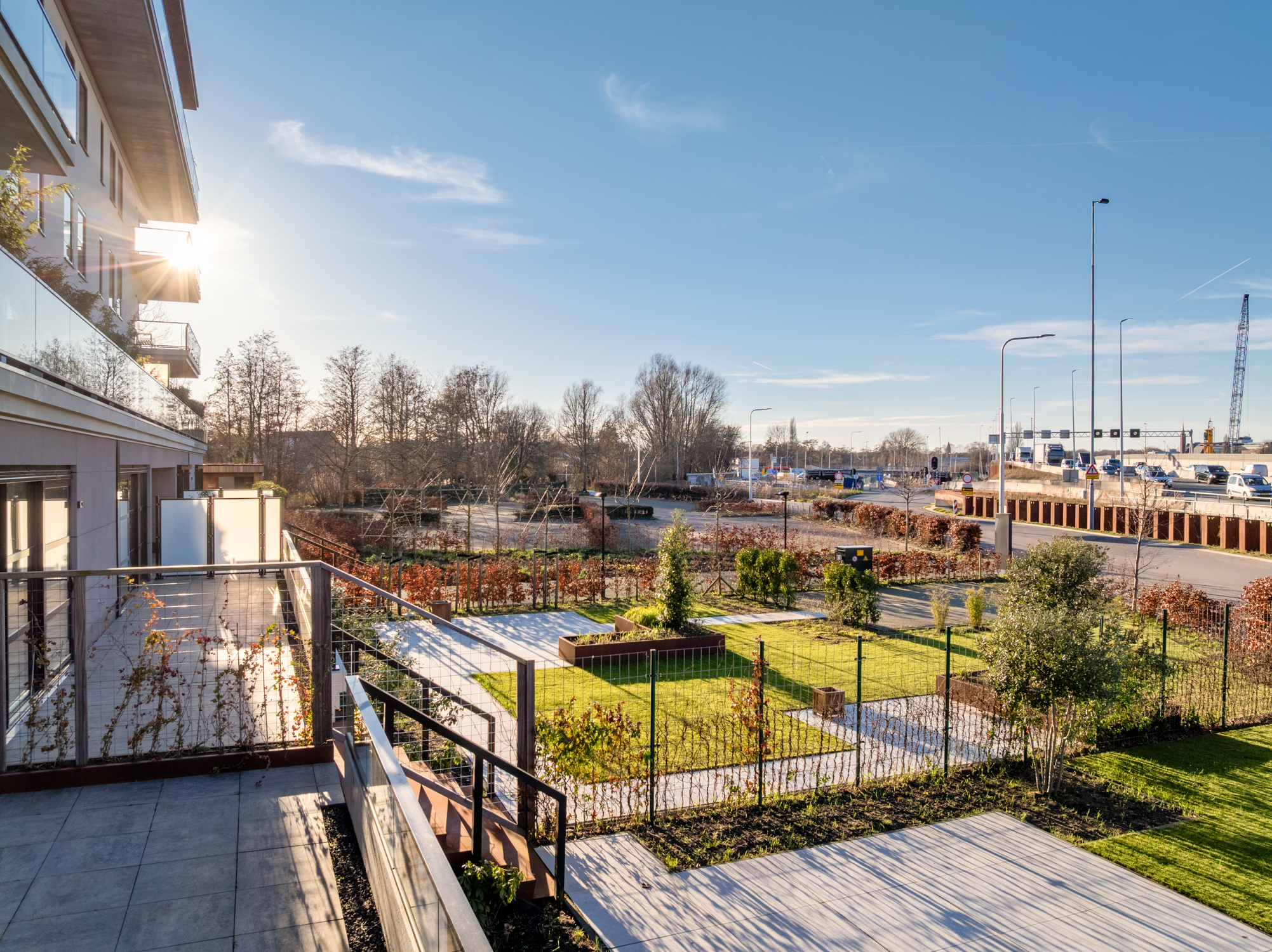 Aan de voorzijde ligt een heerlijke en zeer royale tuin en aan de achterzijde een zeer ruim terras over de volledige breedte van het appartement.