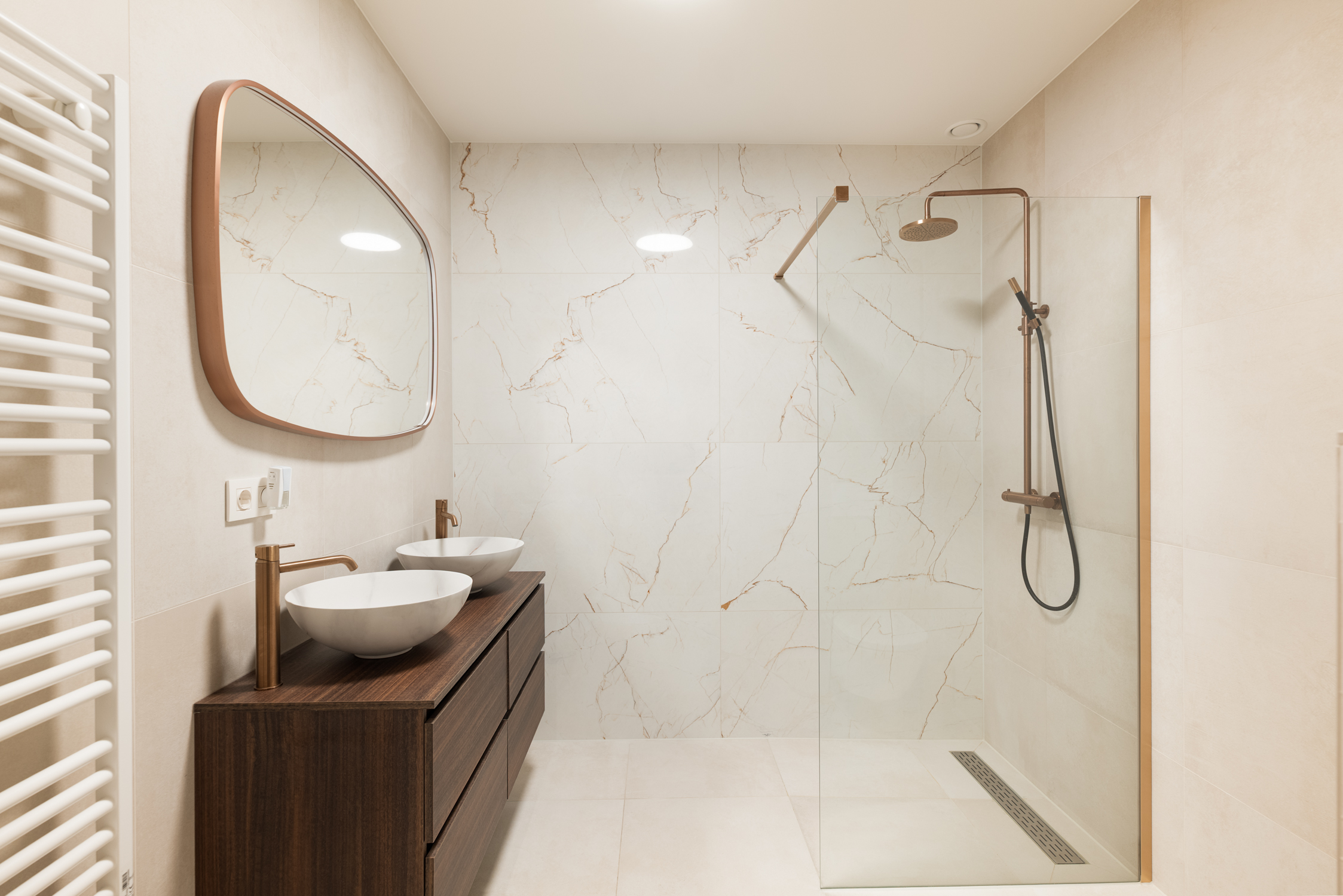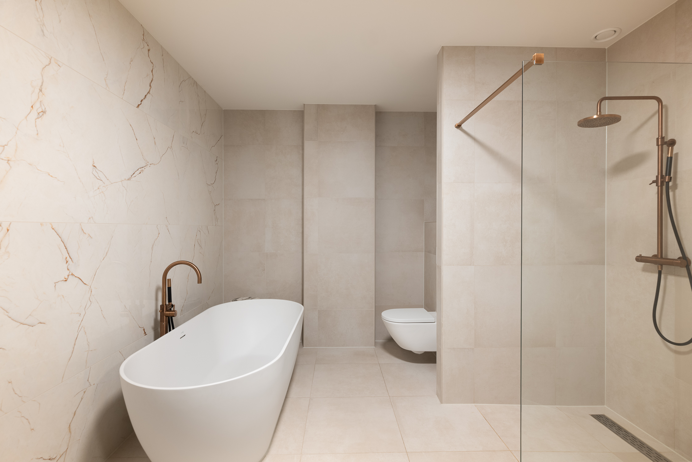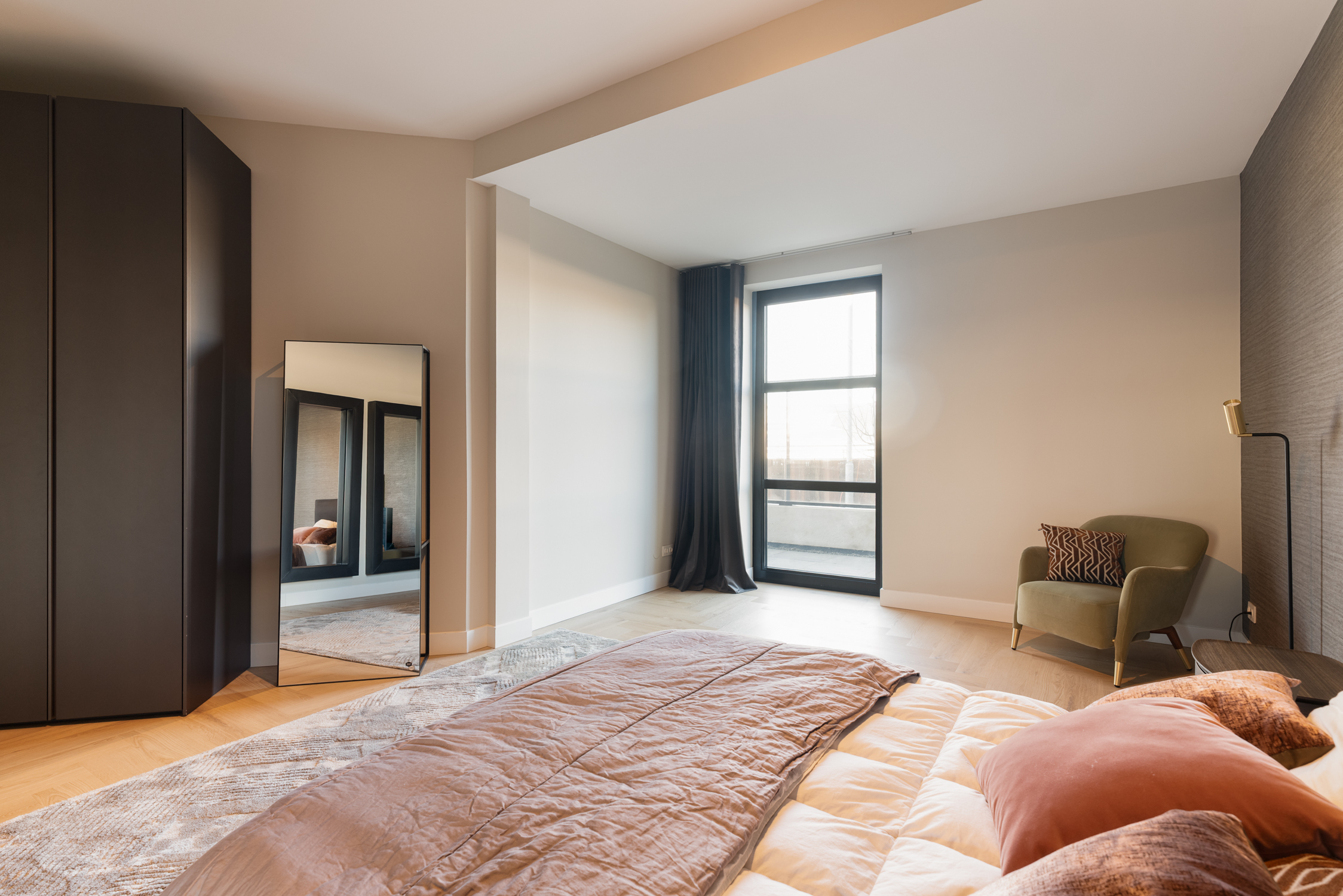 Het appartement beschikt over drie volwaardige slaapkamers, ieder met optimale maatvoering. De master bedroom heeft een luxe ensuite badkamer en een rustige ligging. De tweede badkamer is eveneens modern uitgevoerd en centraal gelegen.
