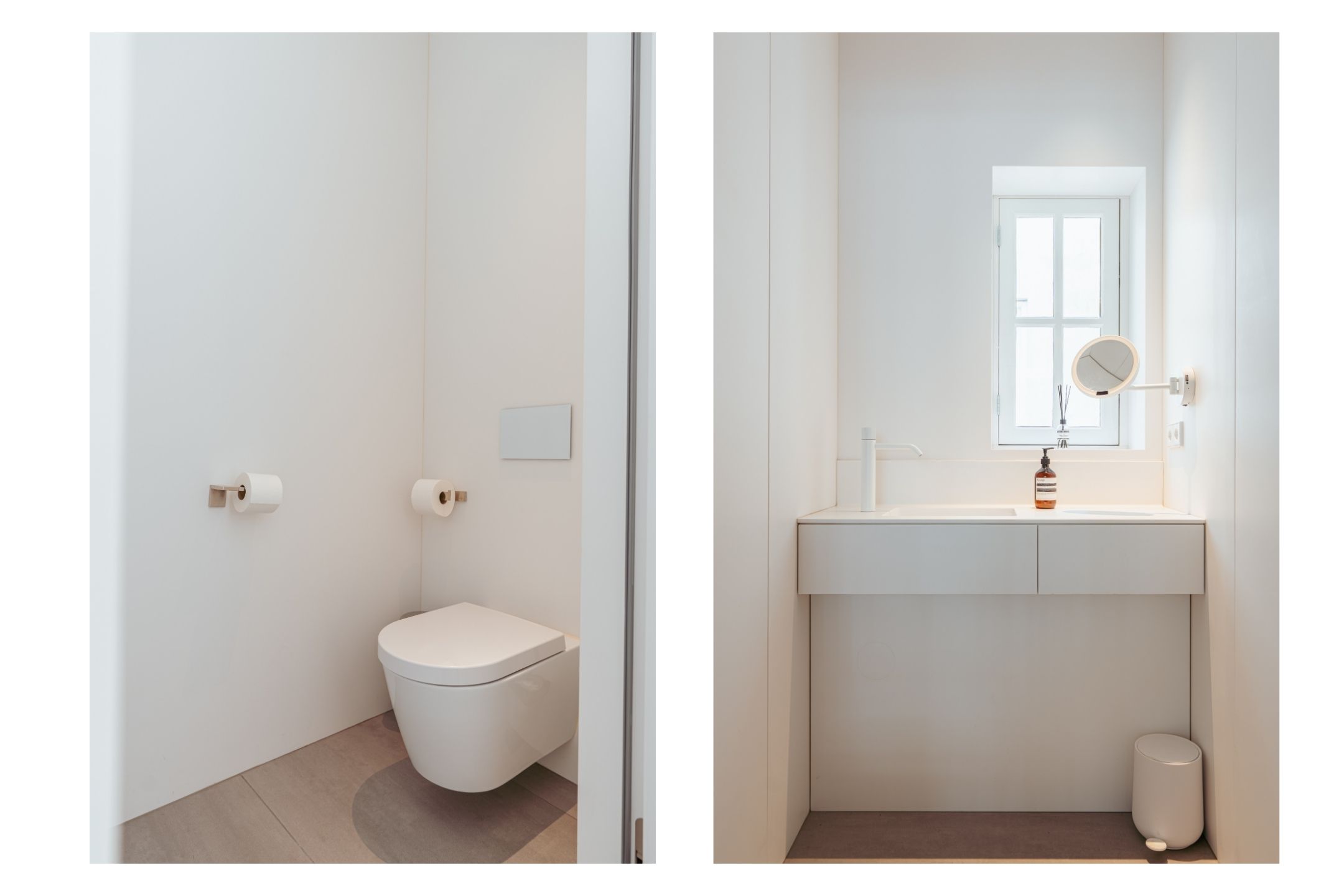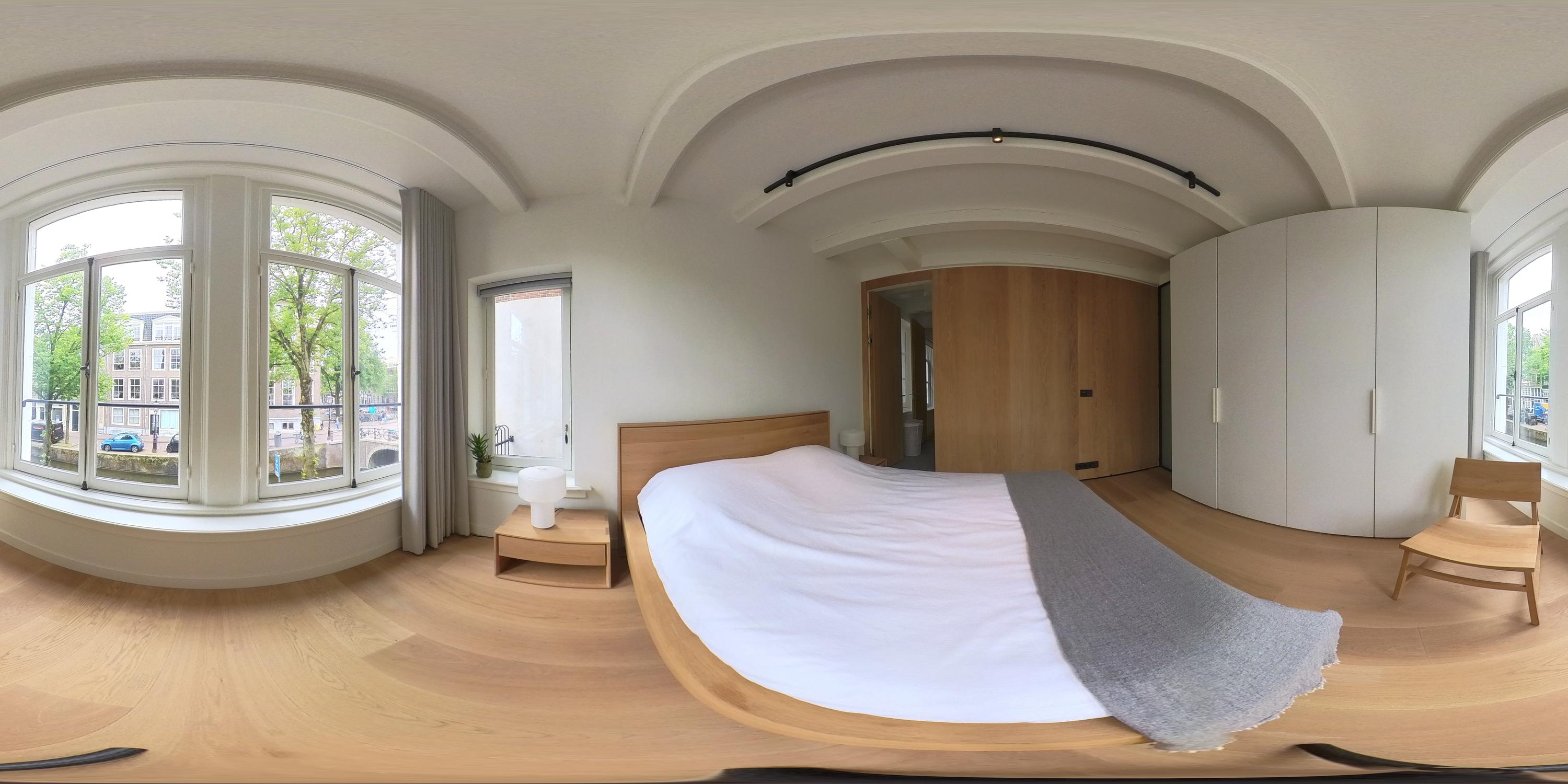 De bovenste verdieping van het pand is volledig ingericht als exclusieve master bedroom – een stijlvolle oase van rust, ruimte en comfort. Centraal op deze etage bevindt zich een ruime walk-in closet, voorzien van op maat gemaakte kasten die niet alleen praktisch zijn, maar ook bijdragen aan de serene uitstraling van de ruimte. Aan de voorzijde vindt u de sfeervolle slaapkamer, waar authentieke plafondbalken en een indrukwekkende nokhoogte direct in het oog springen. Hoge ramen tot in de nok zorgen voor een overvloed aan natuurlijk licht en versterken het gevoel van openheid en ruimte. Ook hier zorgen ingebouwde kastenwanden voor een strak en opgeruimd geheel. Aan de achterzijde ligt de luxueus uitgevoerde badkamer, een ware wellnessruimte in eigen huis. Hier treft u een elegant vrijstaand Agape Spoon Woodline ligbad als eye-catcher, een dubbele wastafel met stijlvol meubel, een bijzonder royale inloopdouche, stoomcabine én een ingebouwd ligbed voor ultieme ontspanning. De ruimte is afgewerkt met warme materialen en doordachte details, waaronder ingebouwde verlichting die een gevoel van hotel-luxe oproept. Prachtige houten schuifpanelen dienen zowel als zonwering als sfeervol designelement en zorgen voor privacy zonder het daglicht buiten te sluiten. Het toilet is separaat gesitueerd.