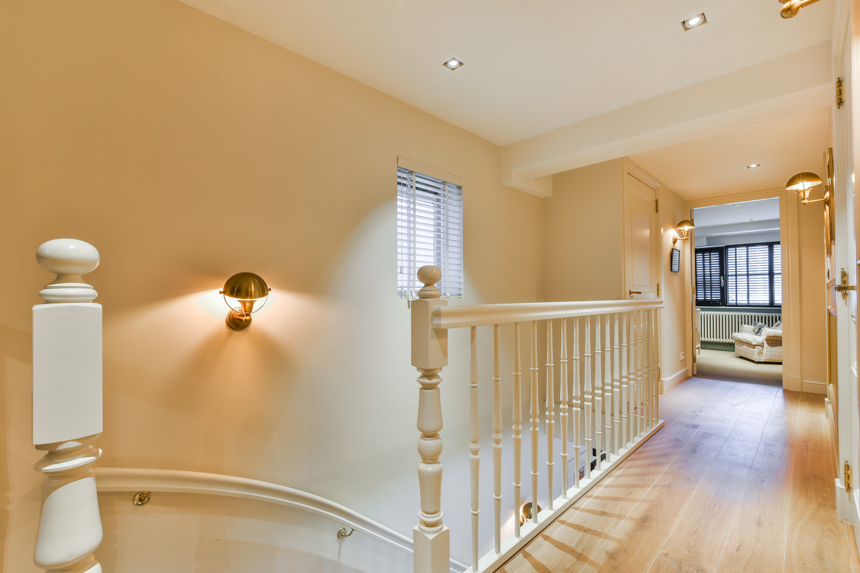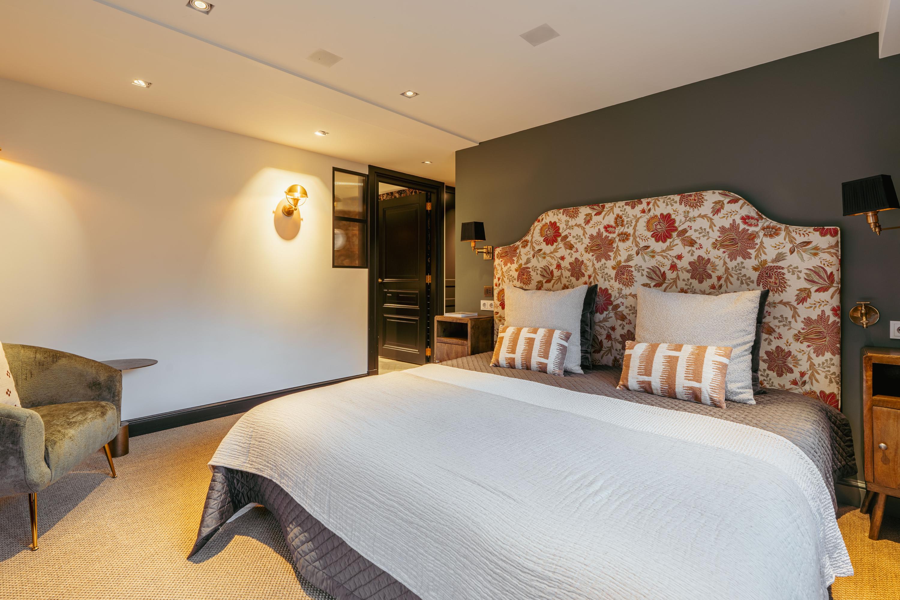 Op deze verdieping valt het gelijk op dat de stijl van beneden is doorgetrokken, met oog voor detail en afwerking. In totaal zijn er drie ruime slaapkamers, waarvan één de master bedroom en twee badkamers, o.a. voorzien van een ligbad en een rainshower voor twee personen. De master bedroom heeft een walk-in-closet en inbouw geluidsspeakers.