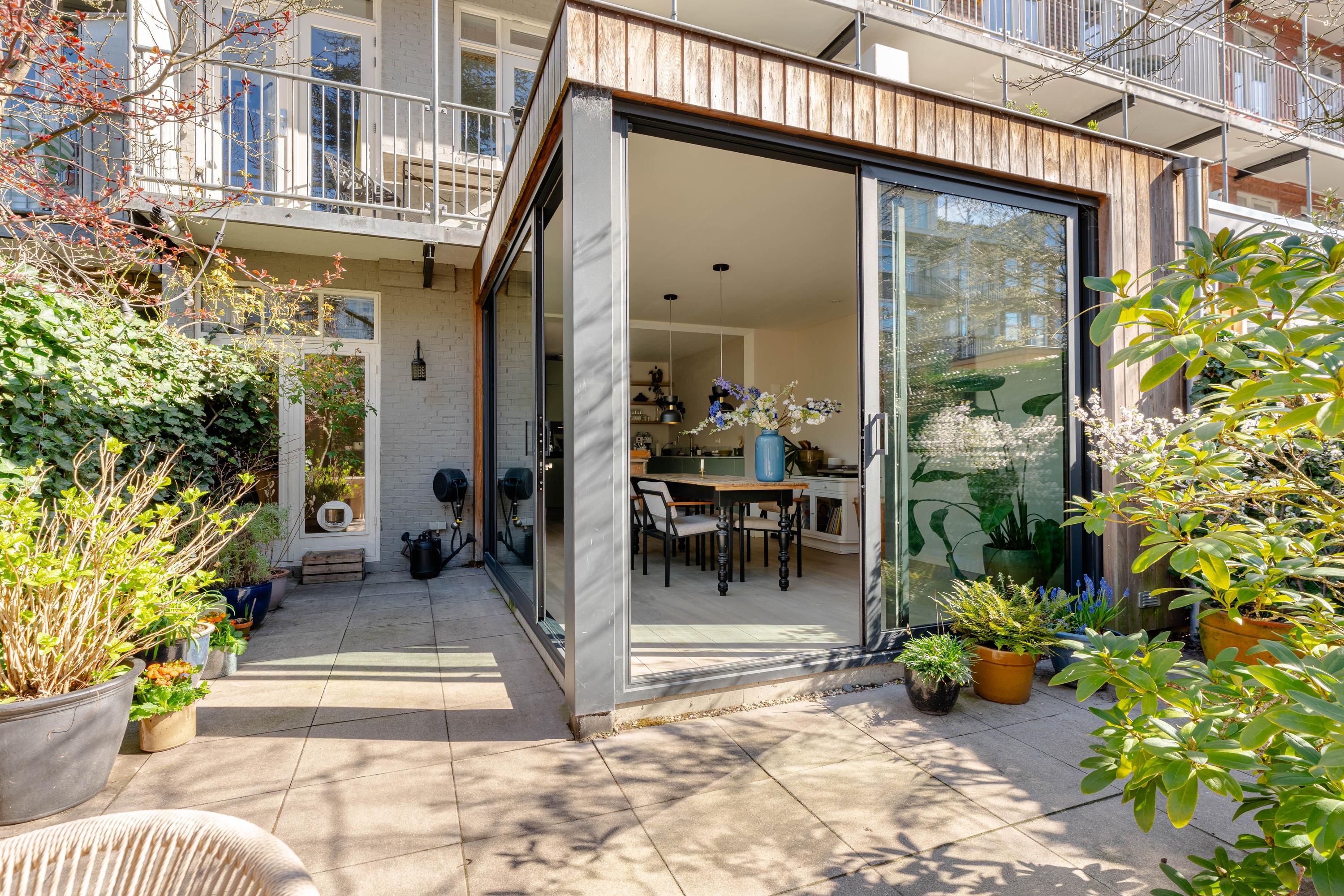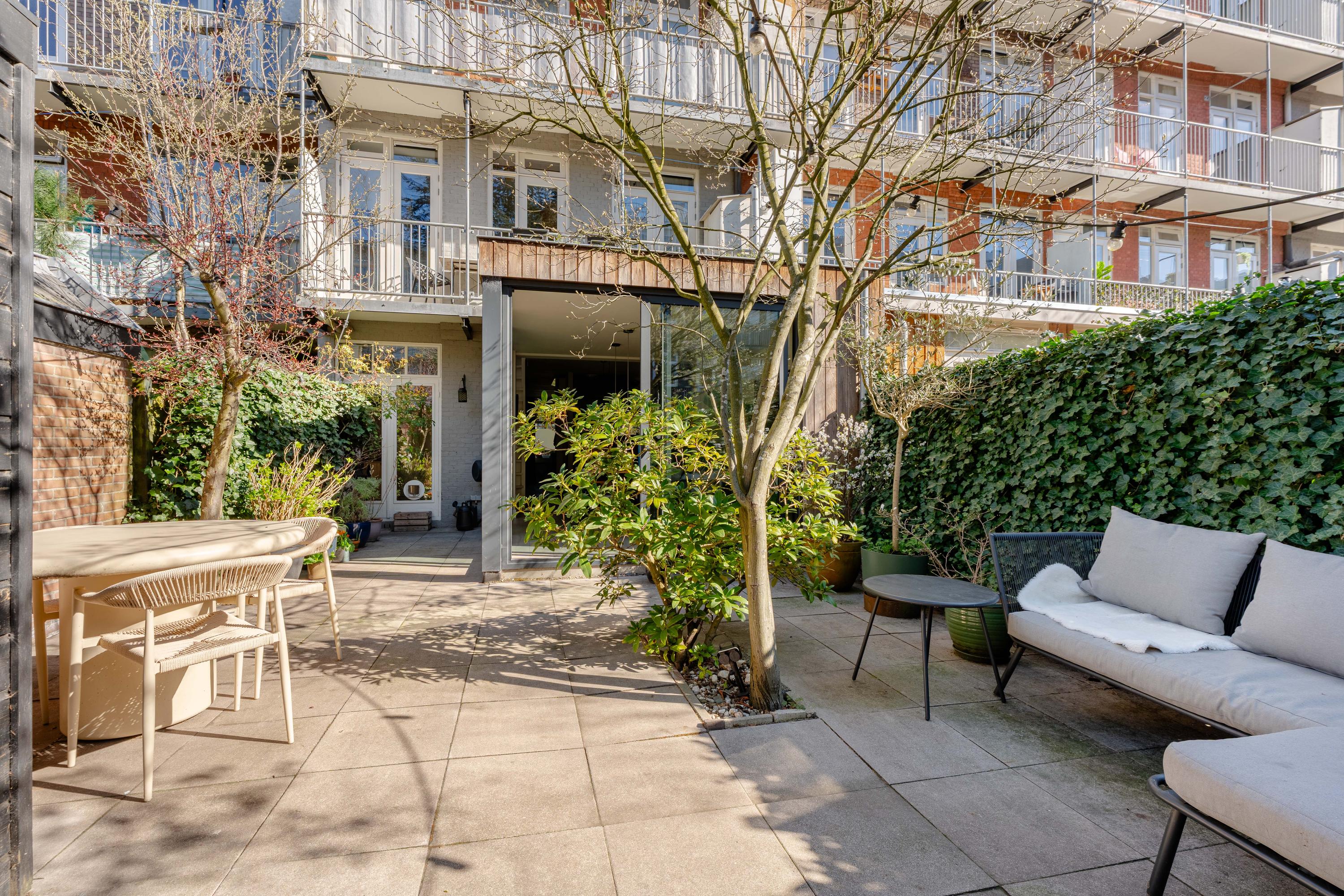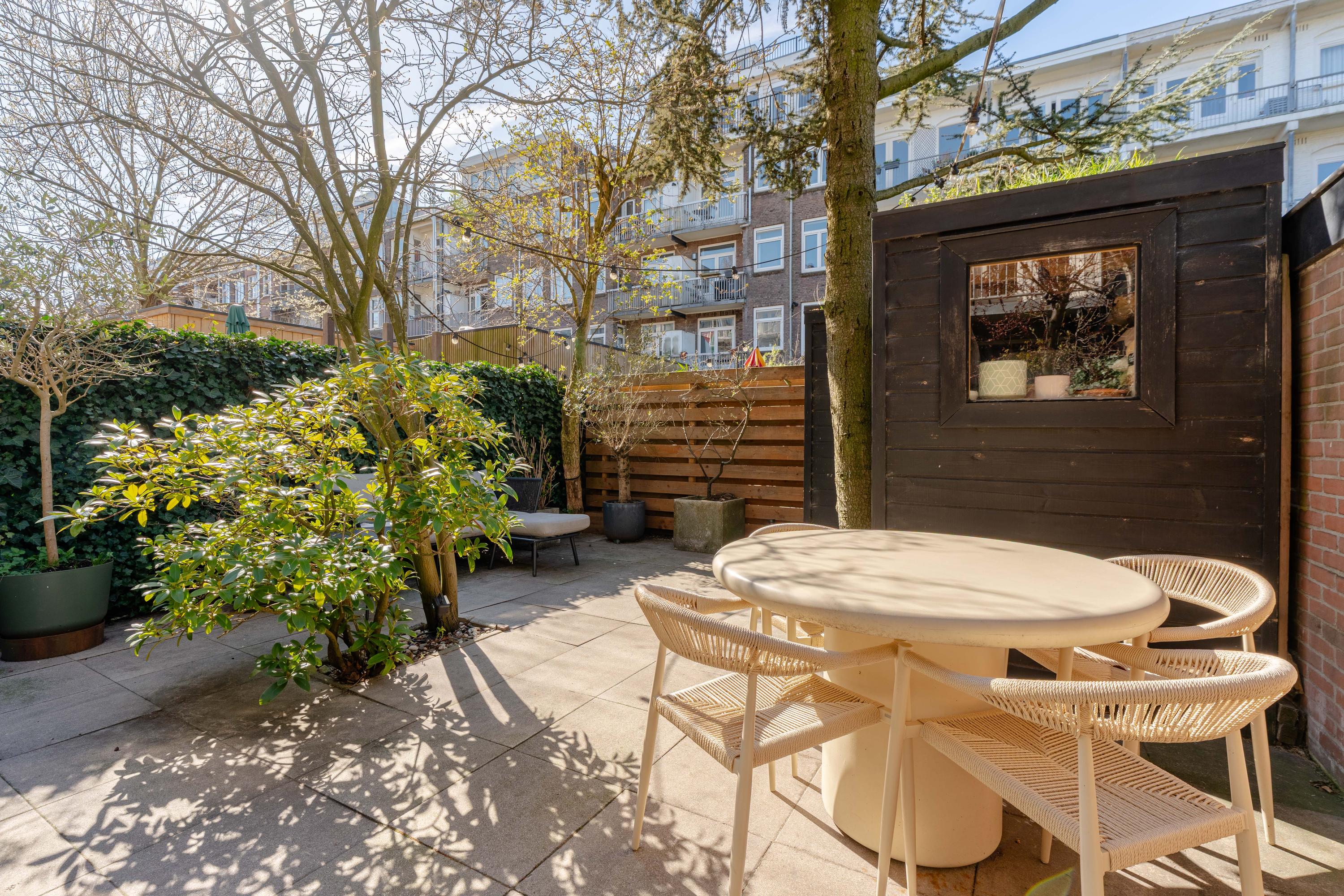 De woning beschikt over een fraai aangelegde en zonnige achtertuin, gelegen op het zuidwesten. Dankzij deze gunstige ligging geniet u hier van veel zonuren in de middag en avond. De tuin is verzorgd aangelegd en biedt meerdere zitmogelijkheden, waardoor er volop ruimte is voor zowel een eettafel als een loungehoek.