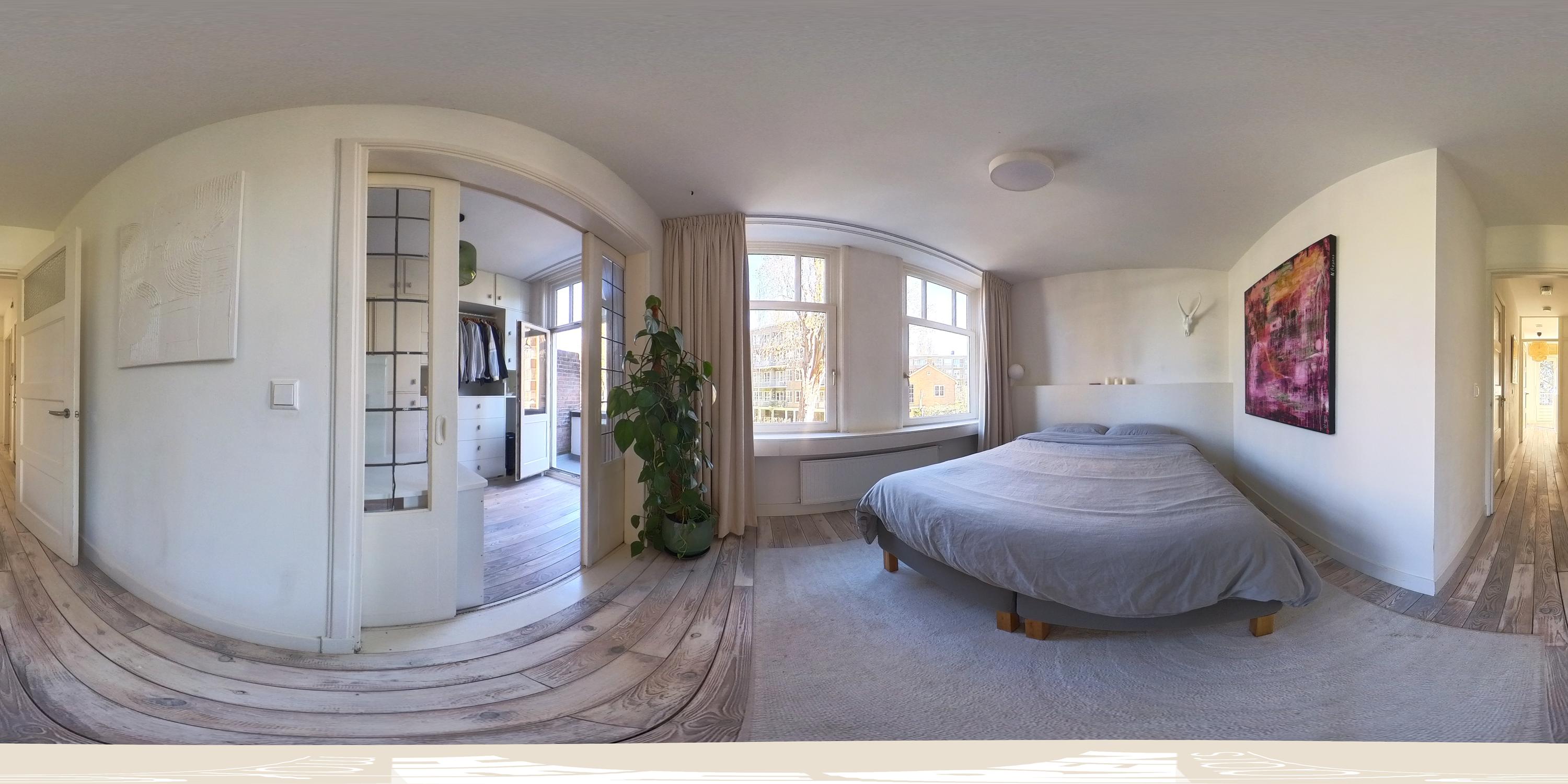 Aan de voorzijde ligt de royale master bedroom, die dankzij de brede raampartijen een aangename lichtinval heeft. Aangrenzend bevindt zich een ruime walk-in closet, die niet alleen volop kastruimte biedt, maar tevens ruimte heeft voor een werkplek of dressing. Vanuit deze ruimte is eveneens het balkon aan de voorzijde bereikbaar.