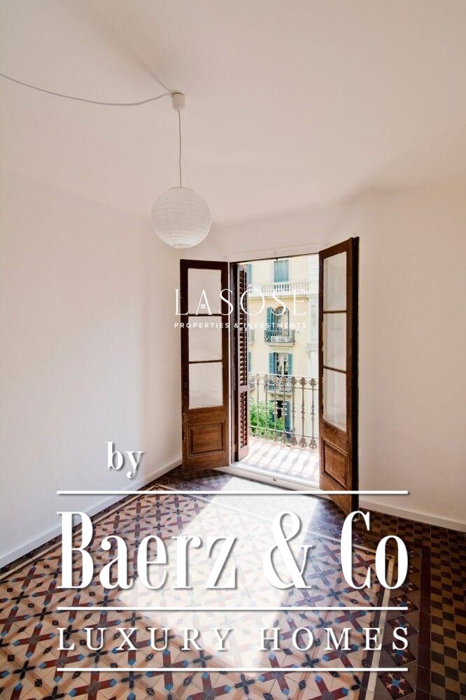 This bright apartment needs a complete renovation, located in the center of Barcelona with an unbeatable connection to the whole city. With a built area of 137 square meters adding a terrace of 26 meters, this spacious apartment offers a unique living experience in the city.. . The images shown are only indicatives. For the real ones, please contact us directly. For privacy reasons we can't publish them.. . Located in a royal 1920's estate, typical of the charming Eixample neighborhood, with a ceiling height of more than 3.20 meters and original elements such as period woodwork and ceilings with moldings, this property stands out for its elegance and charm.. . Its abundant natural light highlights the ample spaces and offers a space full of possibilities. The interior layout of the apartment allows for a unique versatility, with a rectangular floor plan and few load-bearing walls, ideal for adapting it to your needs and tastes. The large square terrace gives a big opportunity and has a storage on the back.. . The apartment is located on a real first floor and doesn't have an elevator. In addition, the presence of a concierge in the building adds security and attention to the residents.. . The location of this property is unbeatable, close to a wide variety of services, leisure areas, restaurants, parks and gardens. It also has an excellent connection to public transport, with several metro stops nearby, such as Urgell and Rocafort.. . *LOCATION*. . The neighborhood
