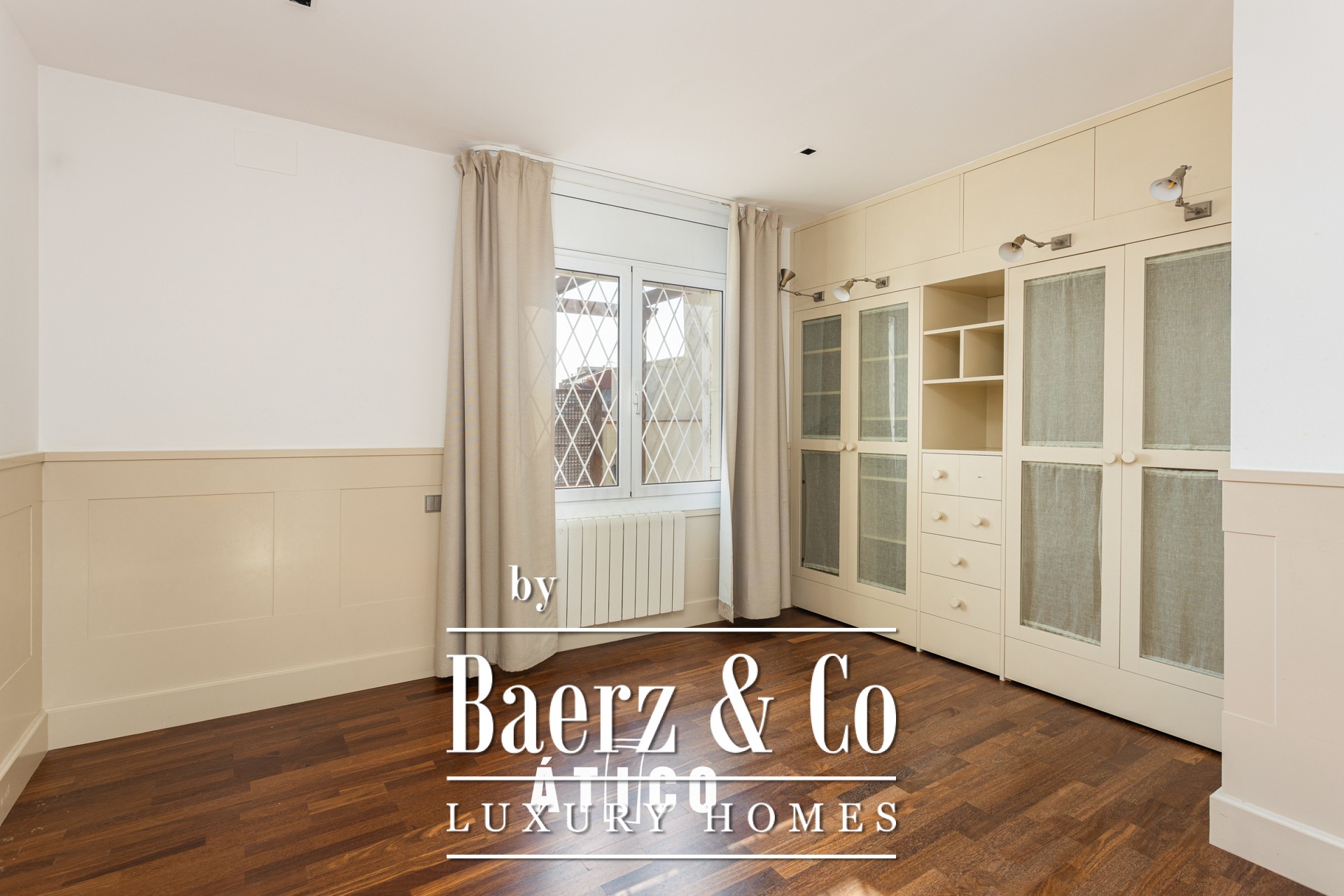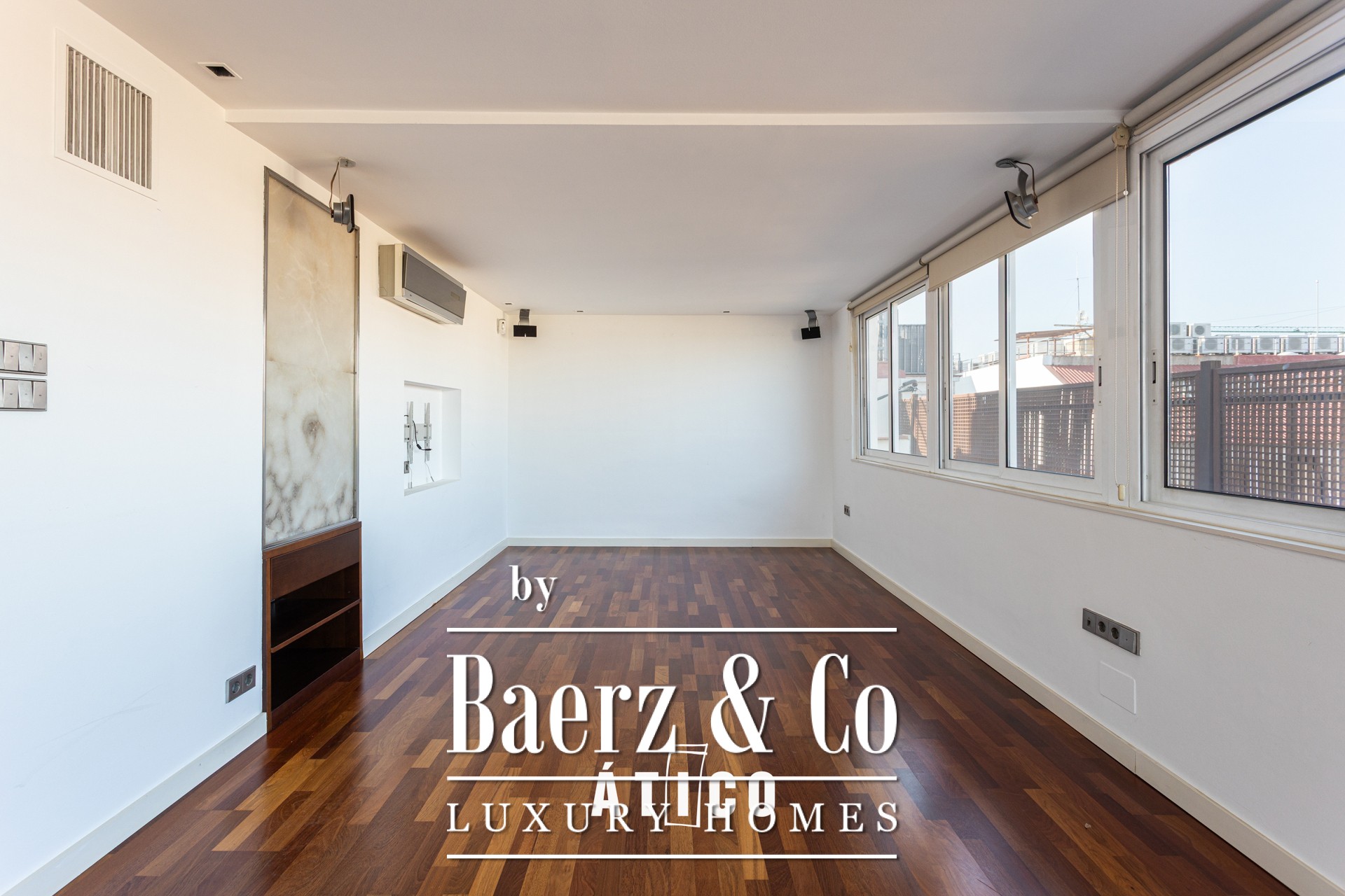 Centraal in het penthouse liggen twee royale terrassen: één op het oosten, met panoramisch uitzicht over de kustlijn, en één op het westen met zicht op de Tibidabo-berg, die de essentie van het Barcelonese landschap vangt. De keuken, voorzien van een ontbijtgebied, wacht op persoonlijke invulling en beschikt over een vaatwasser voor optimaal gemak. Doorlopende parketvloeren zorgen voor warmte onder de voeten, terwijl praktische voorzieningen zoals conciërgeservice en twee liften getuigen van verfijnd stedelijk wonen.