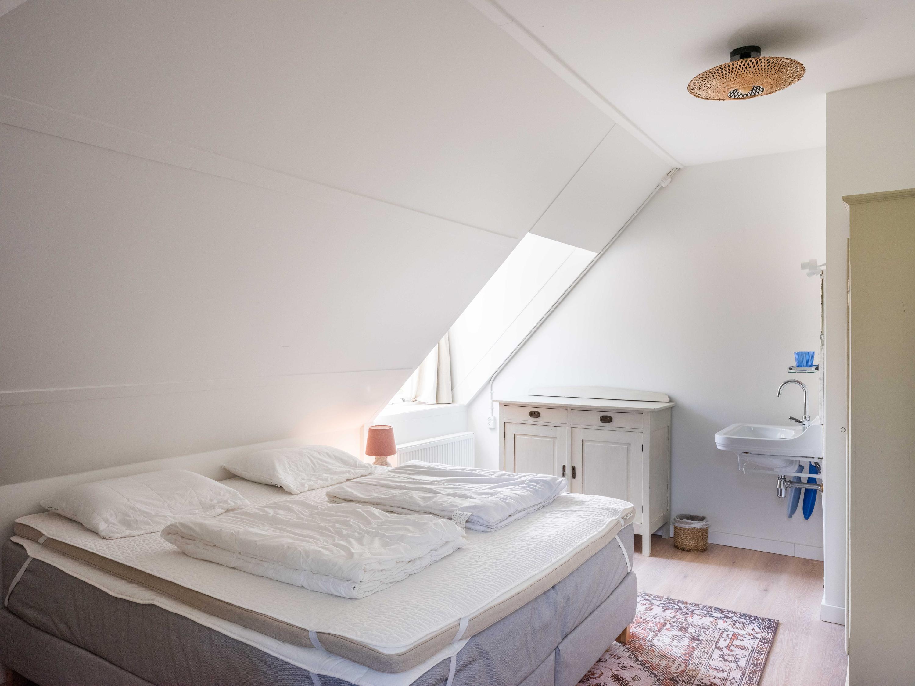 De eerste verdieping beschikt over drie slaapkamers, elk met een wastafel en vaste kast. Dankzij meerdere dakkapellen is er veel licht en ruimte. Er is een aparte cv-kast en een tweede badkamer met ligbad, douche, toilet, dakraam en mechanische ventilatie.