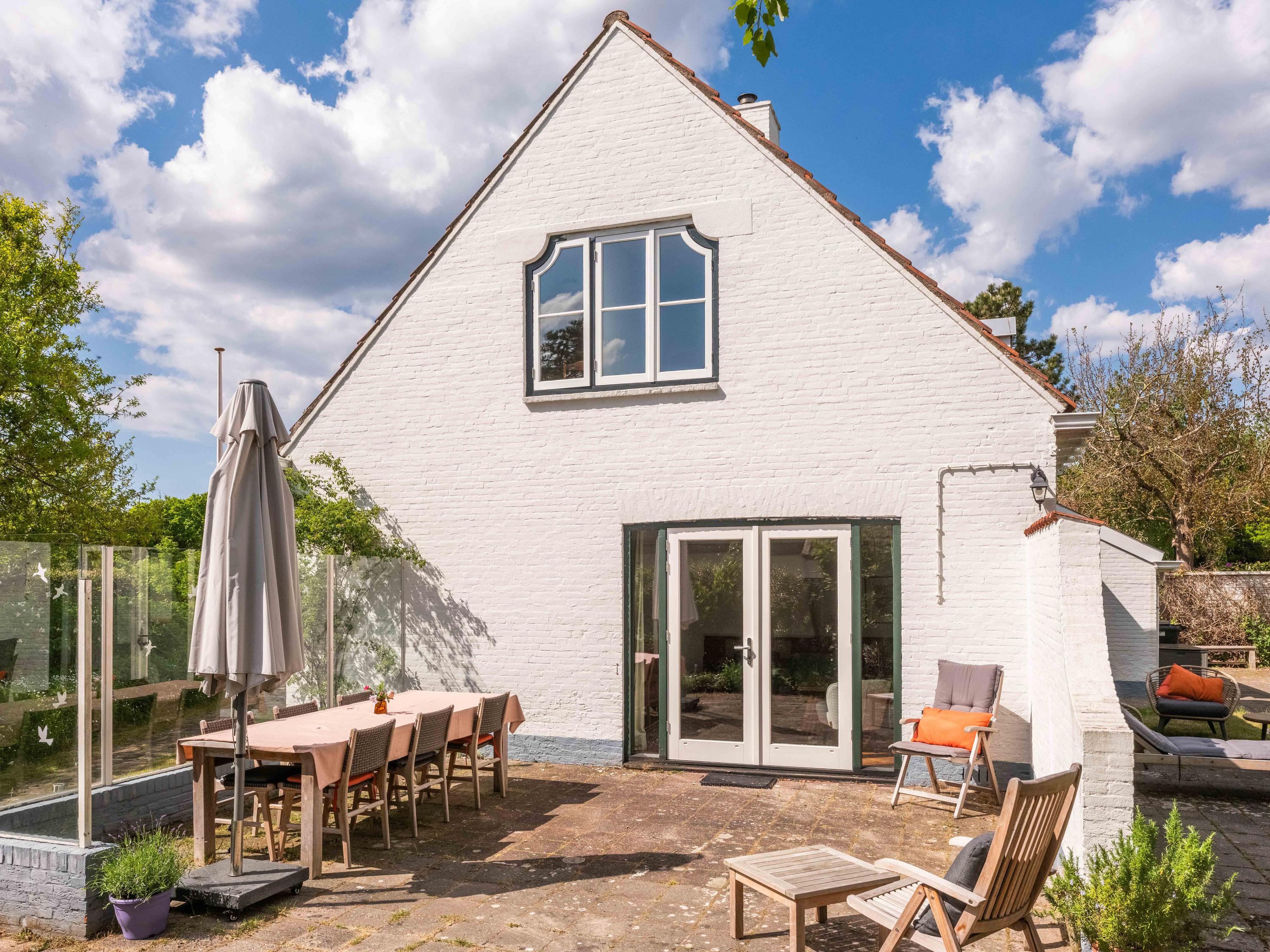 We nemen u mee naar binnen. Bij binnenkomst valt direct de fraaie entreehal op met een stijlvolle trapopgang met smeedijzeren leuning, een moderne toiletruimte en een handige kelderkast. De woonkamer is licht en sfeervol met een originele houten parketvloer, een houtkachel en openslaande tuindeuren naar de groene tuin. Ingebouwde houten maatwerkkasten zorgen voor extra charme én bergruimte.