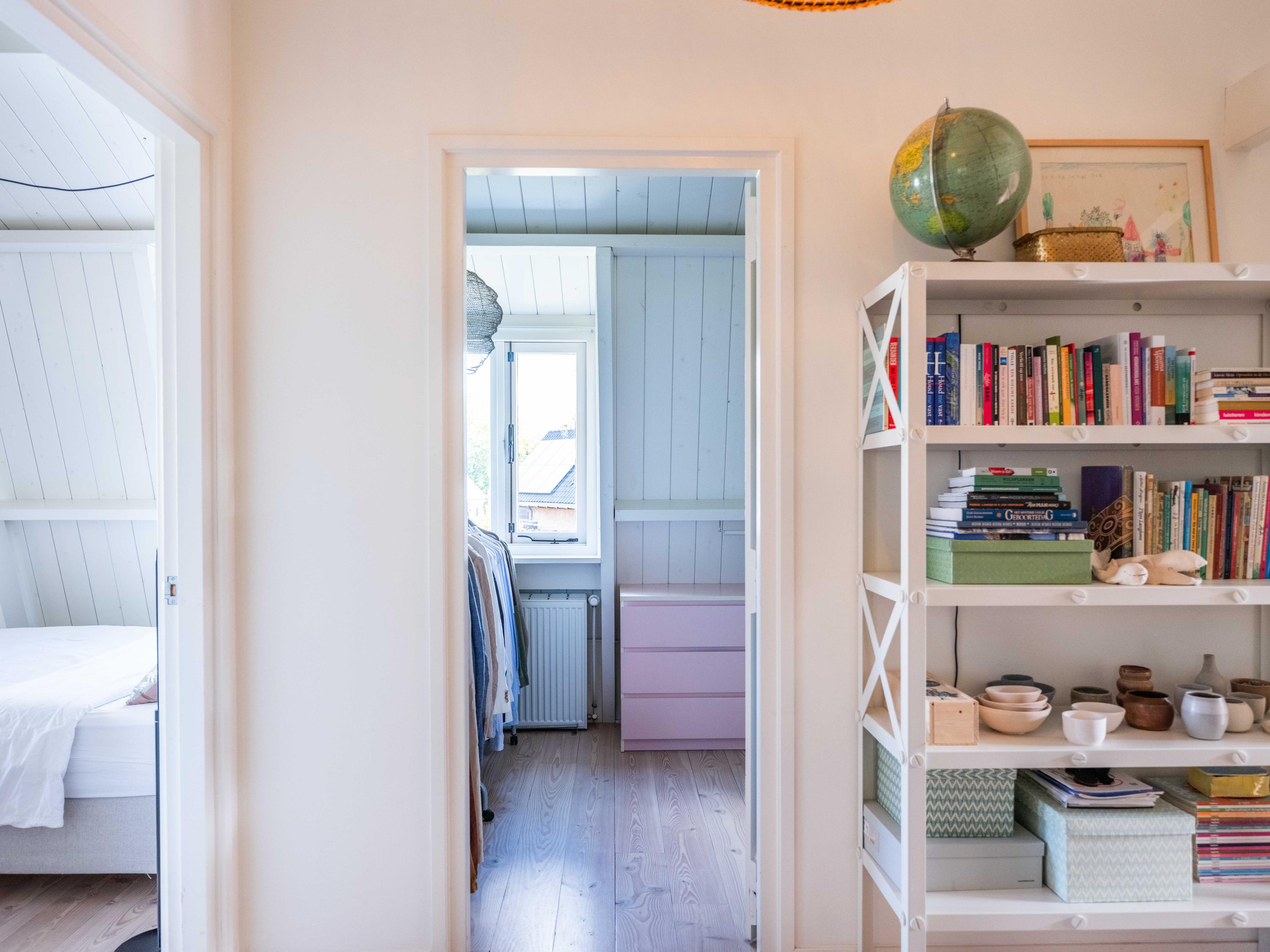 De bovenverdieping beschikt over een ruime overloop met veel hoogte en knieschotten voor extra bergruimte. Er is een royale master bedroom met openslaande deuren naar buiten, een luxe badkamer met dubbele wastafel, inloopdouche, toilet, ligbad en vloerverwarming, een kamer in gebruik als inloopkast en nog twee slaapkamers. Deze zijn opgedeeld door een schuifdeur en beide voorzien van een vide.