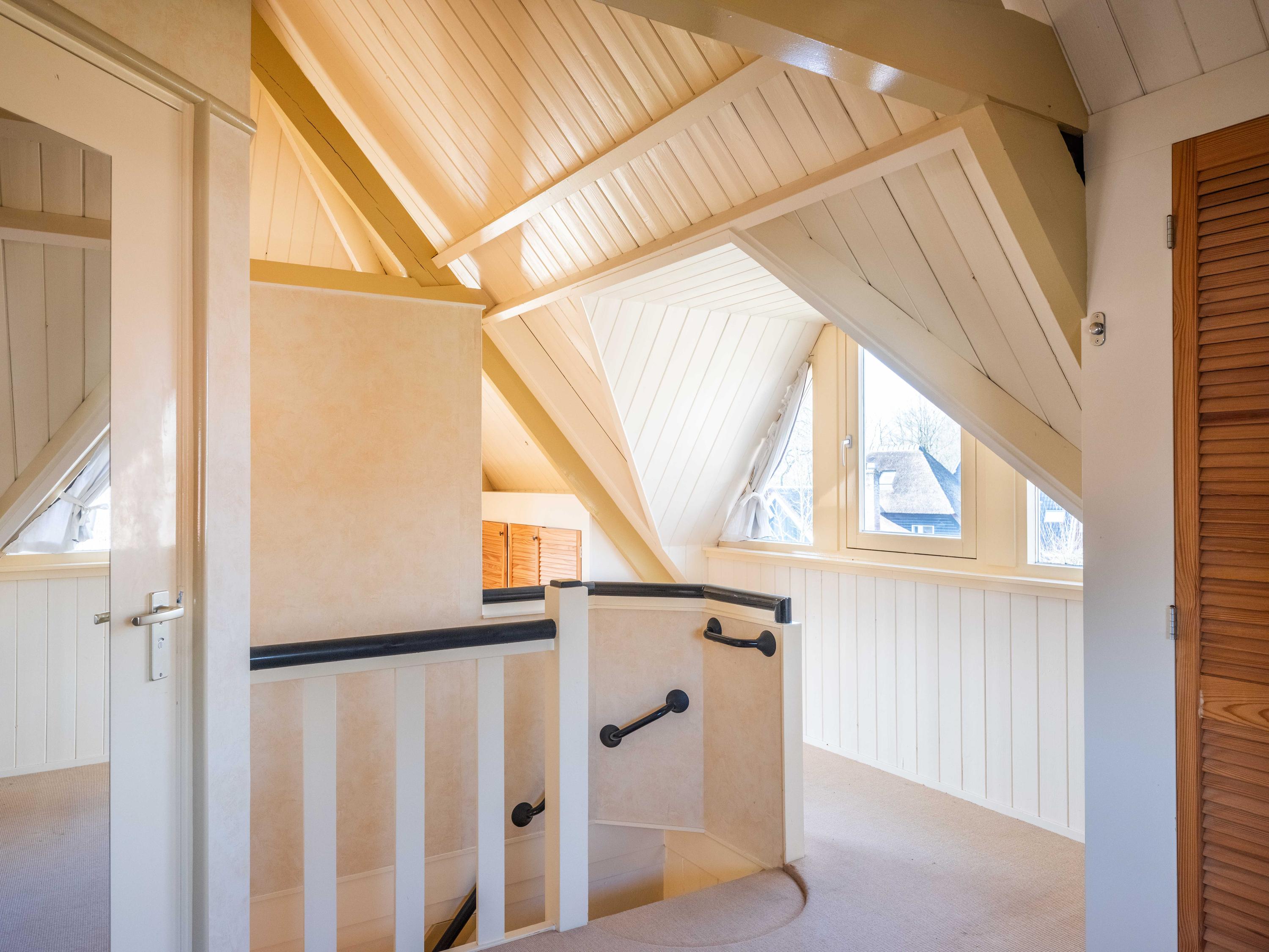 Een vaste trap geeft toegang aan de tweede verdieping, hier is een 4e kamer te vinden, te gebruiken als slaapkamer, werkkamer of studio. Tevens is hier een tweede badkamer met hoekdouche, wastafel en toilet te vinden. In de bergruimte bevindt zich de cv-ketel.