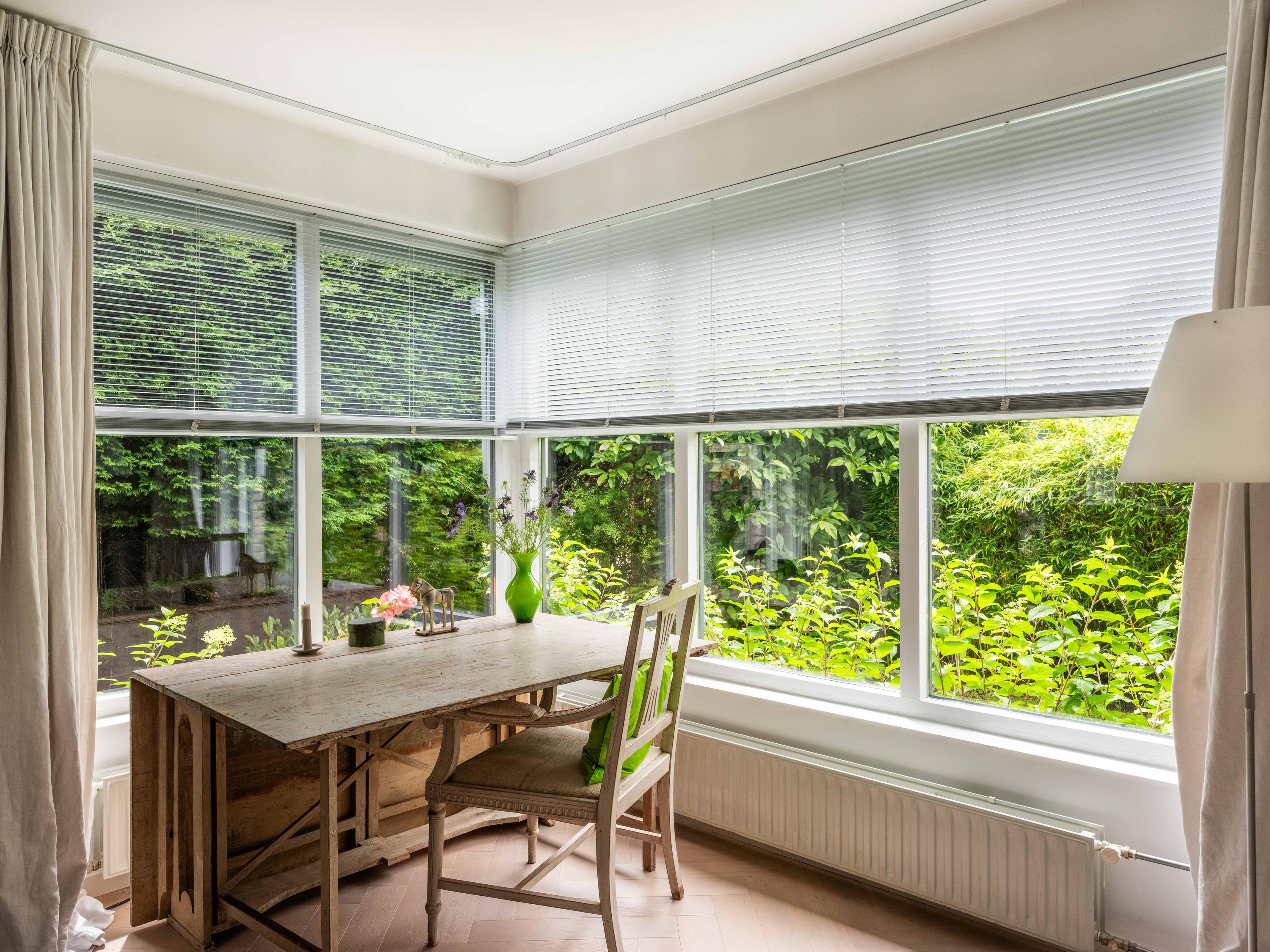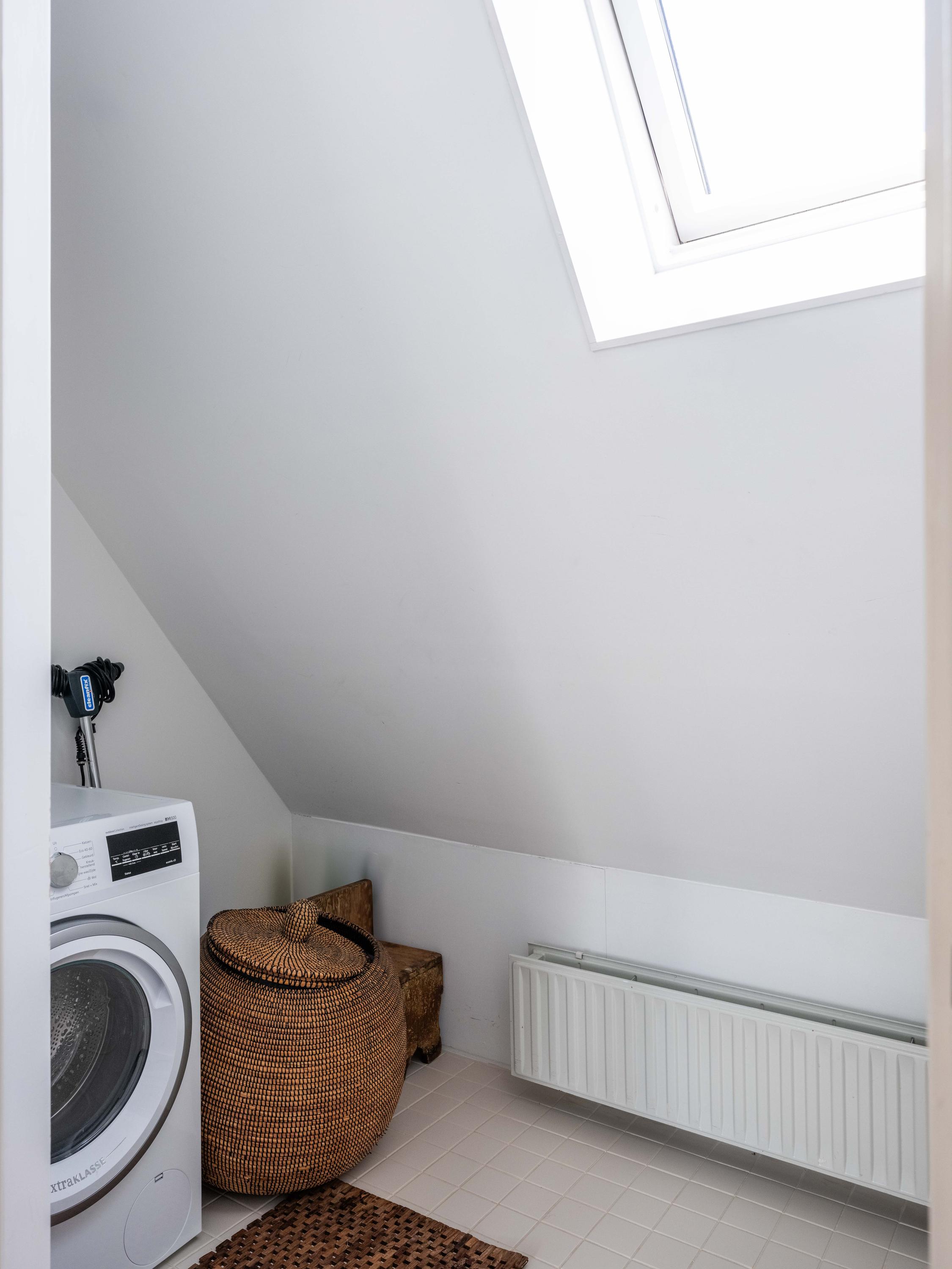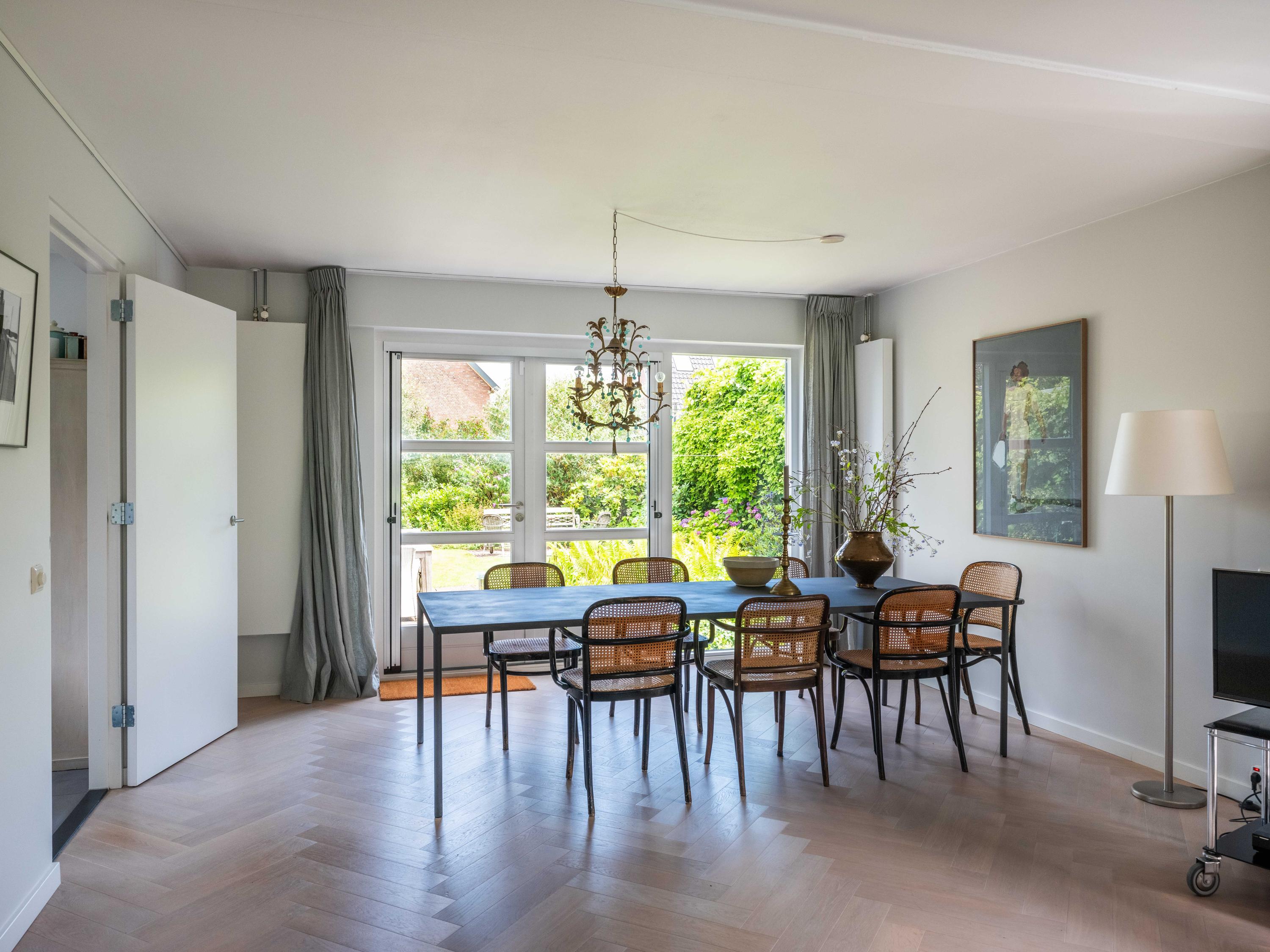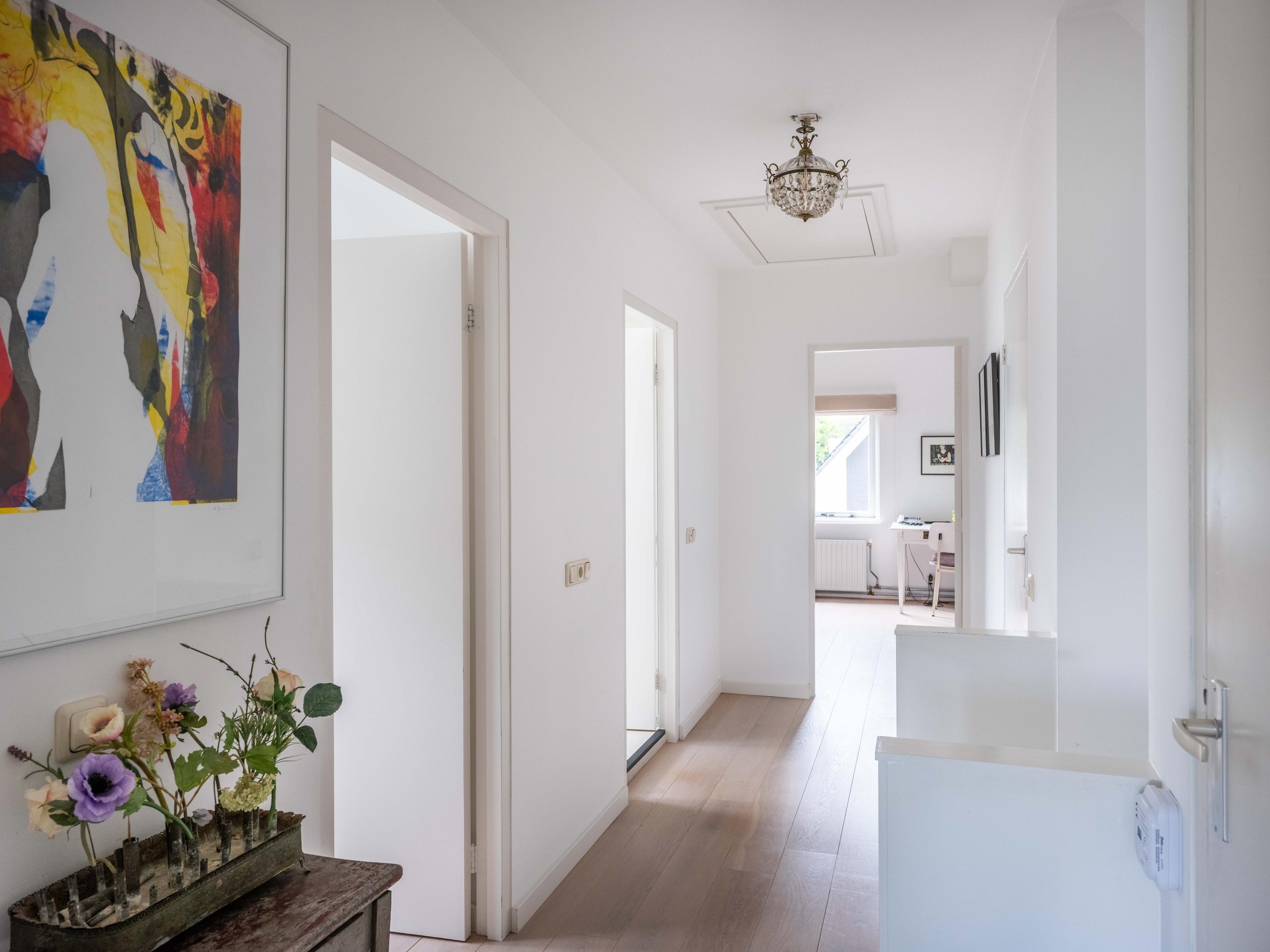 De Bulthaup keuken is uitgerust met een Atag oven, 5-pits gasfornuis, vaatwasser en koelkast. Via een tussenhal met toegang tot de tuin bereikt u een grote berging, voorheen een garage. Deze is voorzien van een water en elektra aansluiting.