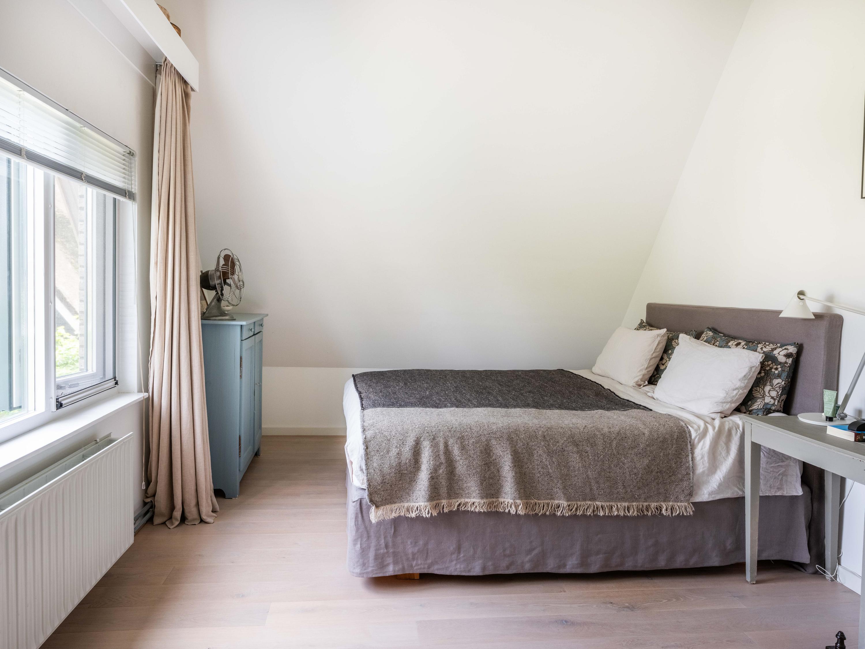 Op de eerste verdieping zijn twee ruime slaapkamers (waarvan één met airco) en een derde, kleinere slaapkamer. De badkamer heeft een dubbele wastafel, ligbad en inloopdouche. Op deze verdieping vindt u ook een ruim toilet en de was-/droogaansluiting. Een vlizotrap leidt naar de zolder die dient als bergruimte en waar de airco en ventilatie-installatie zich bevinden.