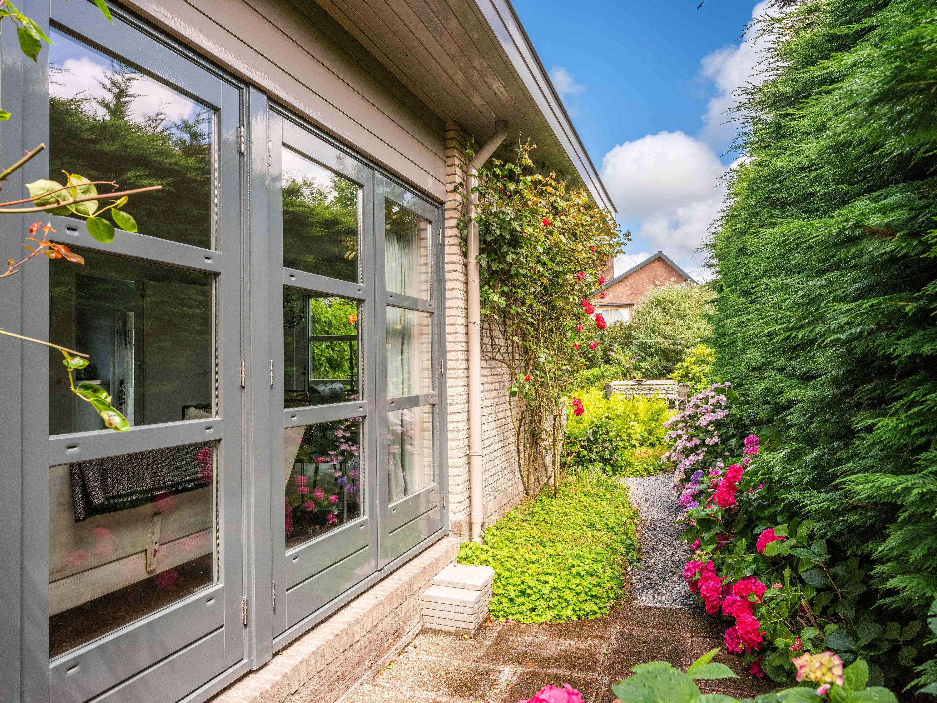 De grote zonovergoten tuin achter het huis, met diverse terrassen en veel privacy, maakt dit huis compleet.