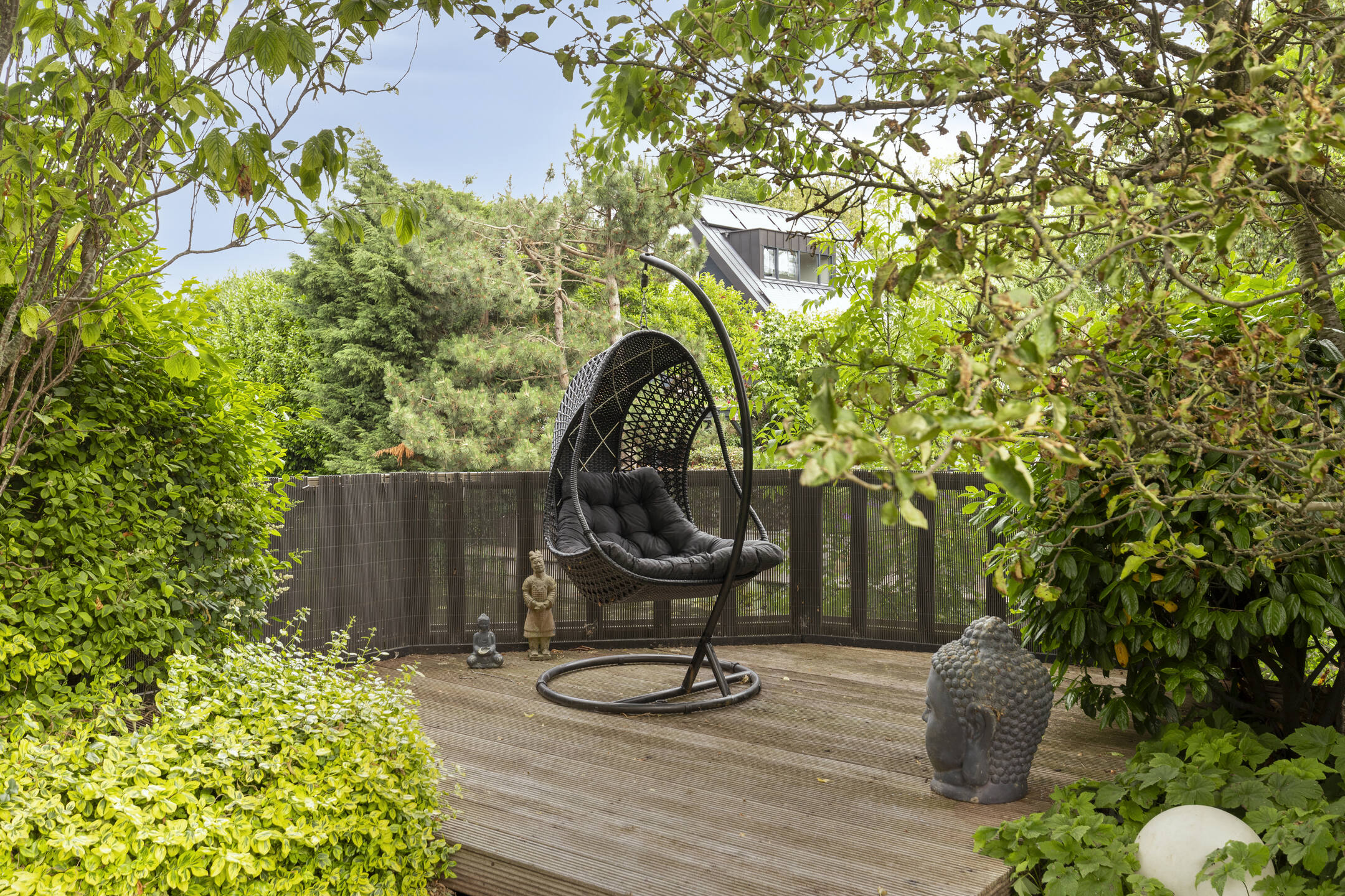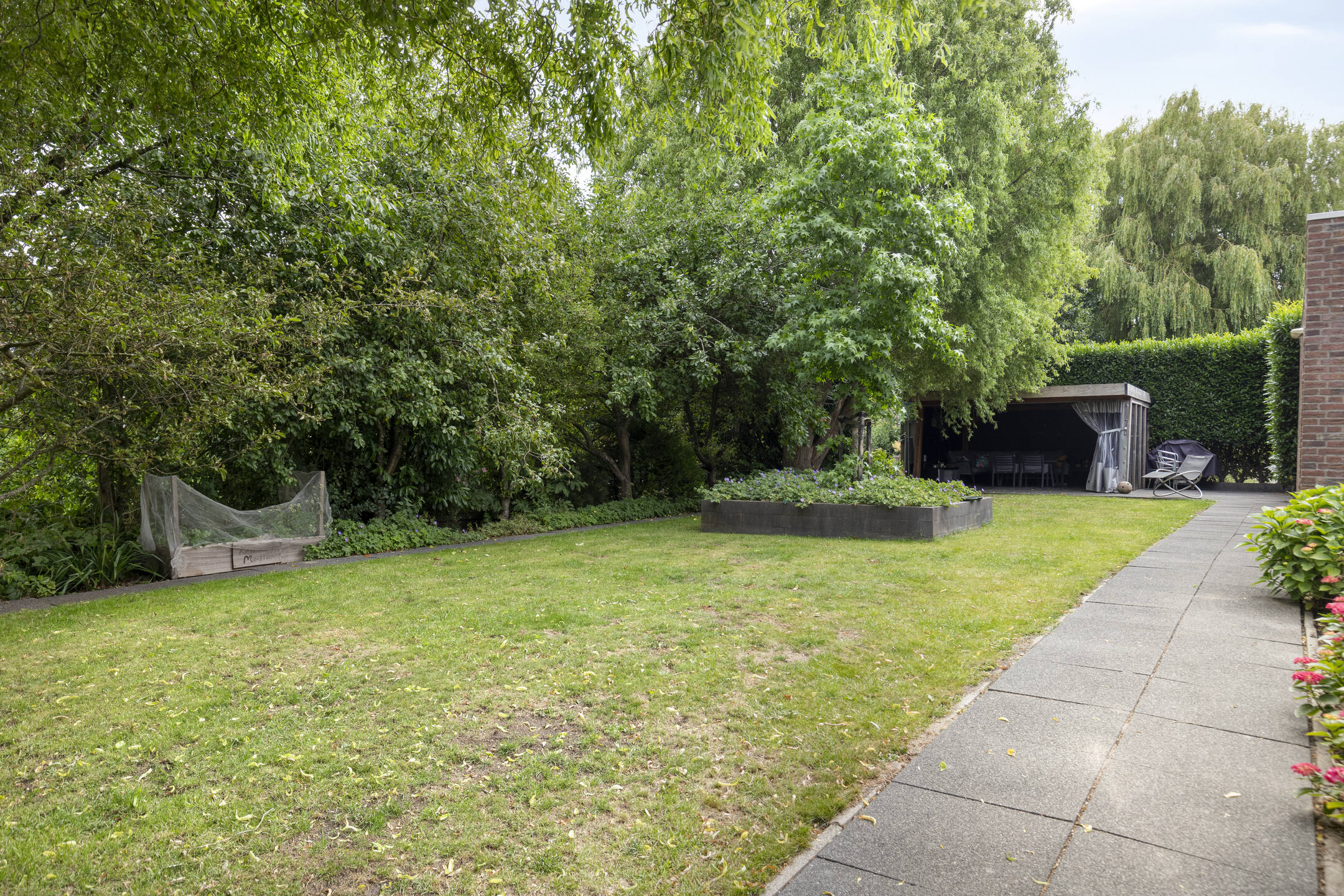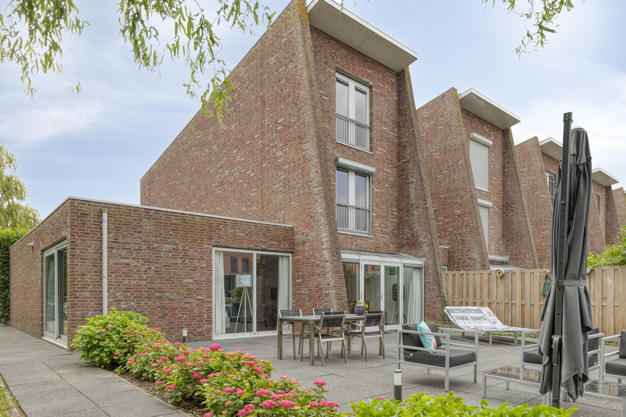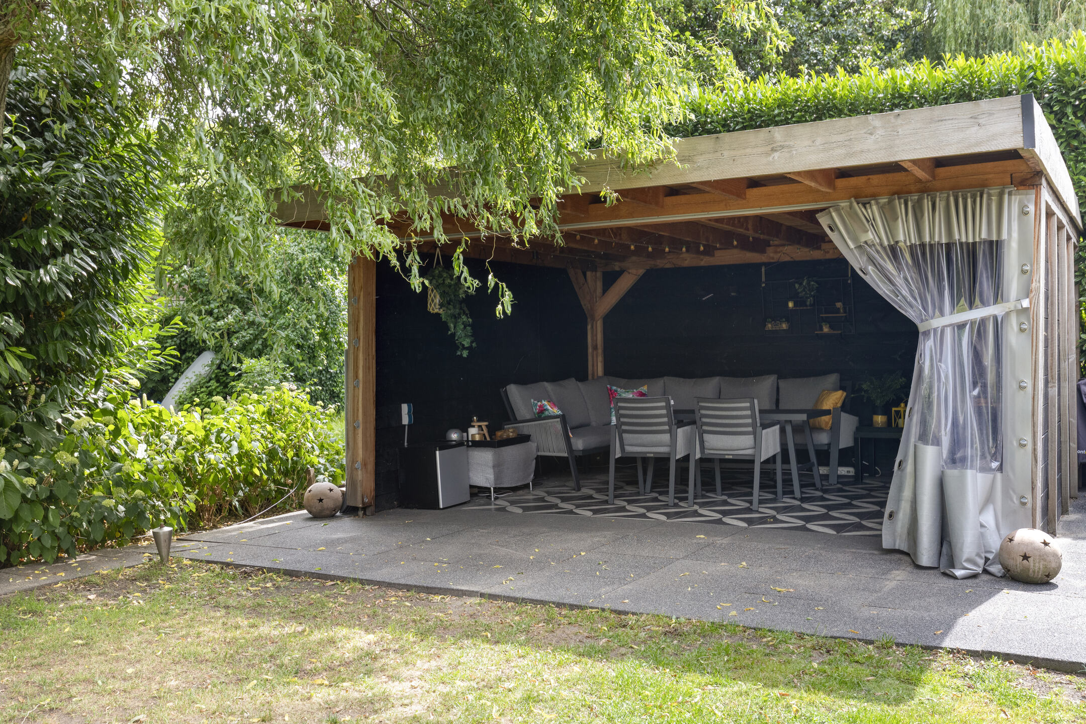 De verzorgde achtertuin is gelegen op het westen. De tuin beschikt over diverse terrassen met veel privacy, een sfeervolle overkapping en een vlonder met schitterend vrij uitzicht op de achtergelegen singel.