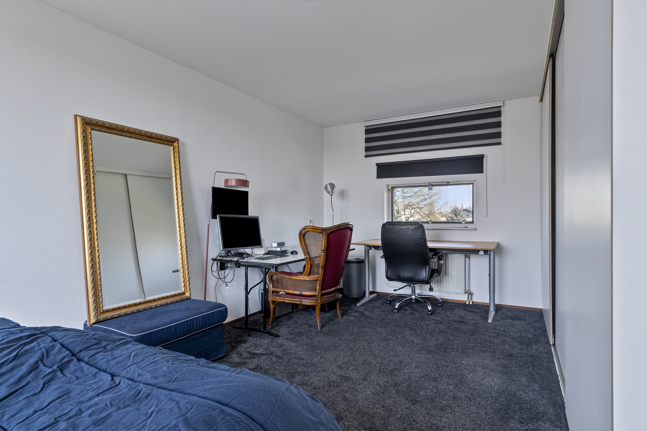 Slaapkamer 3 en 4 bevinden zich aan de achterzijde, waarbij slaapkamer 4 eveneens is voorzien van een kastenwand.