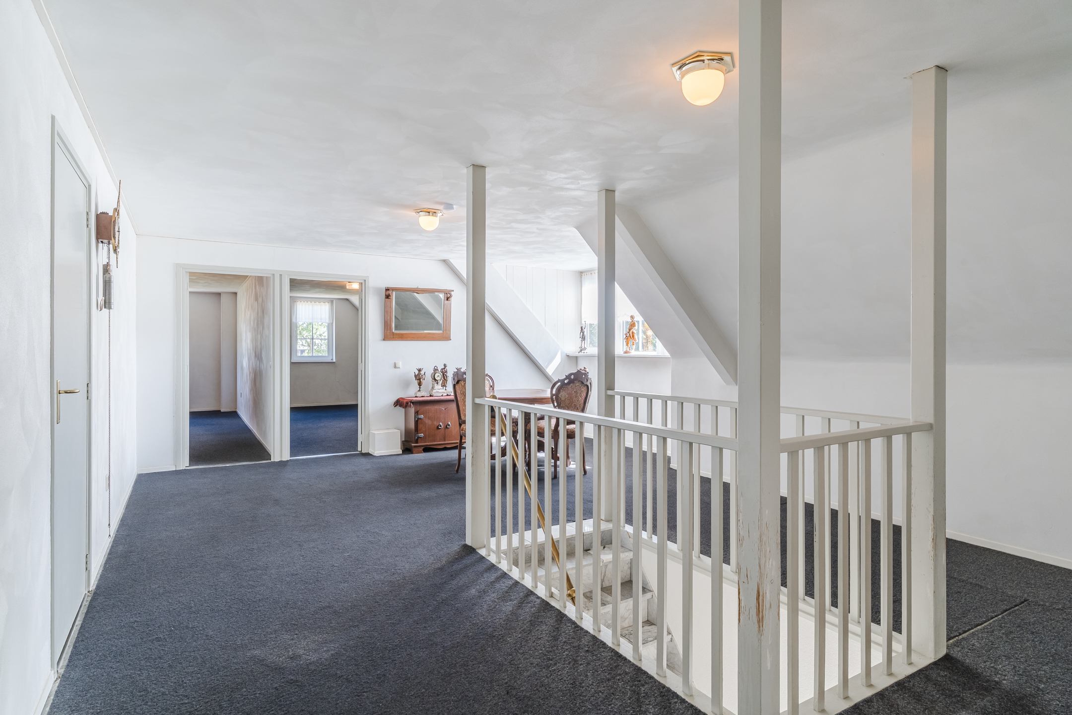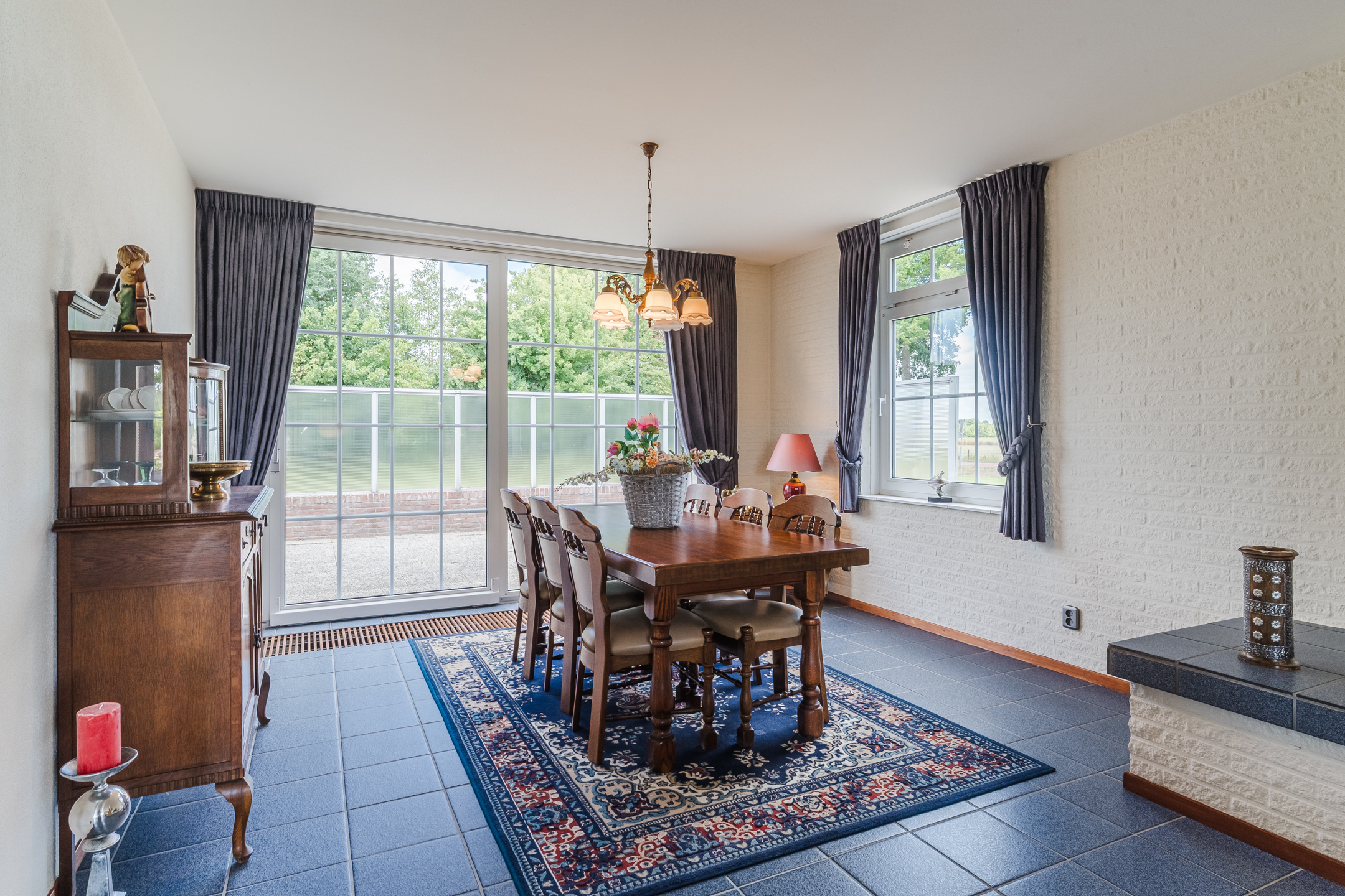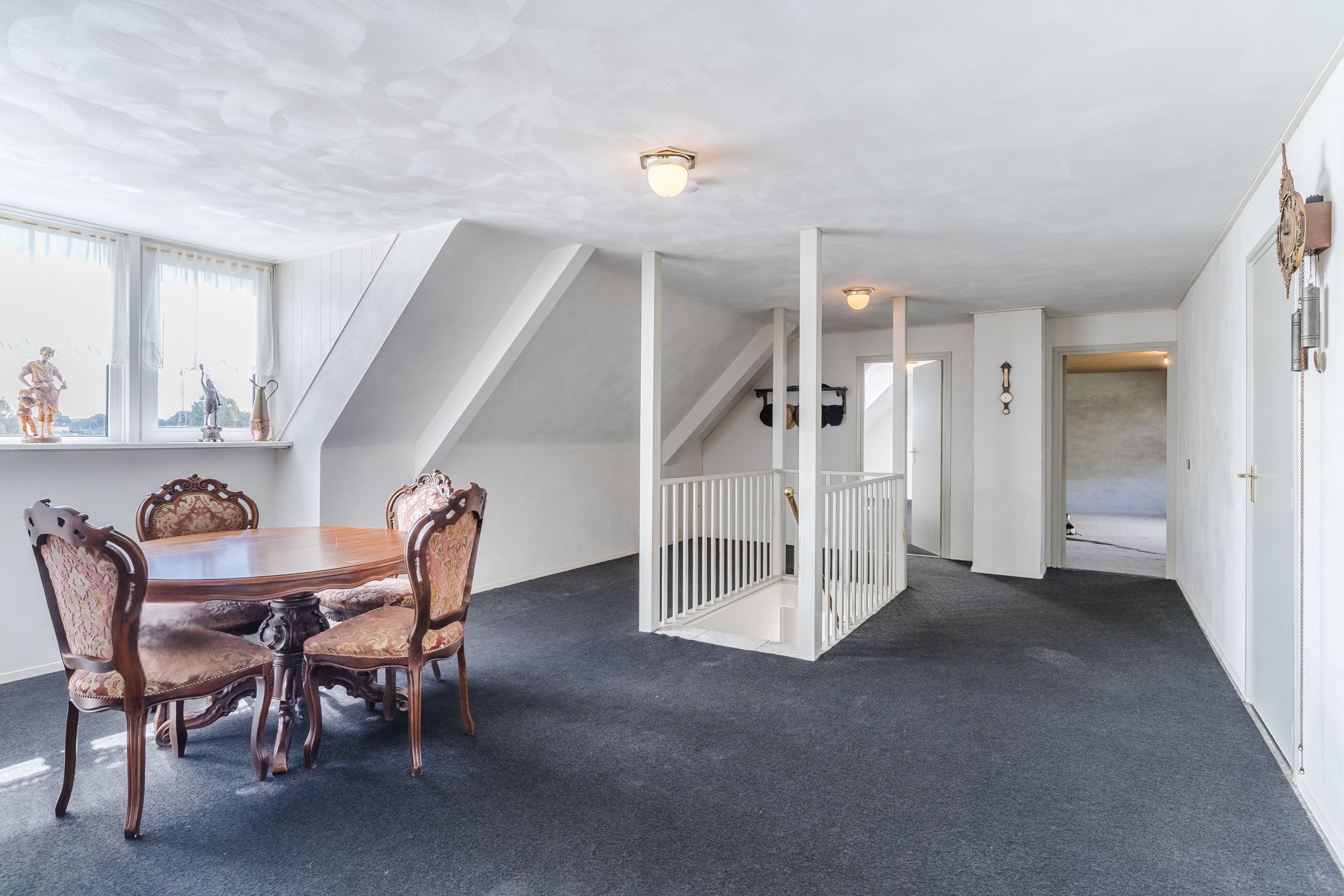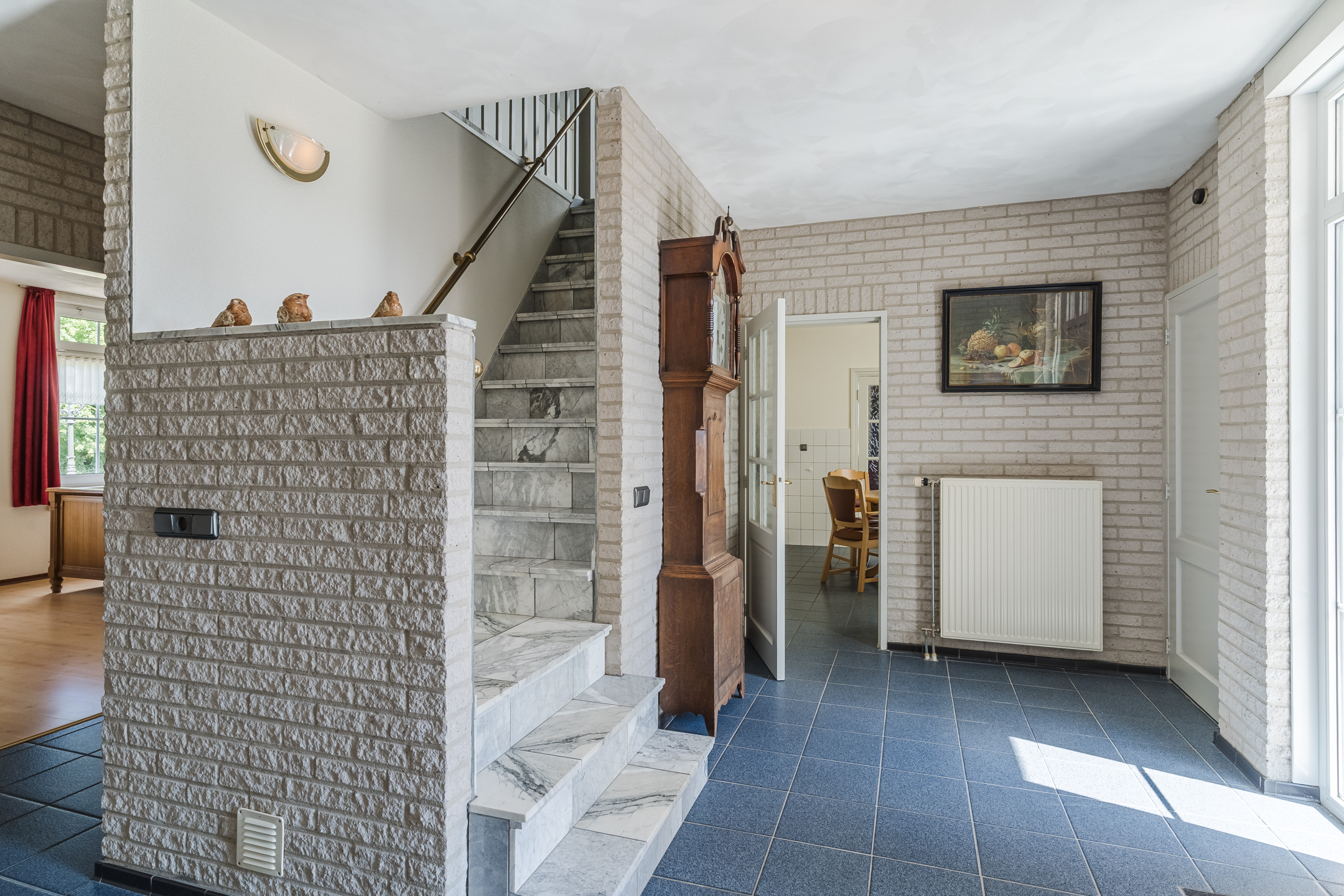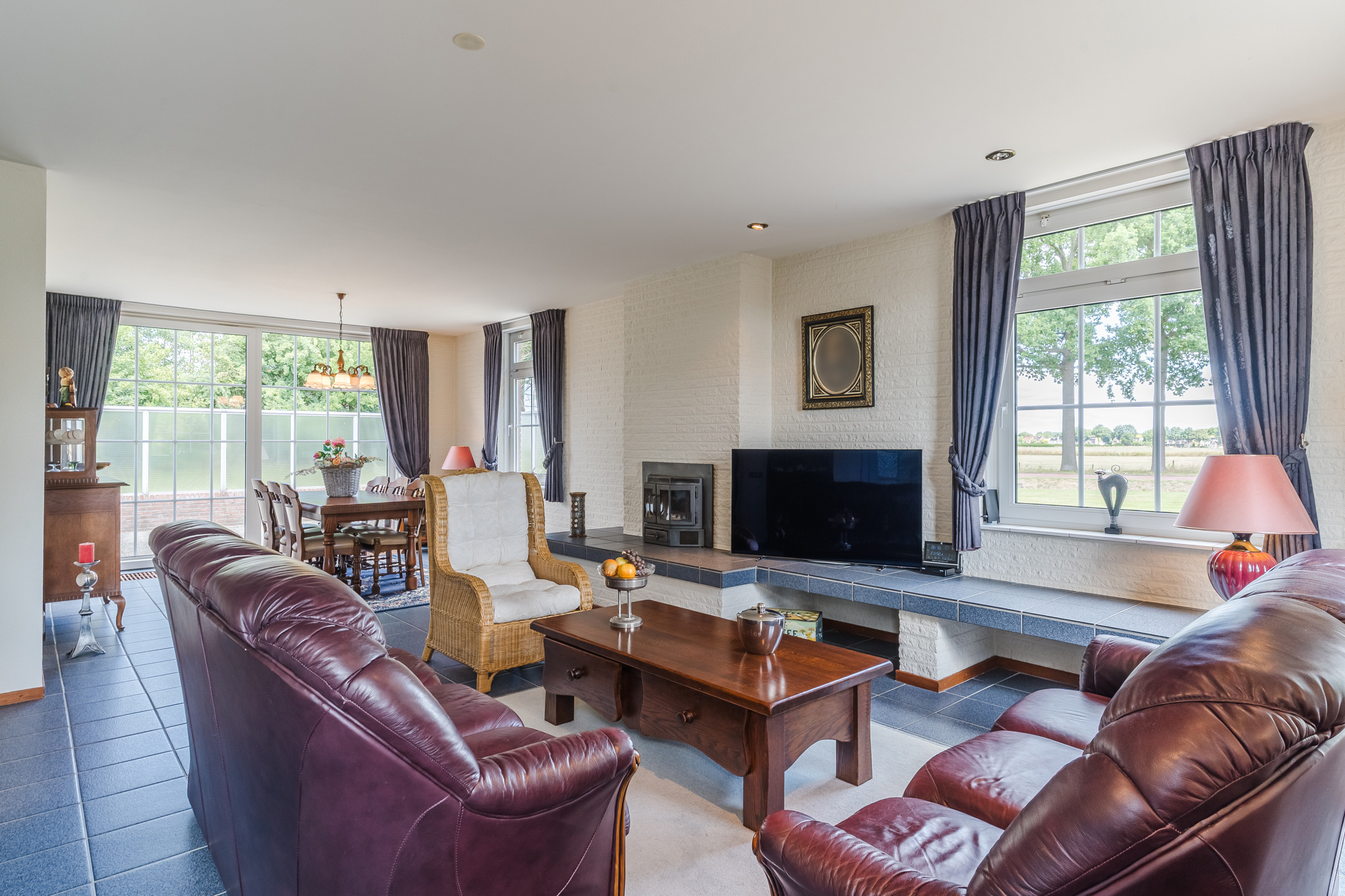 De indeling is royaal en praktisch opgezet, met onder andere zes volwaardige slaapkamers, meerdere badkamers, een inpandige garage, bijkeuken en een ruime bergzolder. De grote raampartijen laten veel daglicht binnen en bieden vanuit vrijwel iedere ruimte een prachtig uitzicht op de omliggende tuin en het groene landschap.