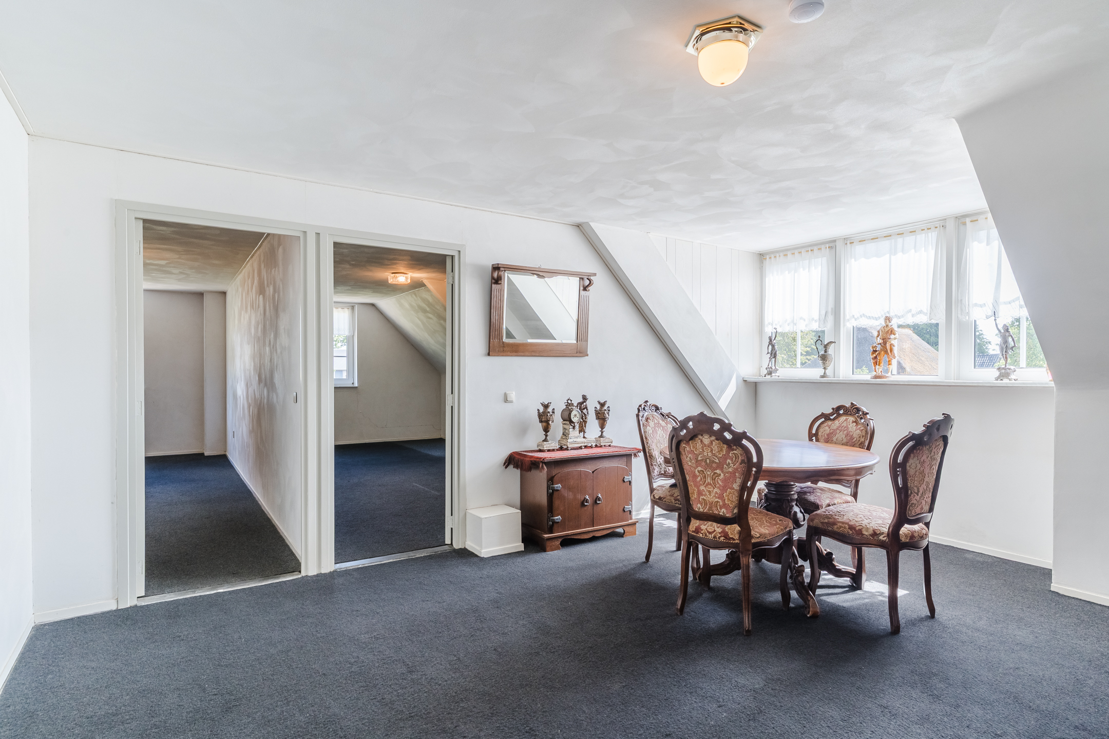 ca. 20 m² met vloerbedekking, spachelputz wanden, stucwerk plafond en voorzien van een extra deur naar de hal.