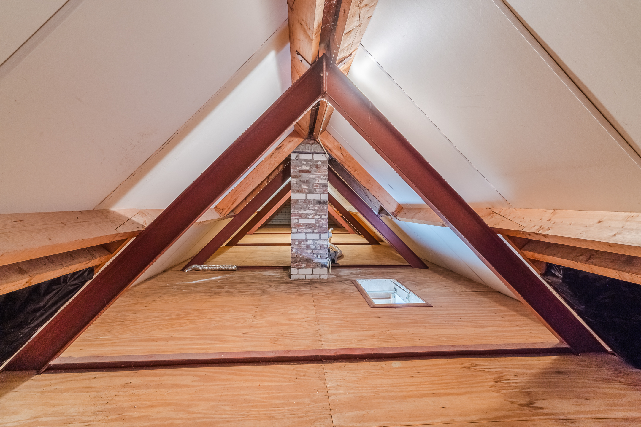 Bergzolder boven inpandige garage (bereikbaar via vaste trap en voorzien van een betonvloer)