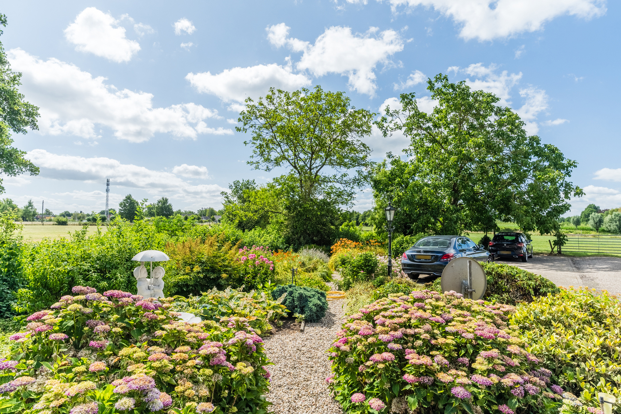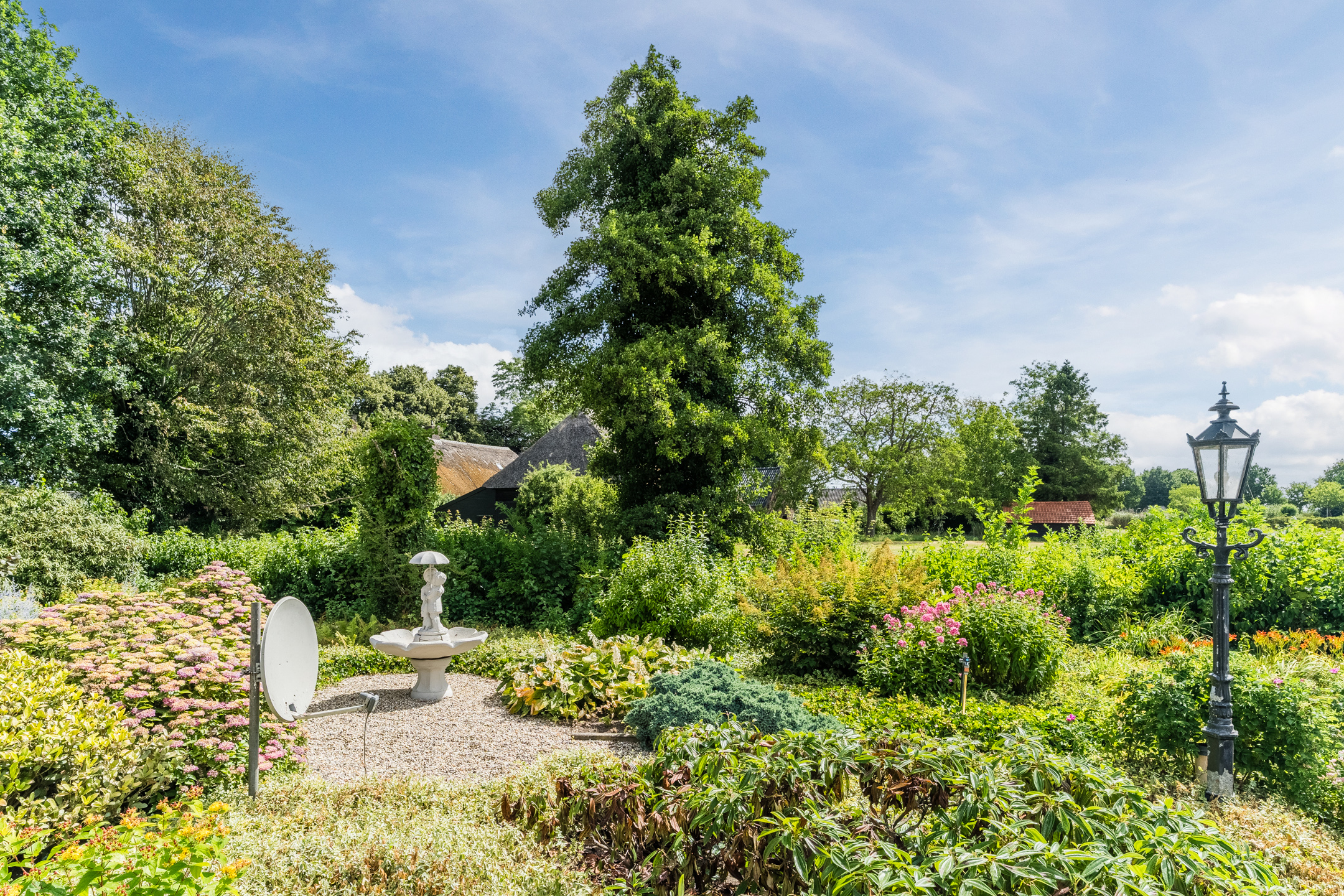 De tuin is volwassen aangelegd, uitstekend onderhouden en biedt veel privacy. Er is tuinverlichting aanwezig, een waterput en een ruime oprit met plaats voor meerdere auto’s.