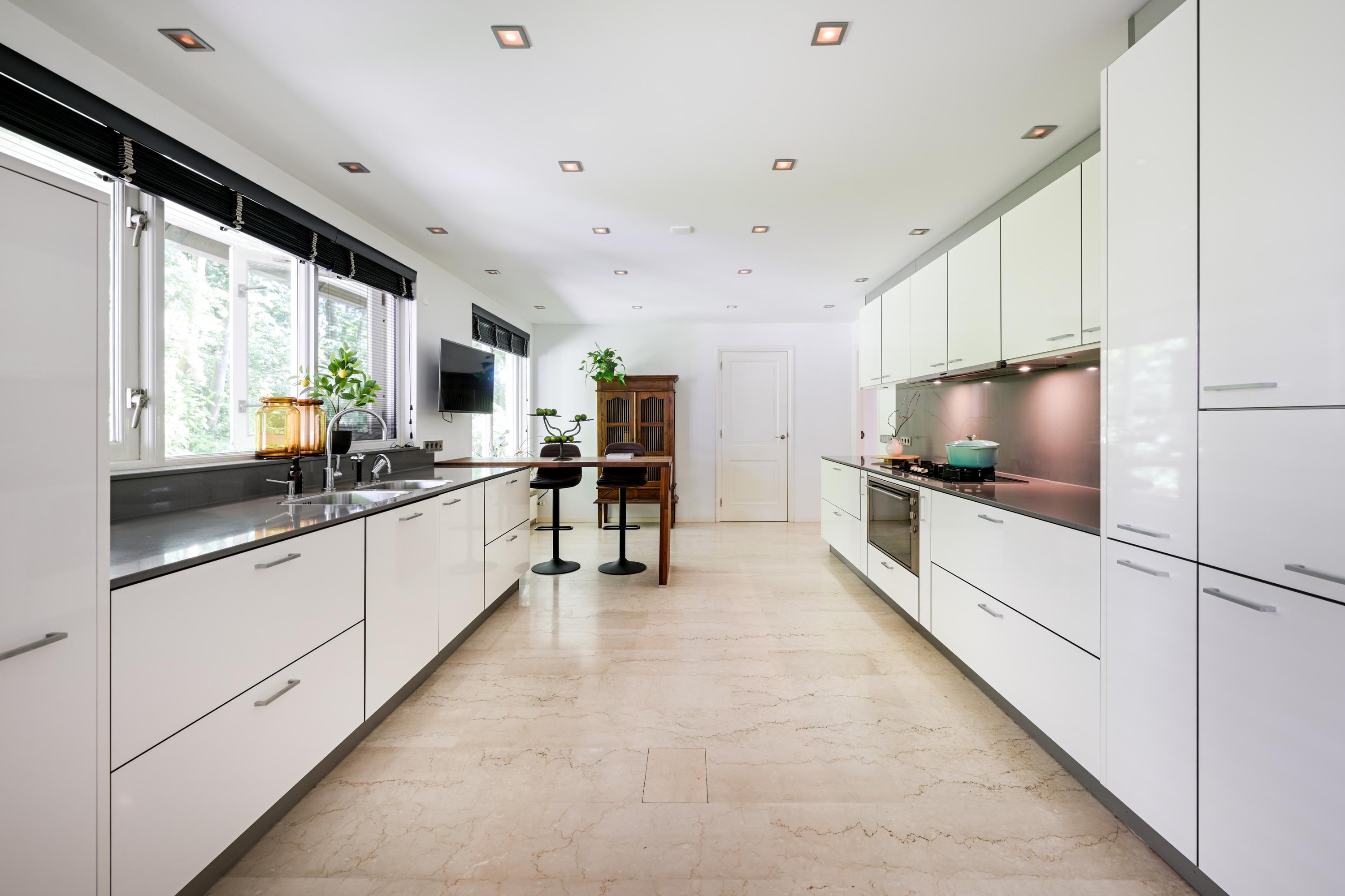 De villa, gebouwd door de architect Hans van Egmond, is gebouwd met hoogwaardige materialen en heeft een grote living en een riante woonkeuken, 4 slaapkamers, 2 badkamers, 2/3 werk /(slaap) kamers en een grote zolderverdieping. In het huis is een lift naar alle niveaus, wat het huis levensloopbestendig maakt.