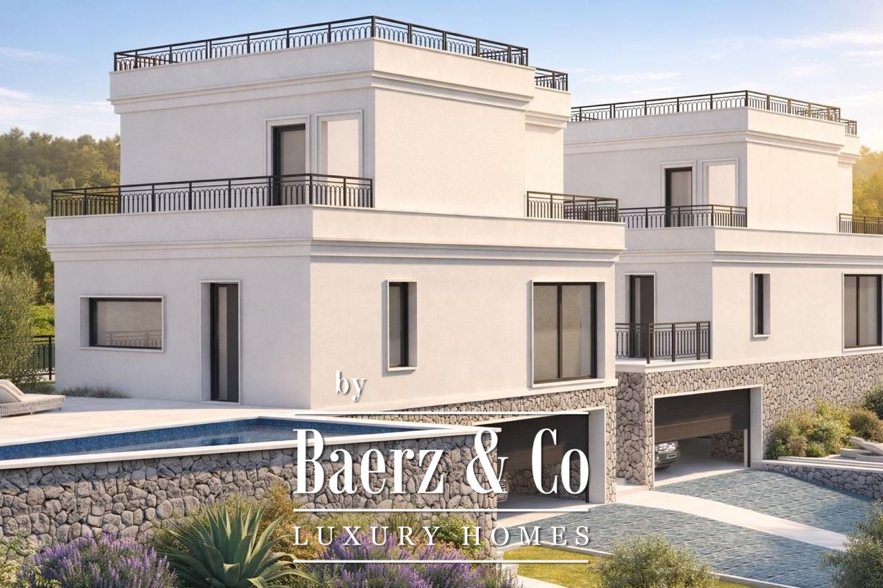 De villa beschikt over twee slaapkamers en drie badkamers, met architectonische helderheid en hoogwaardige materialen gerealiseerd. Het dagelijkse leven speelt zich af in een open indeling met keuken, eetgedeelte en een royale woonkamer die naadloos overgaan naar buiten, waar drie terrassen en een privézwembad op u wachten. Wellnessvoorzieningen omvatten een volledig uitgeruste fitnessruimte en een sauna voor een totaal gevoel van ontspanning.