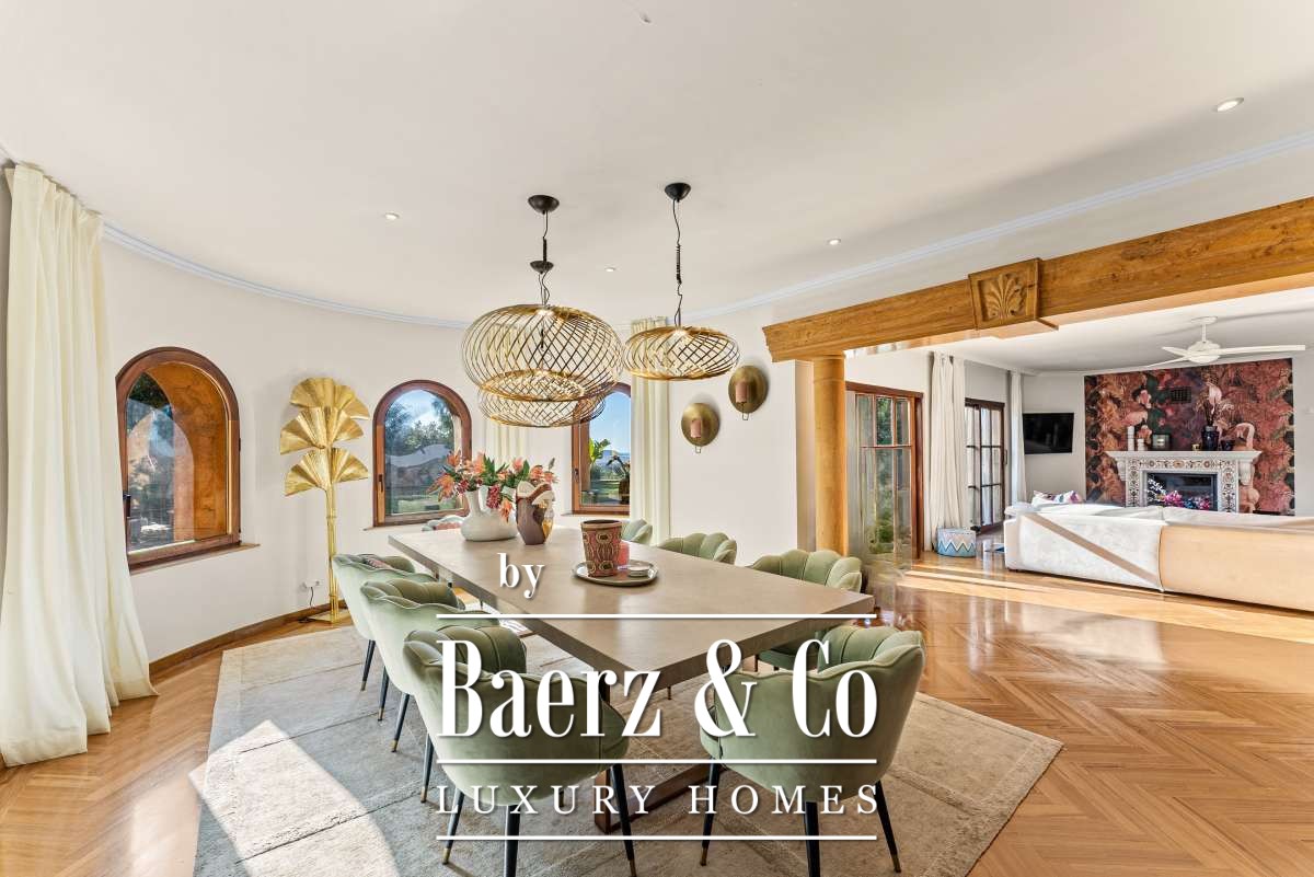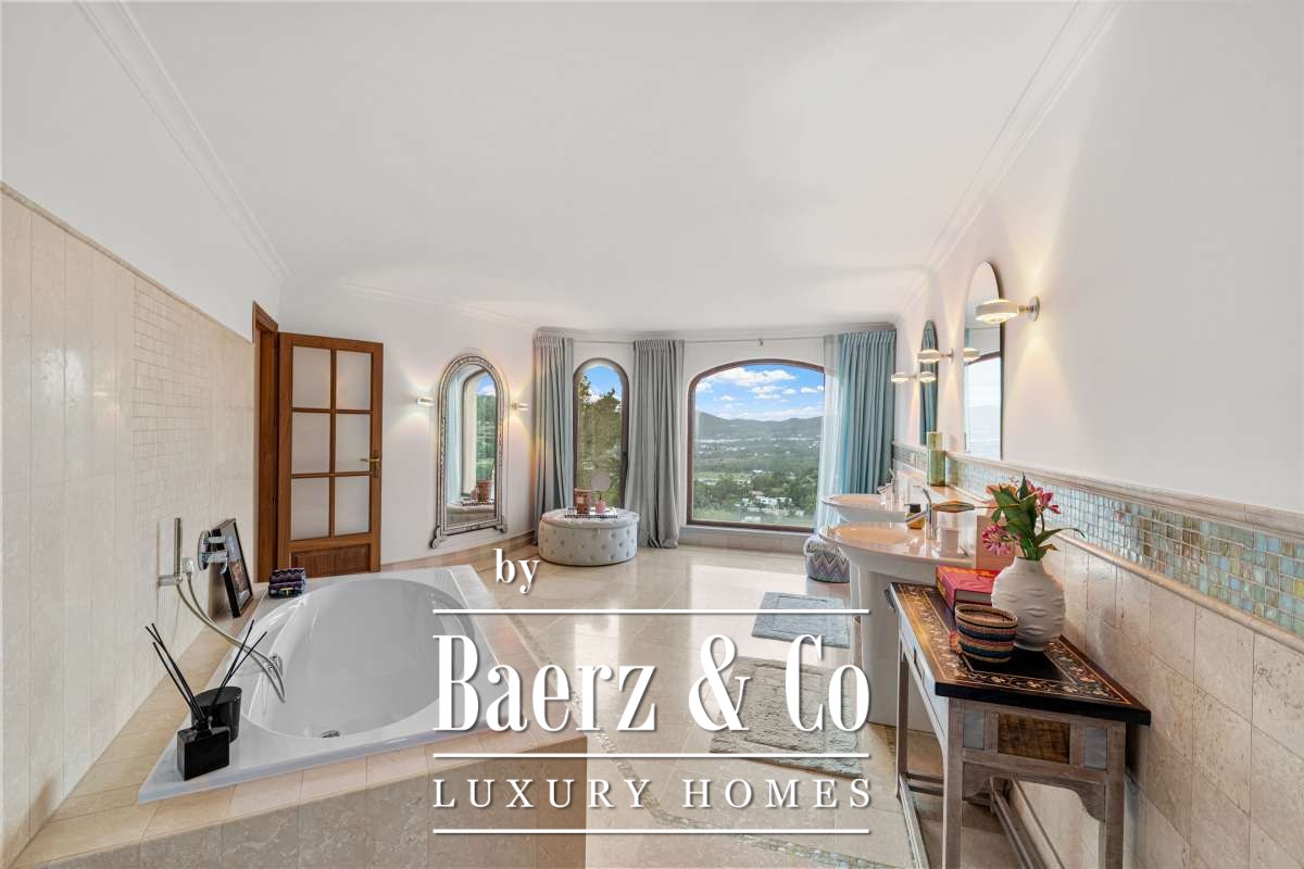 Wonen in Can Furnet: Exclusiviteit en rust, dichtbij Ibiza-StadStap binnen in deze indrukwekkende villa in Can Furnet, een van de meest exclusieve en beveiligde woonwijken van Ibiza. Dit is dé plek waar luxe en comfort samenkomen, met als kers op de taart een spectaculair panoramisch uitzicht over de zee, de heuvels en de iconische skyline van Ibiza-Stad. Can Furnet biedt u volledige rust en privacy, terwijl u zich toch op slechts 10 minuten van het bruisende Ibiza-Stad en de levendige Marina Botafoch bevindt.Een villa die stijl, ruimte en comfort uitstraaltDeze indrukwekkende woning biedt maar liefst 6 slaapkamers en 6 badkamers, allemaal met ensuite voorzieningen, wat betekent dat iedereen in het huis kan genieten van optimale privacy en comfort. De lichte en open woonruimte is ontworpen voor ultiem woonplezier, met hoge plafonds, grote ramen en een prachtig uitzicht op de omliggende natuur. De luxe open keuken is volledig uitgerust met hoogwaardige apparatuur en biedt voldoende ruimte voor gezellige diners en grote bijeenkomsten.De master bedroom is een echte eyecatcher, met een privéterras, een ruime walk-in closet en een prachtige badkamer met inloopdouche en vrijstaand bad. Verder beschikt de villa over een eigen gym, een speelruimte en een aparte wasruimte. Of u hier nu permanent wilt wonen of zoekt naar een droomhuis voor vakanties op Ibiza, deze villa biedt alles wat u zich kunt wensen.Naast de prachtige hoofdvilla, met een royale woonoppervlakte van ruim 600 m², behoren ook twee aparte appartementen tot het geheel. Deze beschikken over een eigen, separate ingang en zijn uitermate geschikt voor personeel, nanny of gasten die zelfstandig willen verblijven, met volledige privacy en toch toegang tot de buitenruimtes en het uitzicht.Genieten van het buitenlevenDe buitenkant van deze villa is minstens nét zo spectaculair als de binnenkant. De grote infinity pool biedt een adembenemend uitzicht over de heuvels en de zee, terwijl de ruime lounge gedeeltes en zonnige terrassen u uitnodigen om te ontspannen en te genieten van het Ibiza-gevoel. Hier kunt u de ochtend beginnen met een kop koffie op uw terras, een middag doorbrengen bij het zwembad en de avond afsluiten met een goed glas wijn onder de sterrenhemel.De villa wordt omringd door prachtige palmbomen en wilde tuinen, waardoor u zich in een privé-oase waant. Dankzij de ruime parkeerplaats en beveiligde toegang is deze villa zowel praktisch als exclusief.Uw droomhuis op IbizaZoekt u een villa die luxe, comfort en een toplocatie combineert? Dan is dit uw kans. Deze exclusieve woning in Can Furnet biedt alles wat u nodig heeft voor een droomleven op Ibiza. Neem vandaag nog contact met ons op voor een bezichtiging en ervaar zelf deze unieke kans!