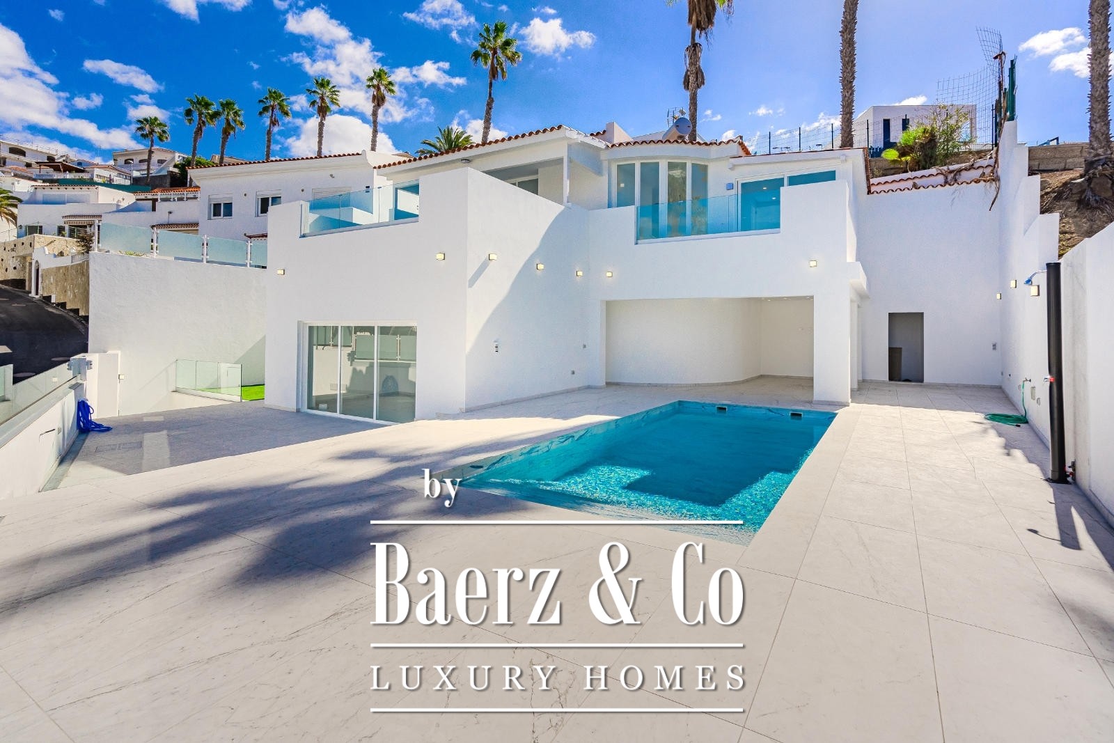 Op een ideale locatie in het zuiden van Tenerife bieden wij u deze prachtige gloednieuwe villa aan, op minder dan 1 km van de zee, de boulevard, stranden en restaurants.