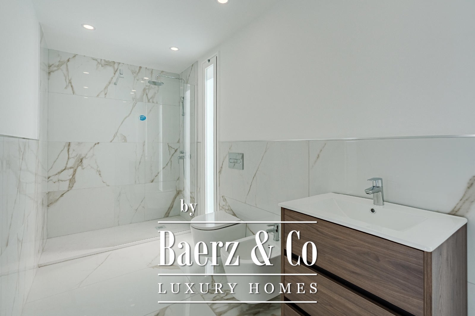 Er is een groot overdekt terras, ontworpen als buitenlounge, maar het kan gemakkelijk worden afgesloten met ramen om een extra woonkamer te creëren, waardoor de huidige woonkamer kan worden omgebouwd tot een eetkamer of een extra slaapkamer. Er blijft nog voldoende ruimte over op het terras voor een buitenlounge en eethoek.