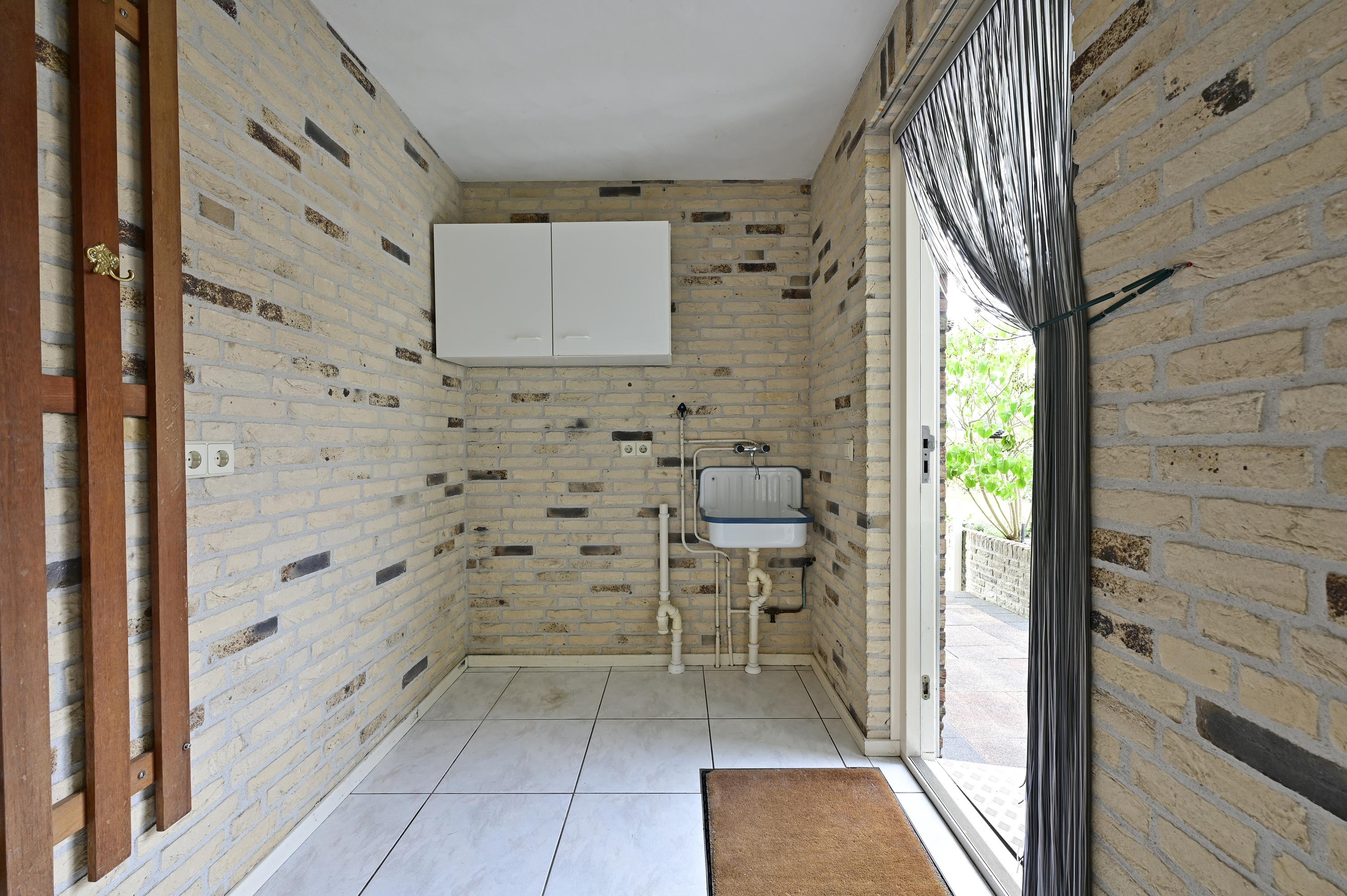 Via de solide hardhouten trap in de centrale hal op de begane grond daalt u af naar het verrassend ruime souterrain. Wat direct opvalt, is de praktische indeling en het comfort: alle ruimtes zijn voorzien van een tegelvloer en bieden volop mogelijkheden voor diverse woon- of werkdoeleinden. Bij binnenkomst in de hal treft u direct twee deuren. Achter de eerste bevindt zich een ruimte die oorspronkelijk bedoeld was als extra toilet, maar ook uitstekend kan worden ingericht als berging, pantry of andere functionele ruimte. Achter de tweede deur ligt een ruime opslagruimte – ideaal voor voorraad, gereedschap of seizoensgebonden spullen. Verderop in het souterrain vindt u een zeer royale kamer die momenteel dienstdoet als kantoorruimte. Deze lichte en rustige werkplek is voorzien van een vaste kast, die ooit als wijnkast is gebruikt – een charmant detail met historie. De ruimte is multifunctioneel inzetbaar, bijvoorbeeld als atelier, speelruimte of extra slaapkamer. Hier is daglicht met natuurlijk ventilatie aanwezig.