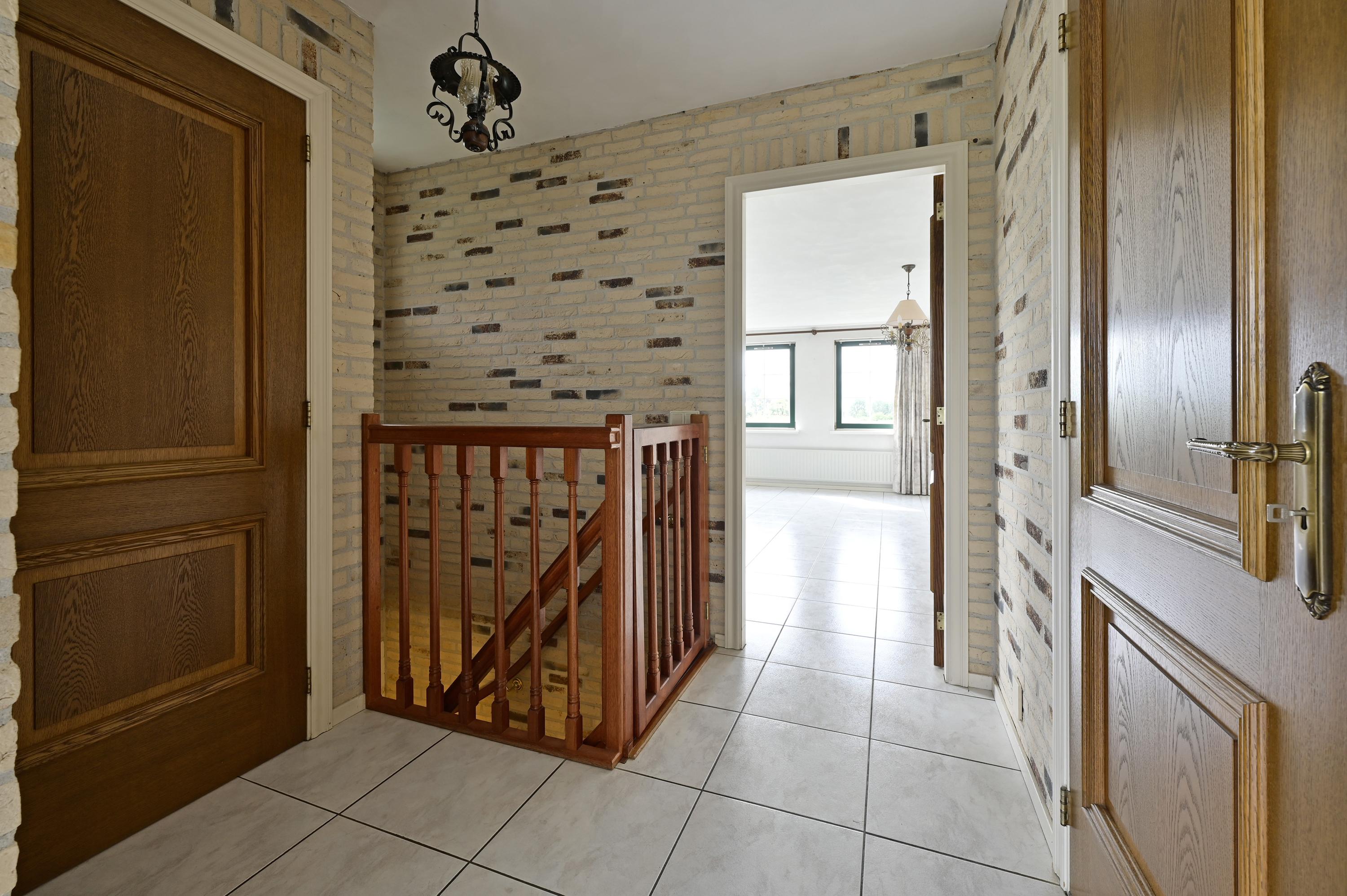 Via de robuuste, open hardhouten trap in de centrale hal bereikt u de eerste verdieping van deze royale woning. Bovenaan de trap ontvouwt zich een ruime, lichte overloop die toegang biedt tot de verschillende vertrekken – elk met hun eigen charme en functionaliteit. Aan de zijkant van de woning bevinden zich twee gespiegelde slaapkamers, beide voorzien van een dakkapel en grote ramen met zicht op de oprit. Deze kamers zijn praktisch ingedeeld met een vaste kast en knieschotten voor extra opbergruimte. Eén van deze slaapkamers biedt bovendien toegang tot een fijn balkon aan de zijkant van het huis – een heerlijke plek om ’s ochtends in alle rust van de buitenlucht te genieten. Dit balkon is ook bereikbaar via een tweede deur op de overloop. Aan de achterzijde van de woning, bereikbaar via een klein afstapje vanaf de overloop, bevindt zich een royale kamer met een charmant puntdak en een raam met uitzicht over de achtertuin. Hier is de cv-installatie geplaatst, maar de ruimte leent zich uitstekend als hobbykamer, extra werkplek of speelruimte – multifunctioneel en sfeervol.