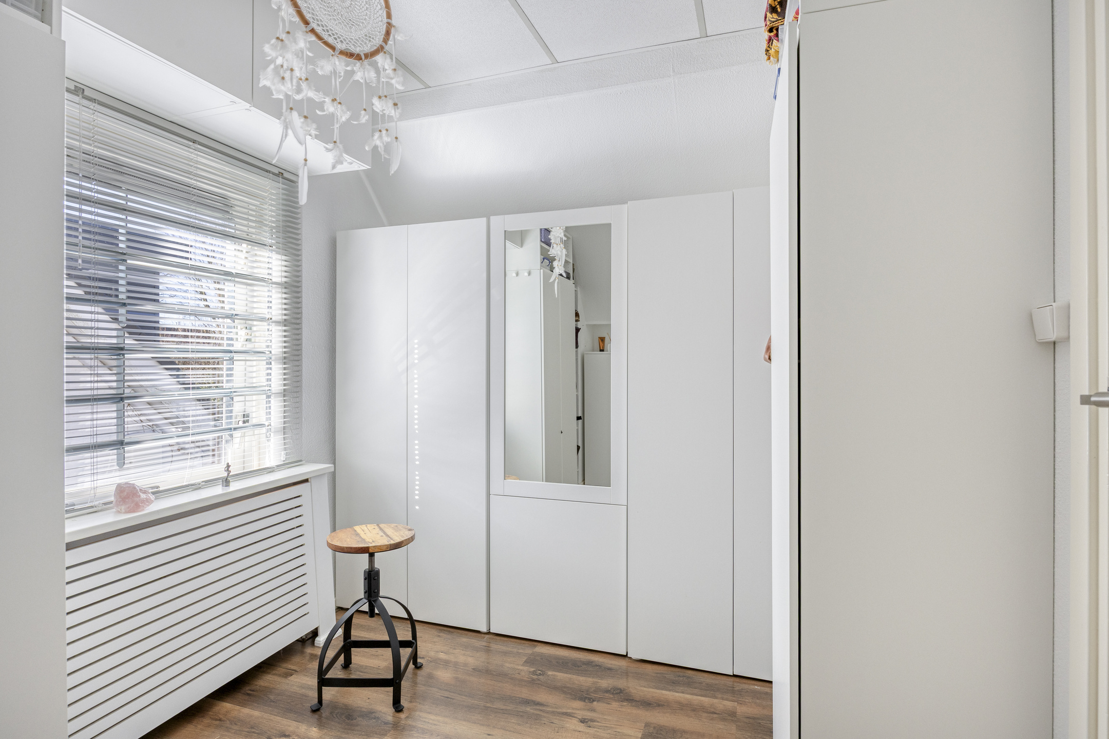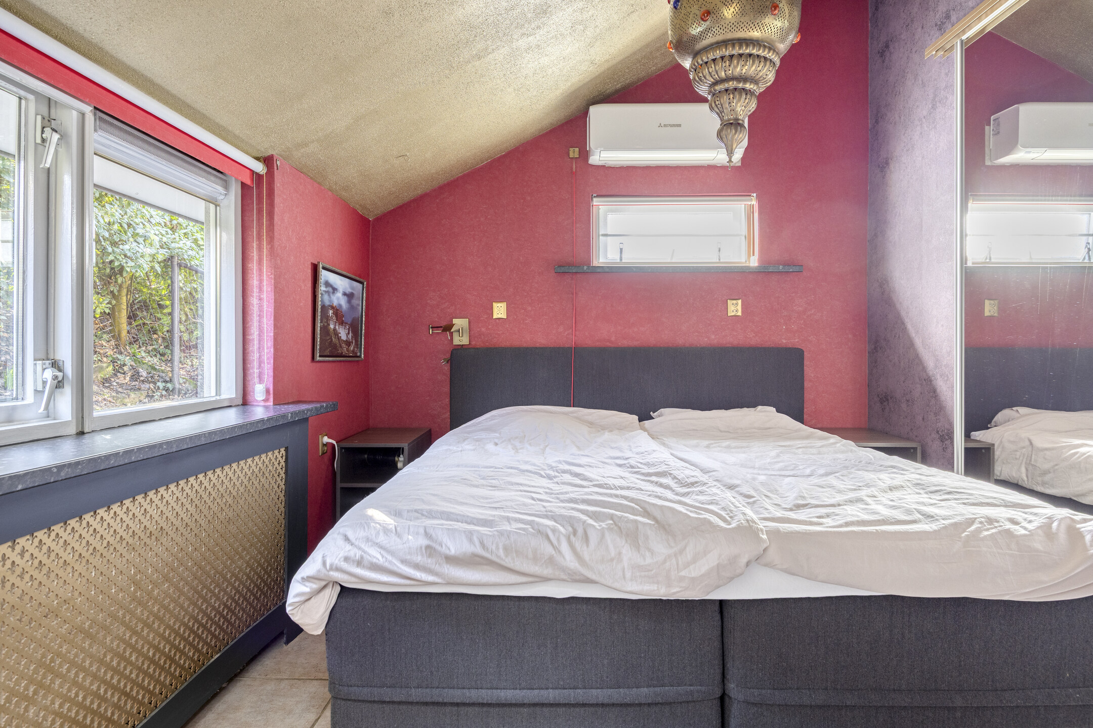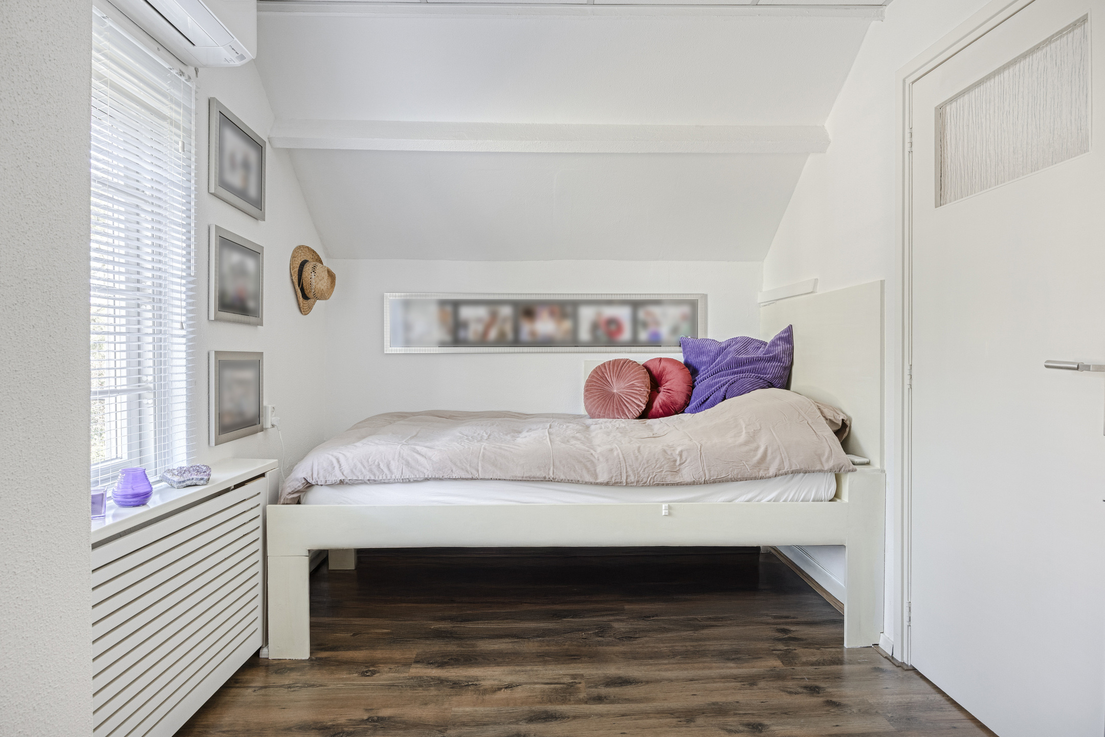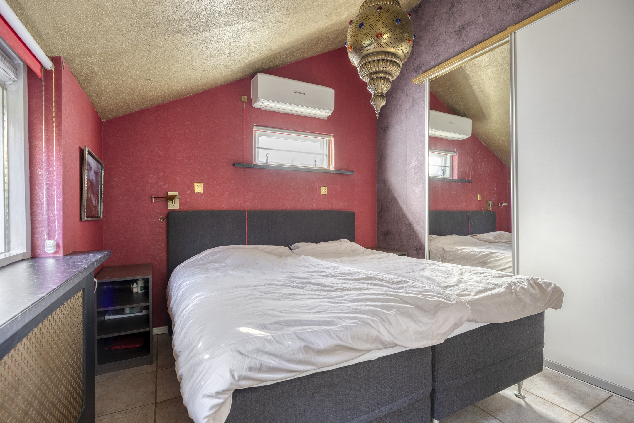 hoofdslaapkamer voorzien van een airconditioning en kastenwand, tegelvloer, voorzetwanden met isolatie t.b.v. extra comfort, spuitwerk plafond.