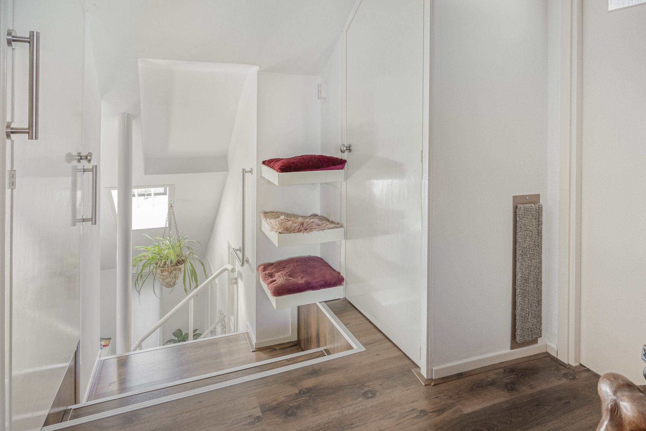 overloop met 2 bergkasten vv. opstelplaats HR-combiketel, tussengroepenkast en wasmachine-/drogeraansluiting;