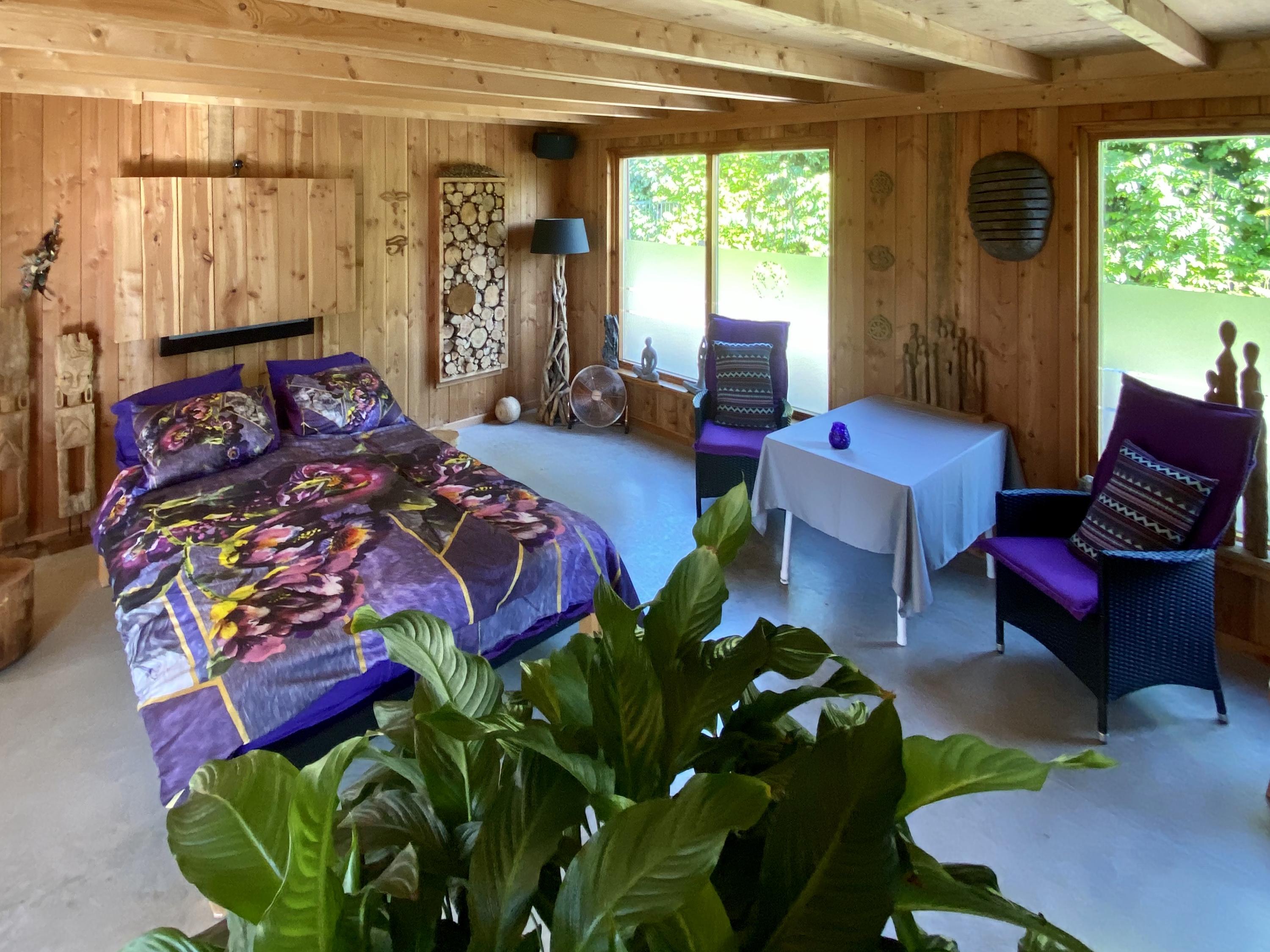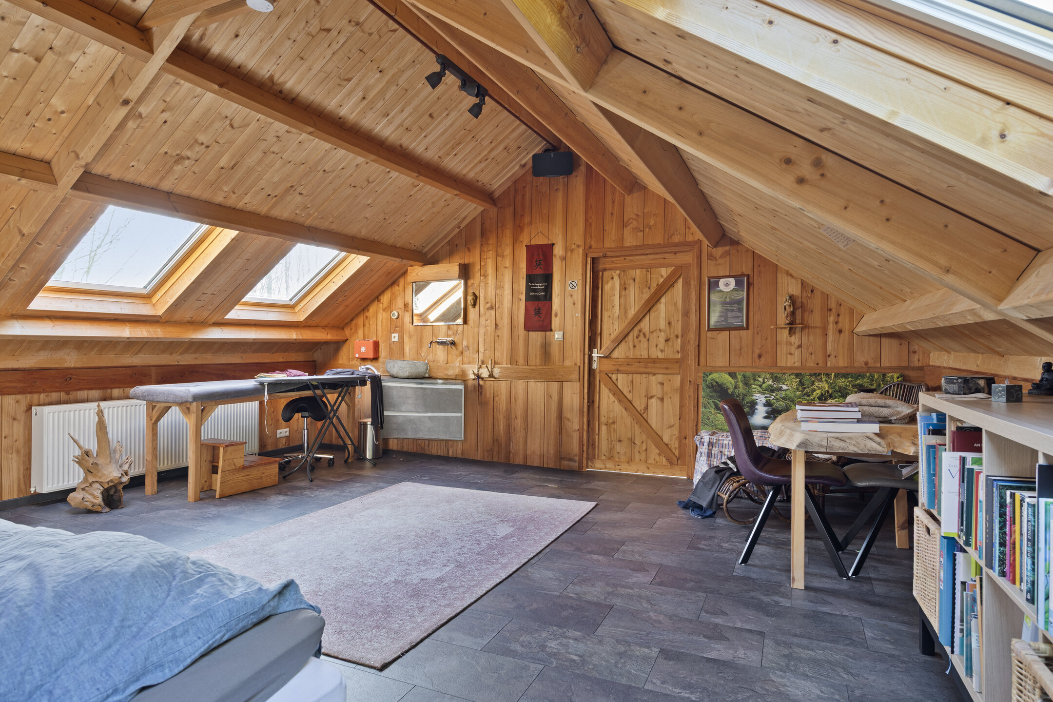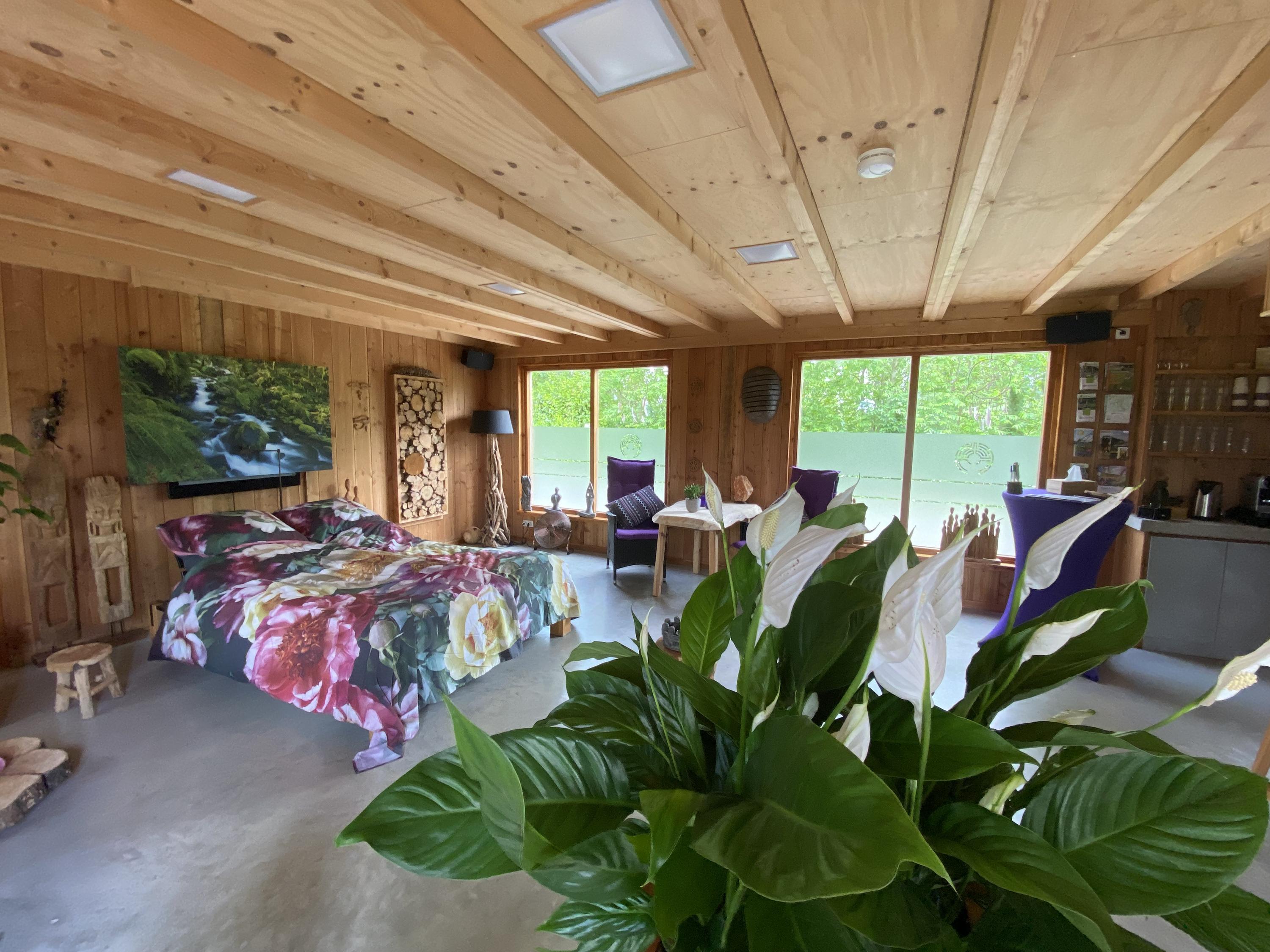 Het bijgebouw is recent nog gebruikt voor groepssessies en is ook verhuurd via natuurhuisje.nl. De indeling is praktisch en compleet met op de begane grond een ruime woonkamer/groepsruimte, een volledige keuken en badkamer. Op de verdieping bevinden zich een overloop met wasmachine- en drogeraansluiting, een eigen cv-installatie en een tweede (slaap)ruimte voorzien van airconditioning.