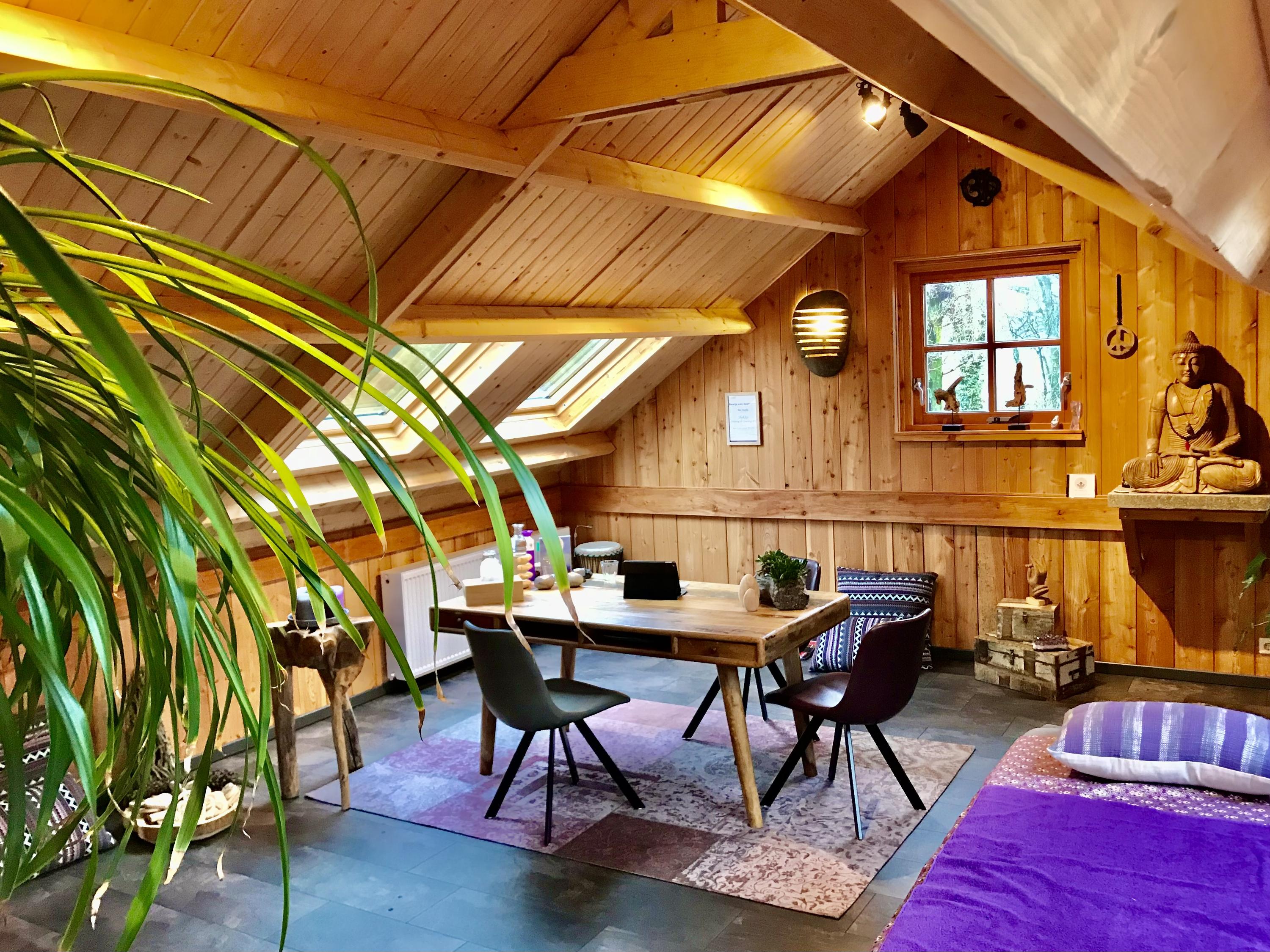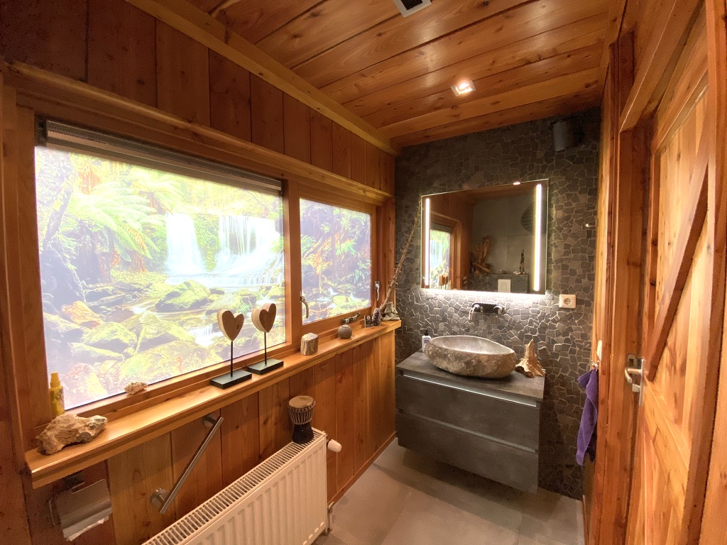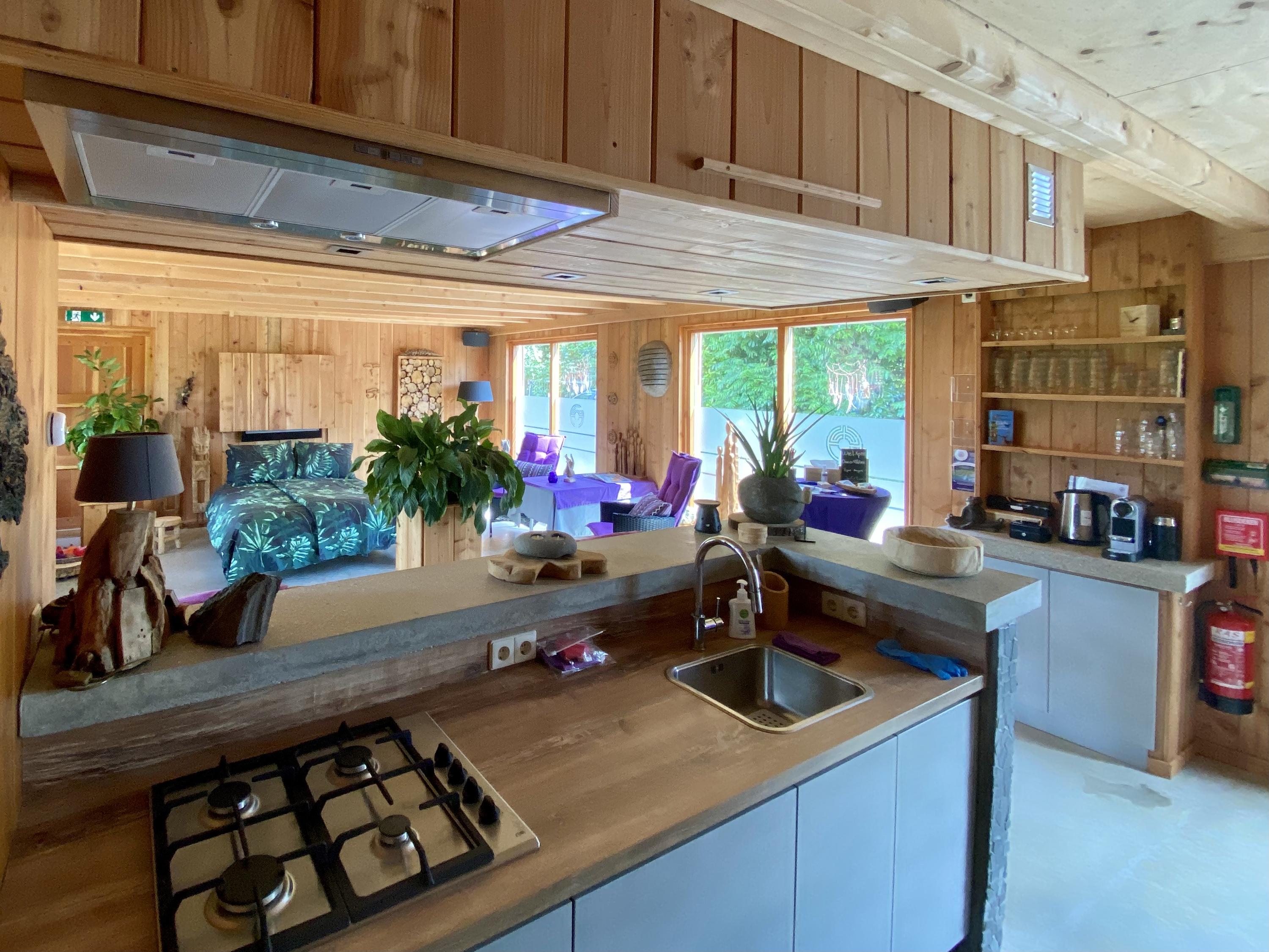Het bijgebouw is recent nog gebruikt voor groepssessies en is ook verhuurd via natuurhuisje.nl. De indeling is praktisch en compleet met op de begane grond een ruime woonkamer/groepsruimte, een volledige keuken en badkamer. Op de verdieping bevinden zich een overloop met wasmachine- en drogeraansluiting, een eigen cv-installatie en een tweede (slaap)ruimte voorzien van airconditioning.