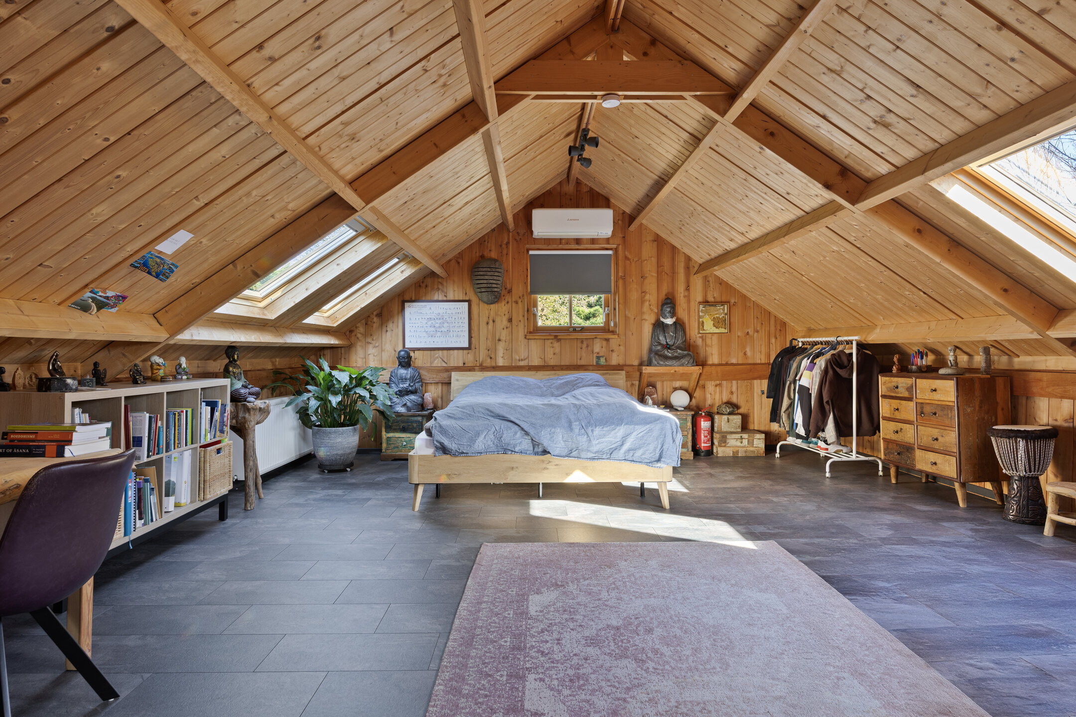 Multifunctionele open ruimte vv. geluidsdempende ondervloer, 4 dakramen, airco, wastafelmeubel, zelfstandige thermosstaat en mogelijkheden voor een of meerdere (slaap)kamers.