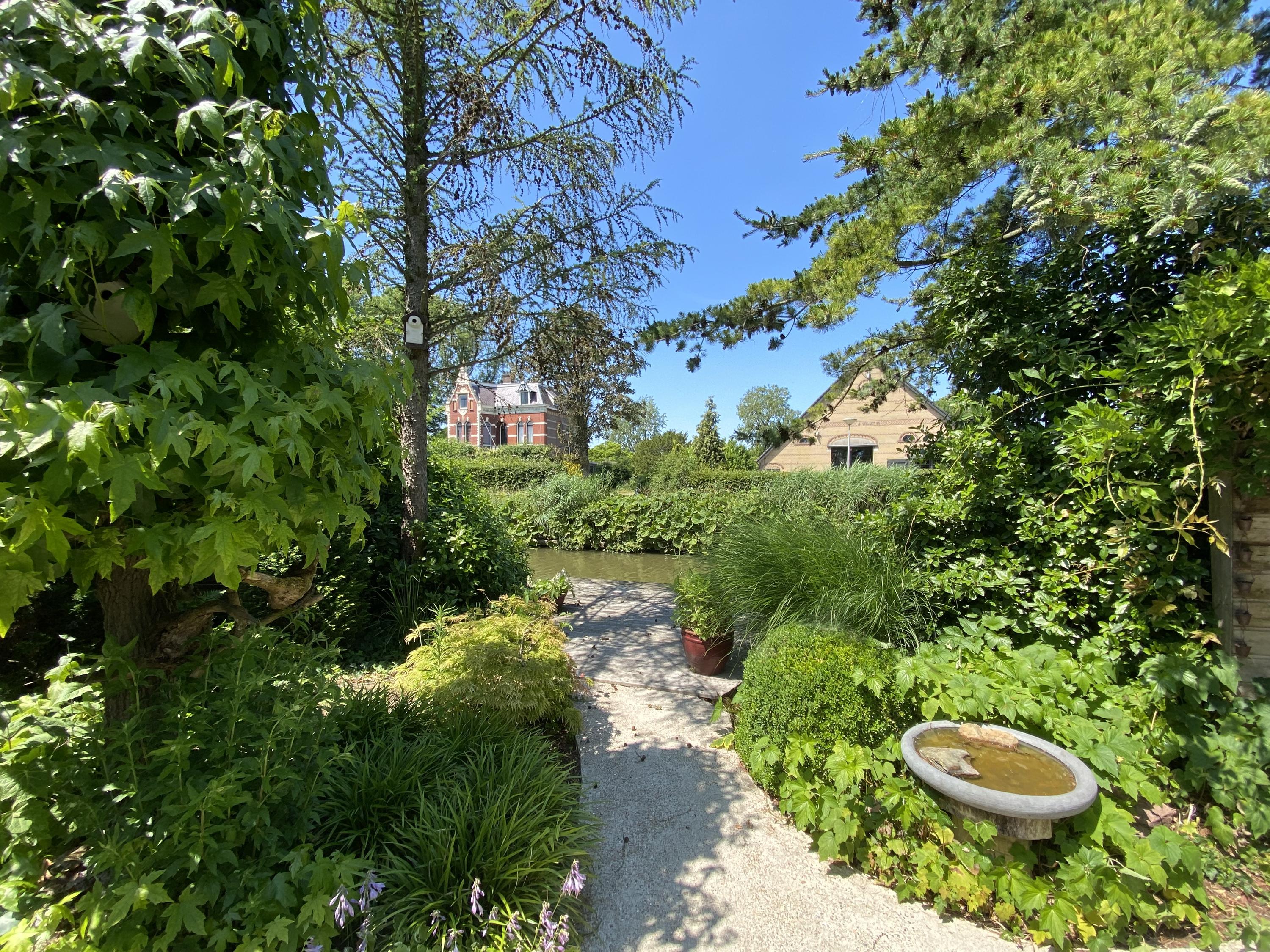 De tuin vormt een ware oase van rust en is met zorg ingericht in Japanse sferen. Sfeervolle zithoekjes, groene doorkijkjes en een harmonieuze indeling zorgen voor een bijzondere beleving van buitenruimte. Hier geniet u in alle rust van het uitzicht over het water en de natuur.