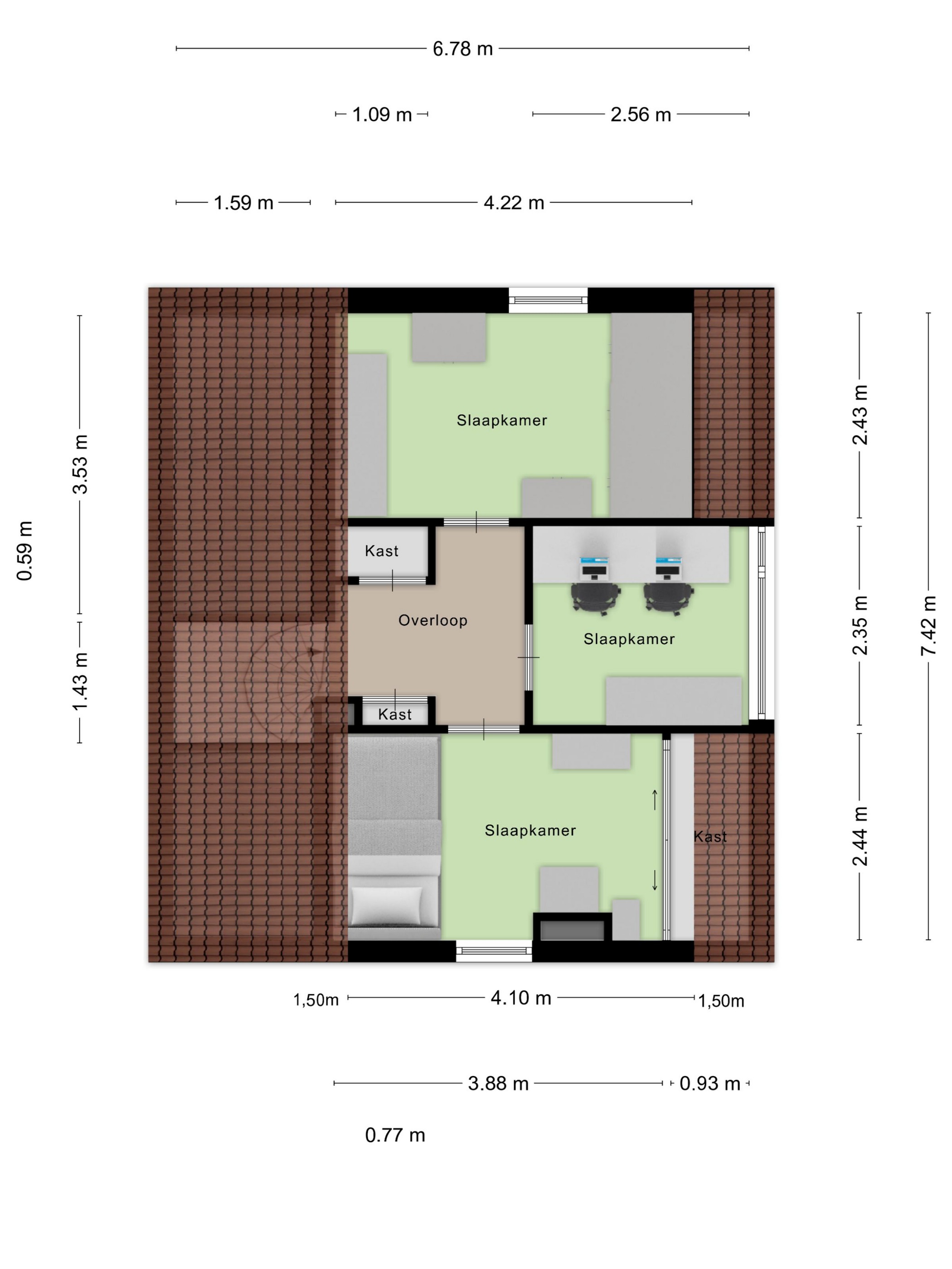3 slaapkamers waarvan de middelste slaapkamer vv. dakkapel met zicht op de watergrang en de slaapkamers rechts vv. inbouwkast.