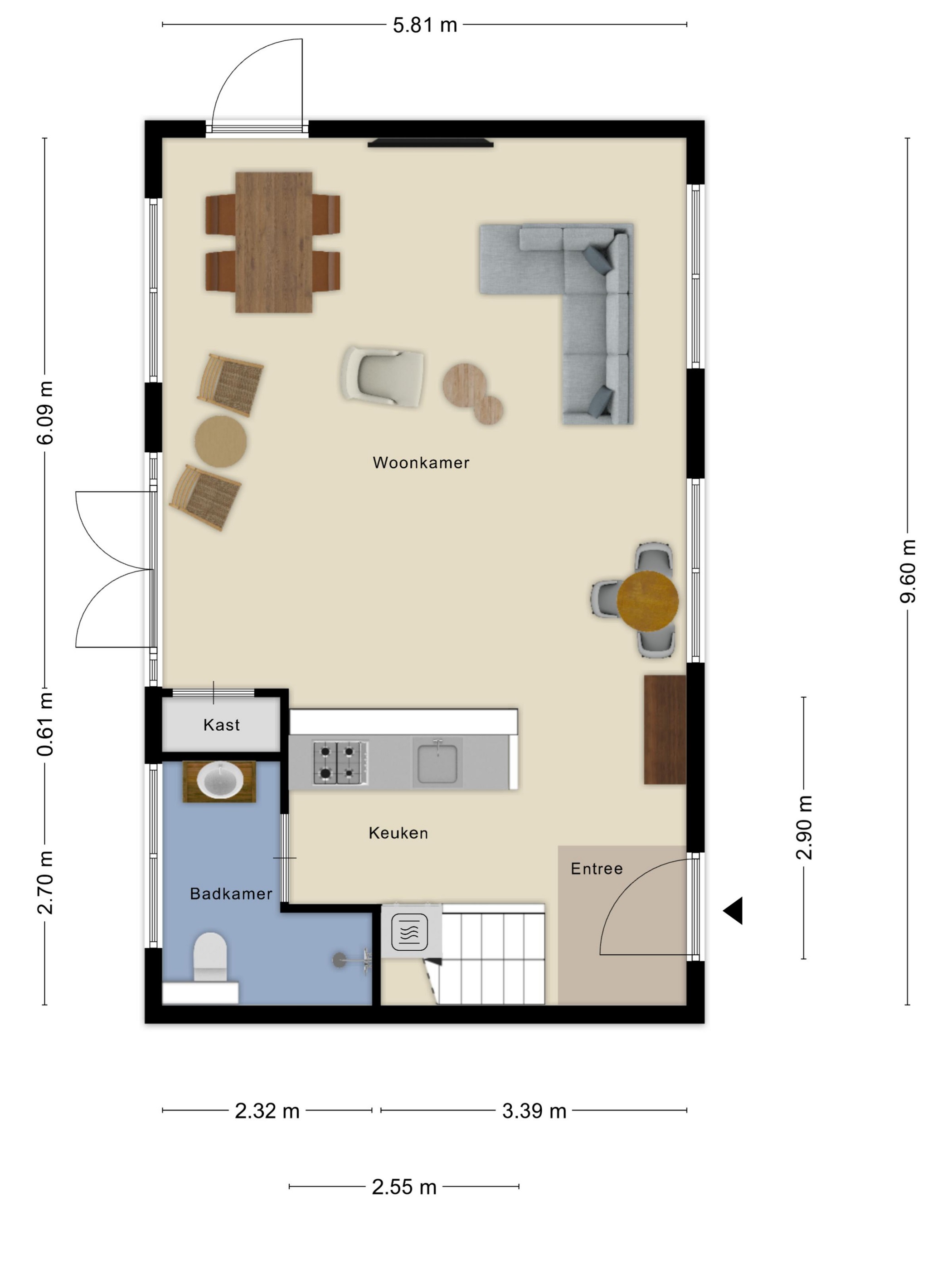 Multifunctioneel en volledig geïsoleerd bijgebouw uit 2016 met volwaardige inrichting voor o.a. gastenverblijf, B&B, zelfstandige kantoor-/praktijk-/werkruimte, etc. Indeling als volgt: