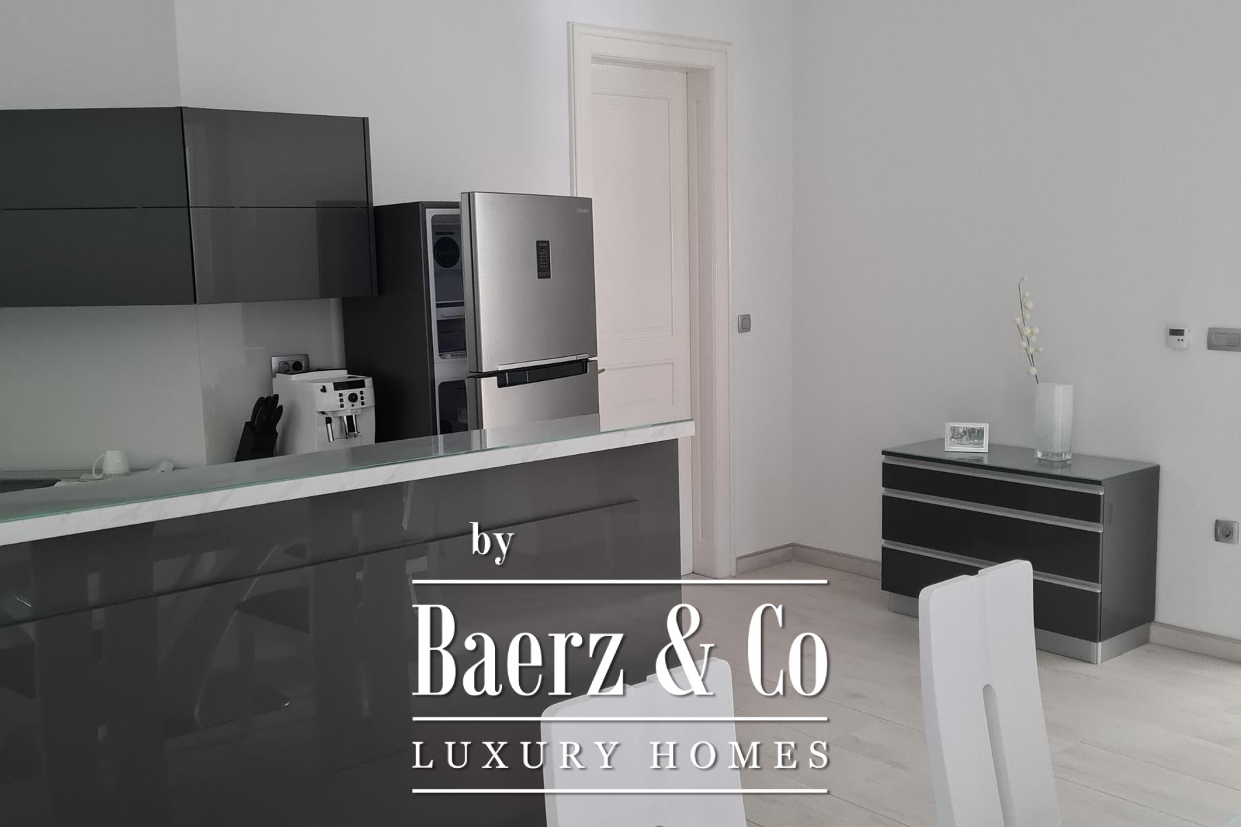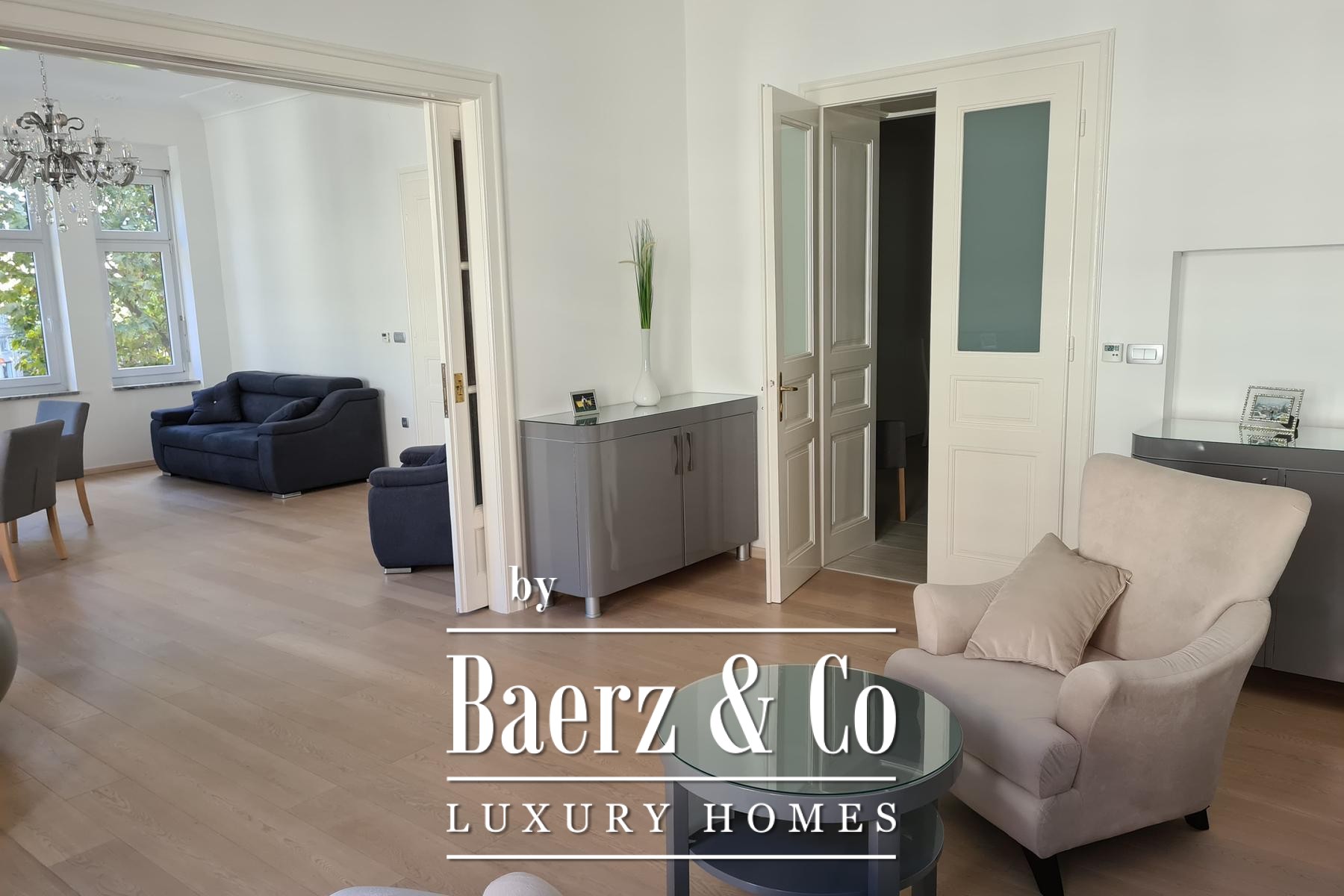 Luxurious three-bedroom apartment of 130 m², located on the second floor of a well-maintained building with an elevator.The apartment is completely renovated, modernly decorated and fully furnished, and has underfloor heating throughout.It consists of an entrance hall, kitchen with dining room, living room,