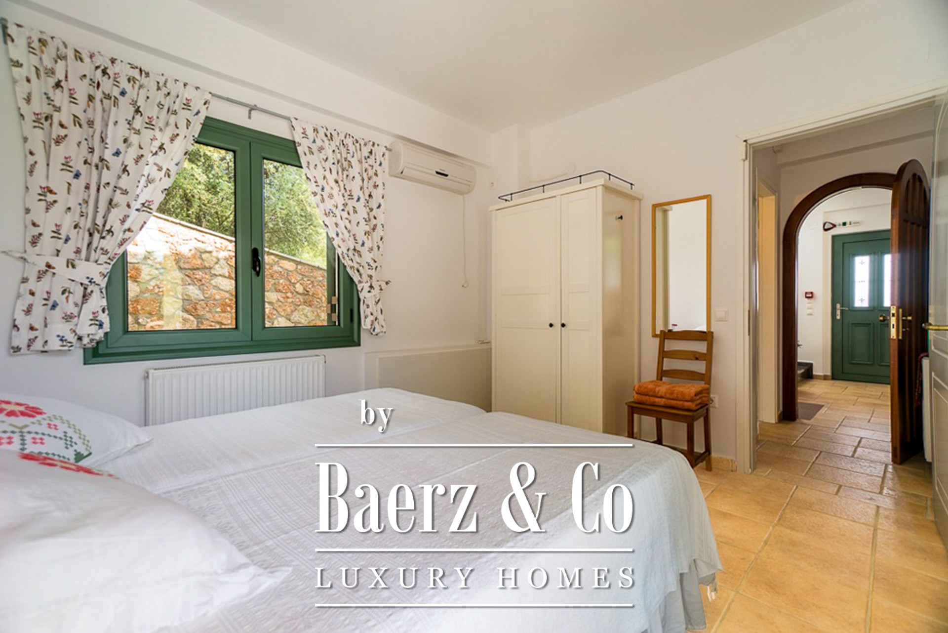 Villa Ellomeno met zeezicht biedt een zeldzame combinatie van privacy, verfijnd ontwerp en toplocatie. Deze villa van 225 m² bevindt zich op een perceel van 4.000 m², omgeven door een olijfboomgaard op slechts 300 meter van zee aan de oostkust van Lefkada. De woning ligt tussen Perigiali en Nikiana en biedt een weids uitzicht over zee richting nabijgelegen eilanden en het vasteland. Passa Beach bevindt zich op loopafstand en zowel Nikiana als Nidri zijn eenvoudig bereikbaar.