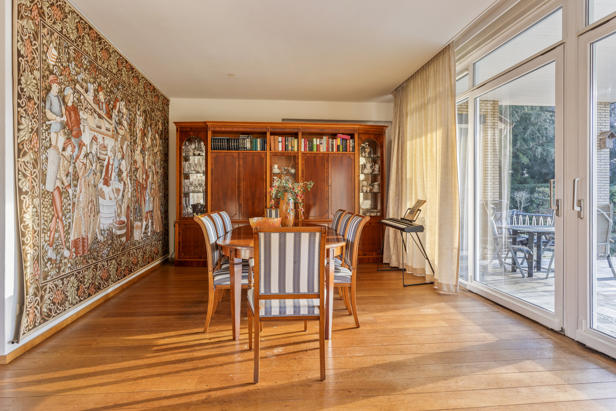 Deze villa, gebouwd in de jaren ’70 en in 2001 stijlvol uitgebreid, kenmerkt zich door strakke lijnen, grote raampartijen en een uniek glas-in-loodpaneel van Hans Morselt. Het resultaat is een woning met ziel, sfeer en hedendaags comfort.