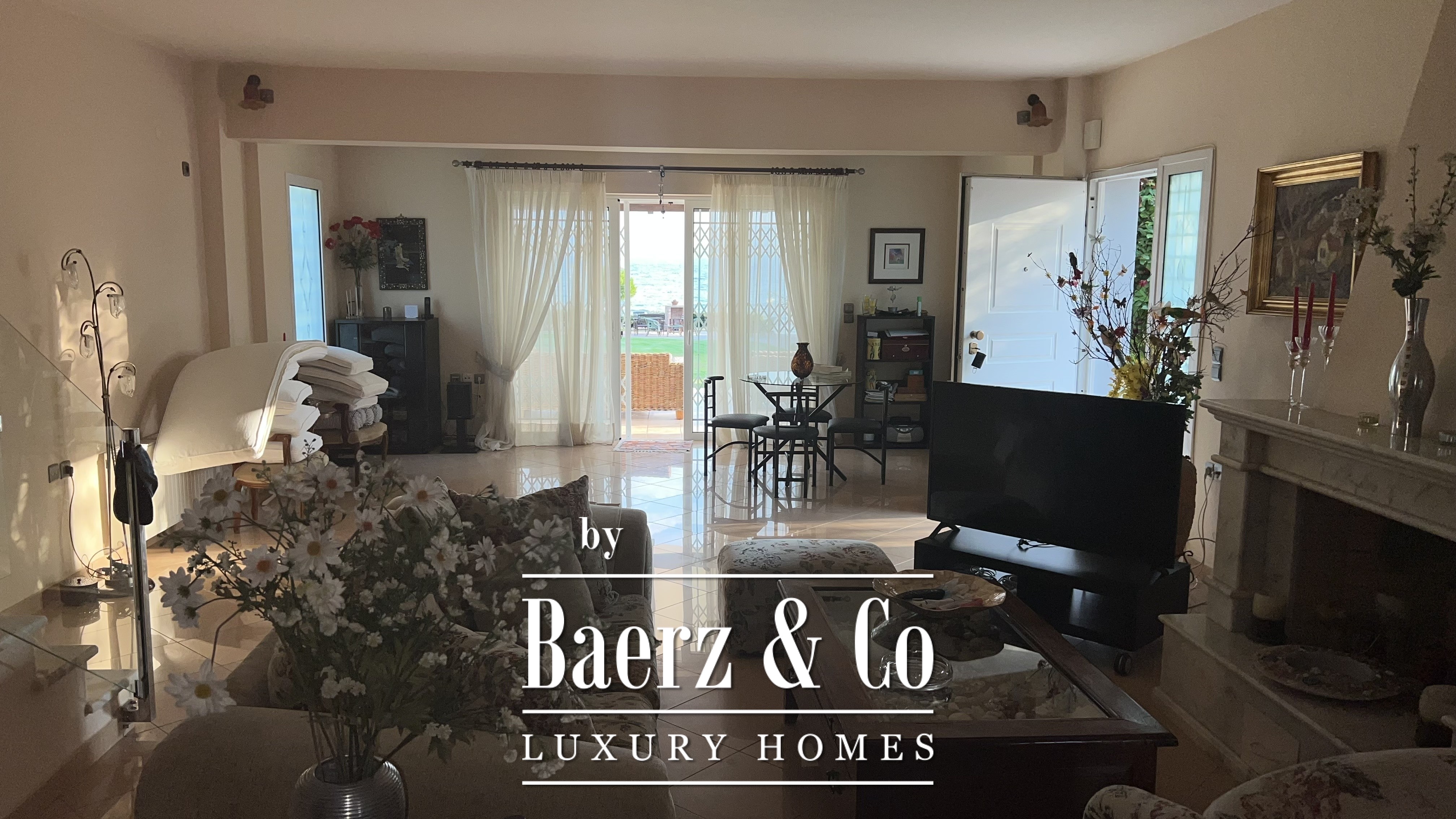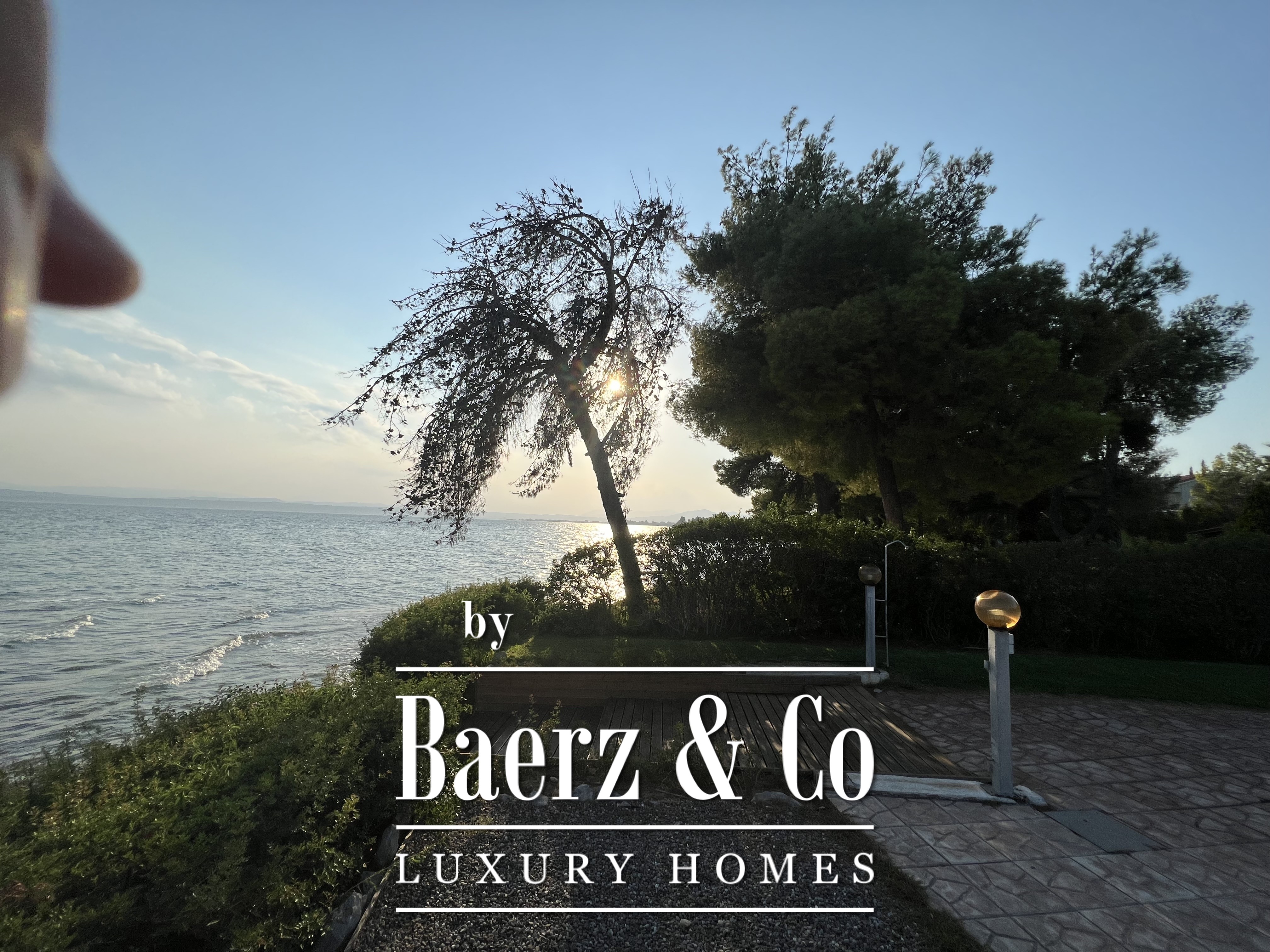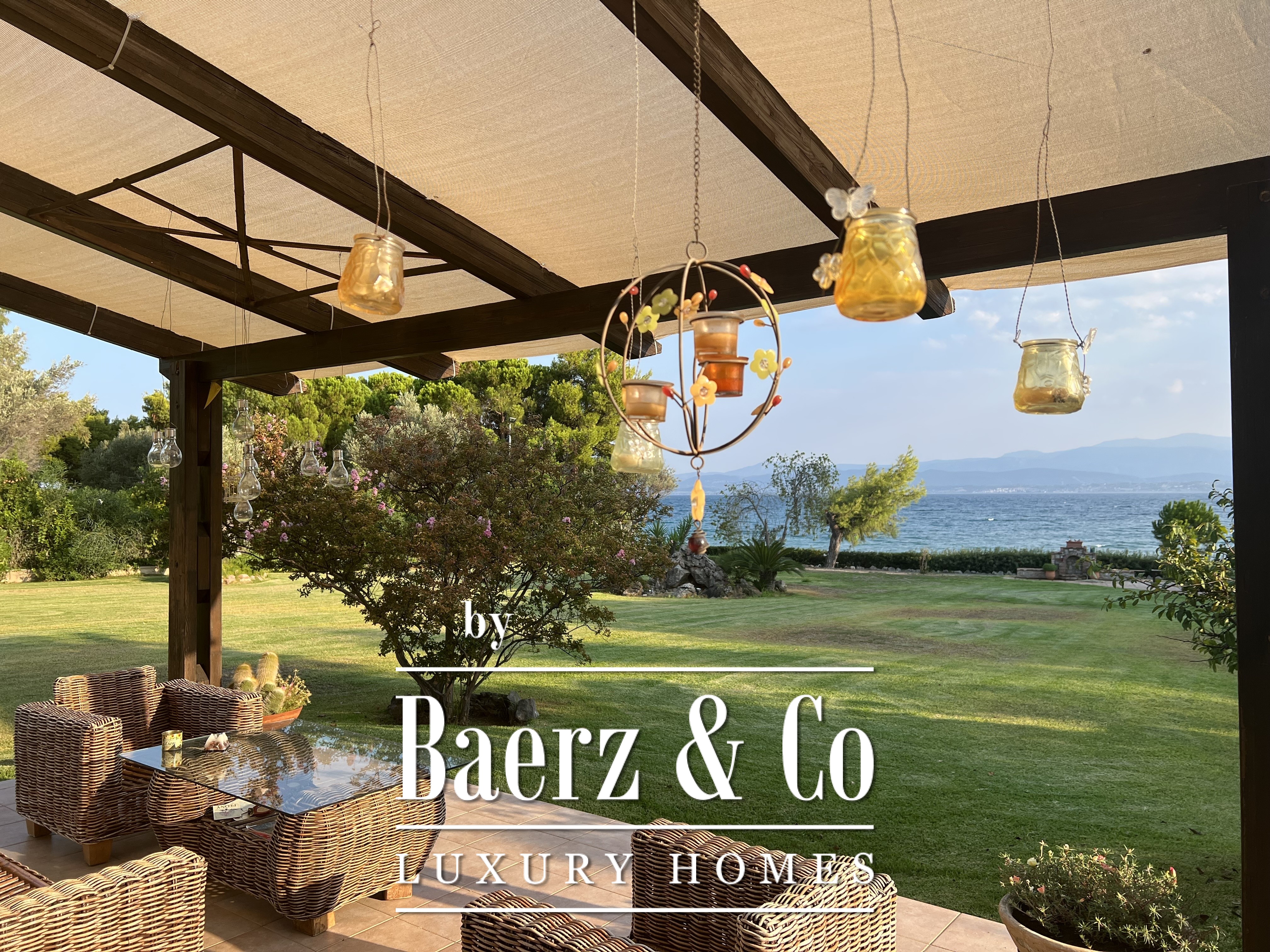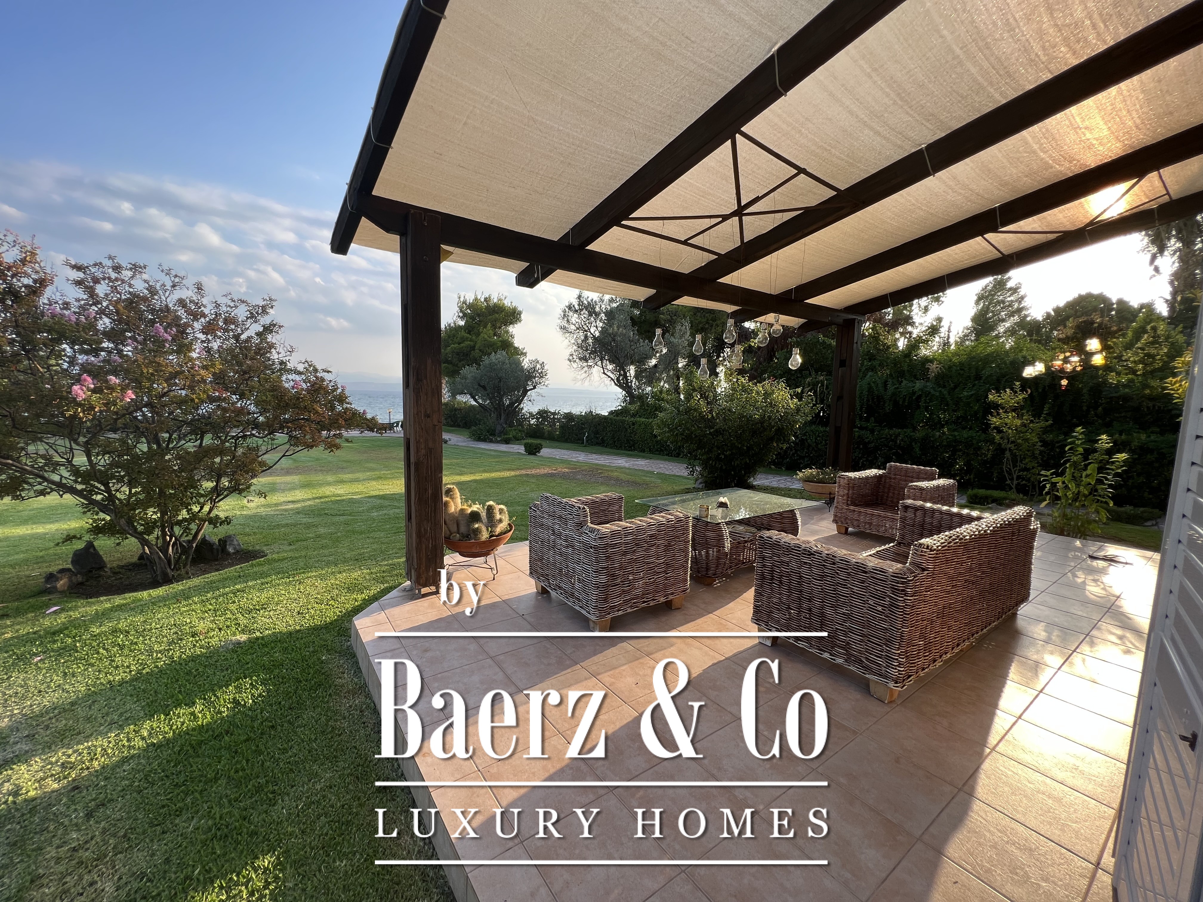 Direct vanuit de tuinen bereikt men het privézandstrand, waar bewoners en gasten rechtstreeks toegang hebben tot het kristalheldere water van de Egeïsche Zee. Dankzij de unieke natuurlijke ligging en romantische kustsfeer heeft het landgoed in het verleden gediend als locatie voor huwelijksrecepties en exclusieve privé-evenementen, wat het potentieel als prestigieuze evenementen- of hospitalitylocatie onderstreept.