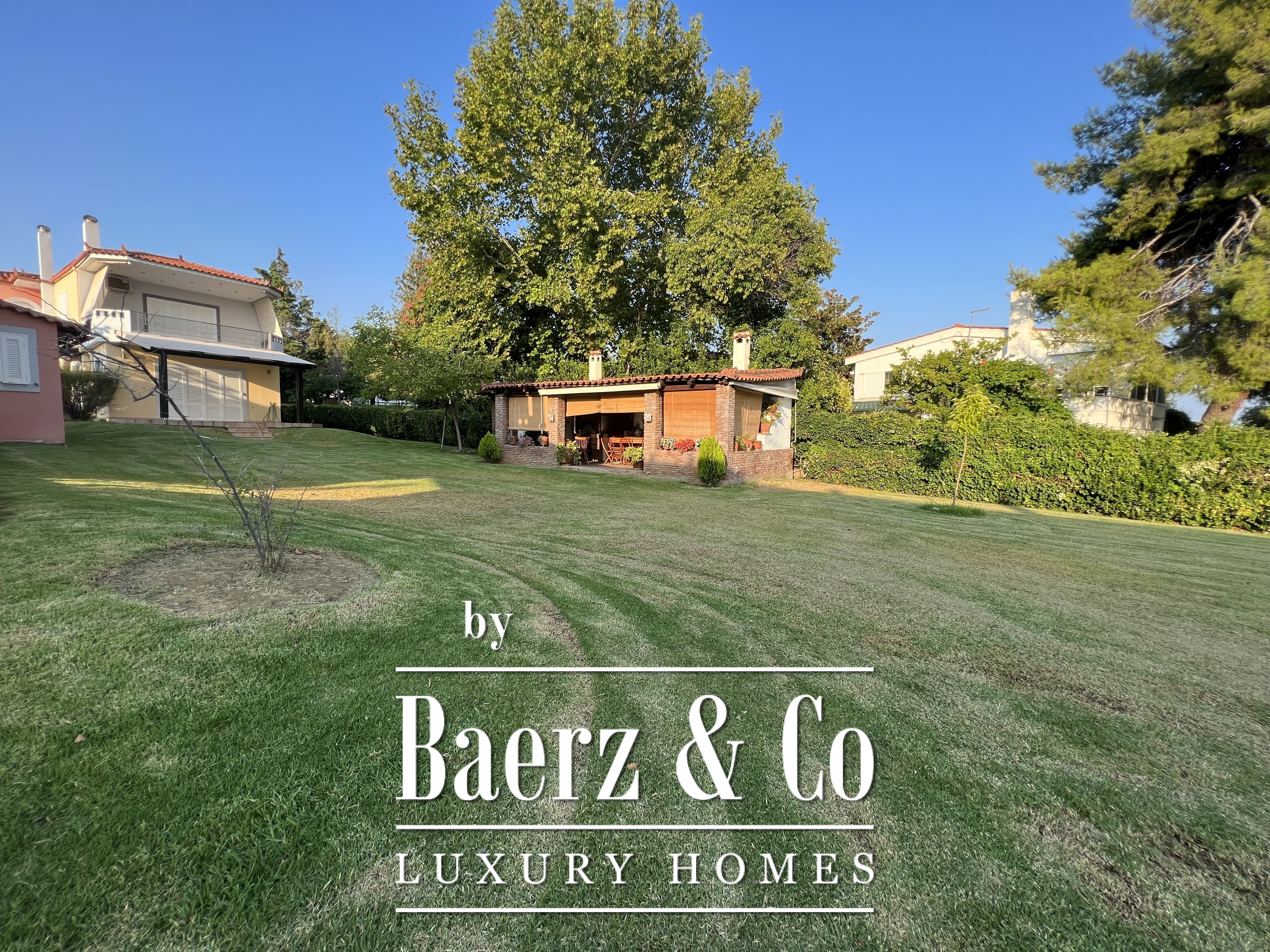 De buitenruimtes van het landgoed zijn zorgvuldig aangelegd om het authentieke karakter van de mediterrane kust te weerspiegelen. Volwassen olijfbomen, palmbomen en kleurrijke bougainville creëren een sfeer van natuurlijke elegantie en privacy. Een privéwaterput verzorgt de irrigatie van de tuinen en draagt bij aan lage onderhoudskosten. Het landgoed beschikt bovendien over een traditioneel overdekt barbecuepaviljoen van circa 50 vierkante meter, perfect ontworpen voor exclusieve bijeenkomsten en sociale evenementen aan zee.