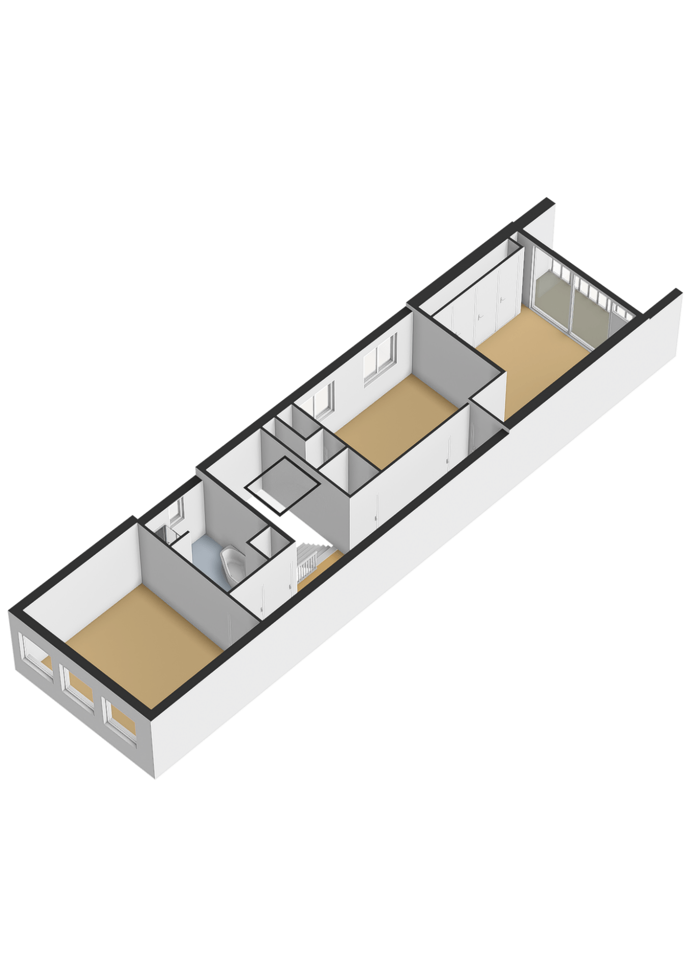tussenhal met toiletruimte (met zwevend toilet, urinoir en wastafel), inpandige berging, voorkamer met zicht op de Haven en berging (ideaal voor het realiseren van slaapkamer met badkamer).