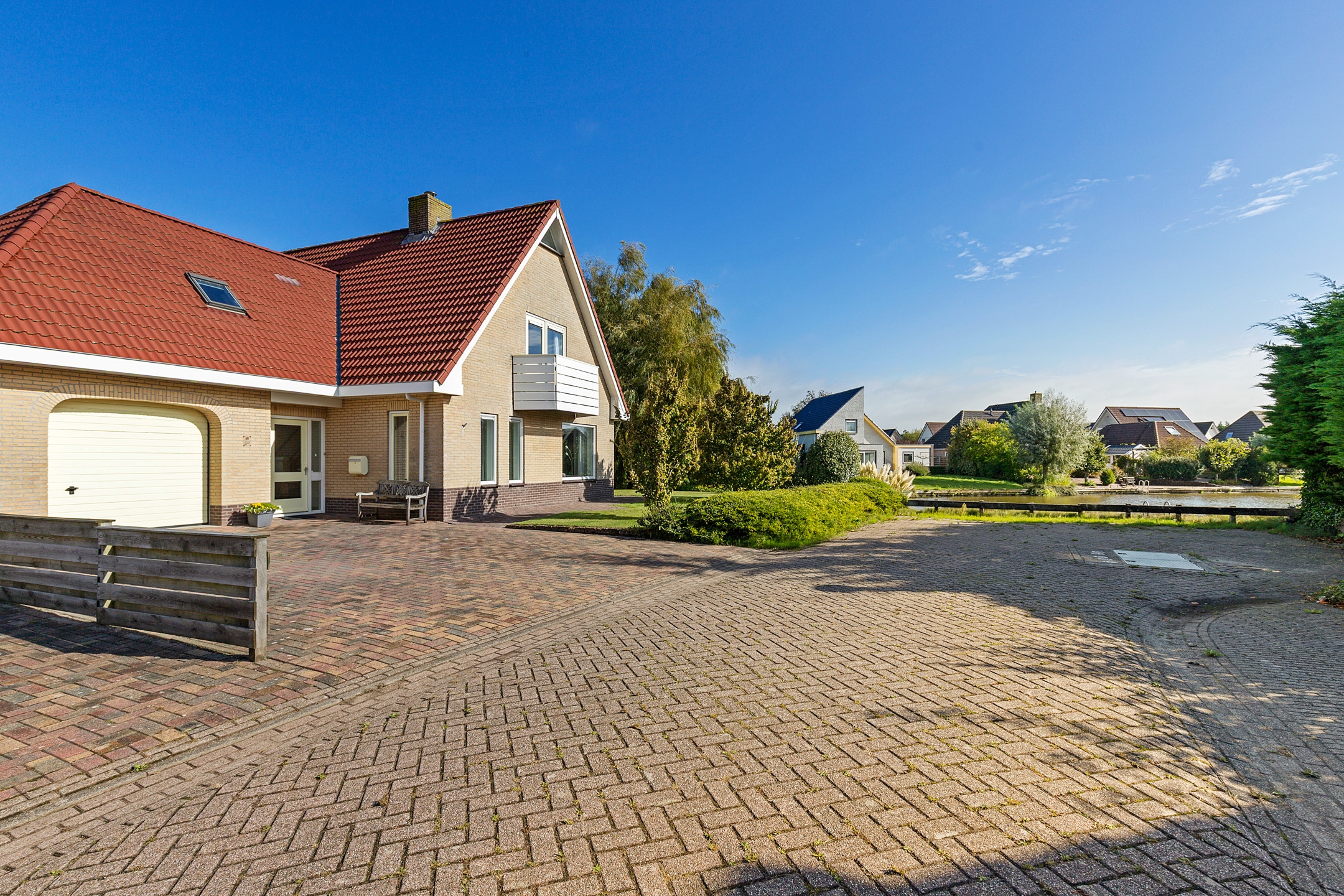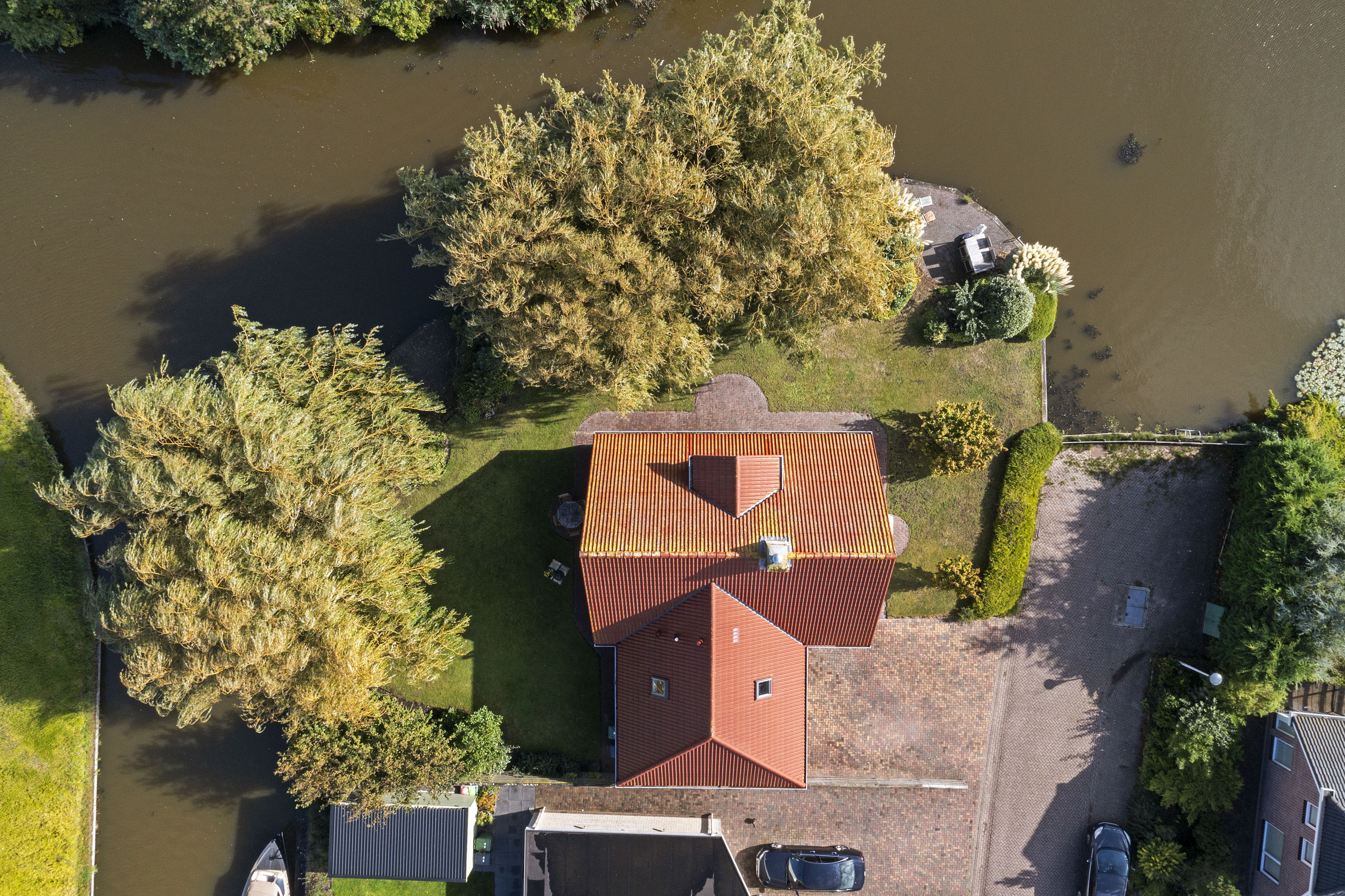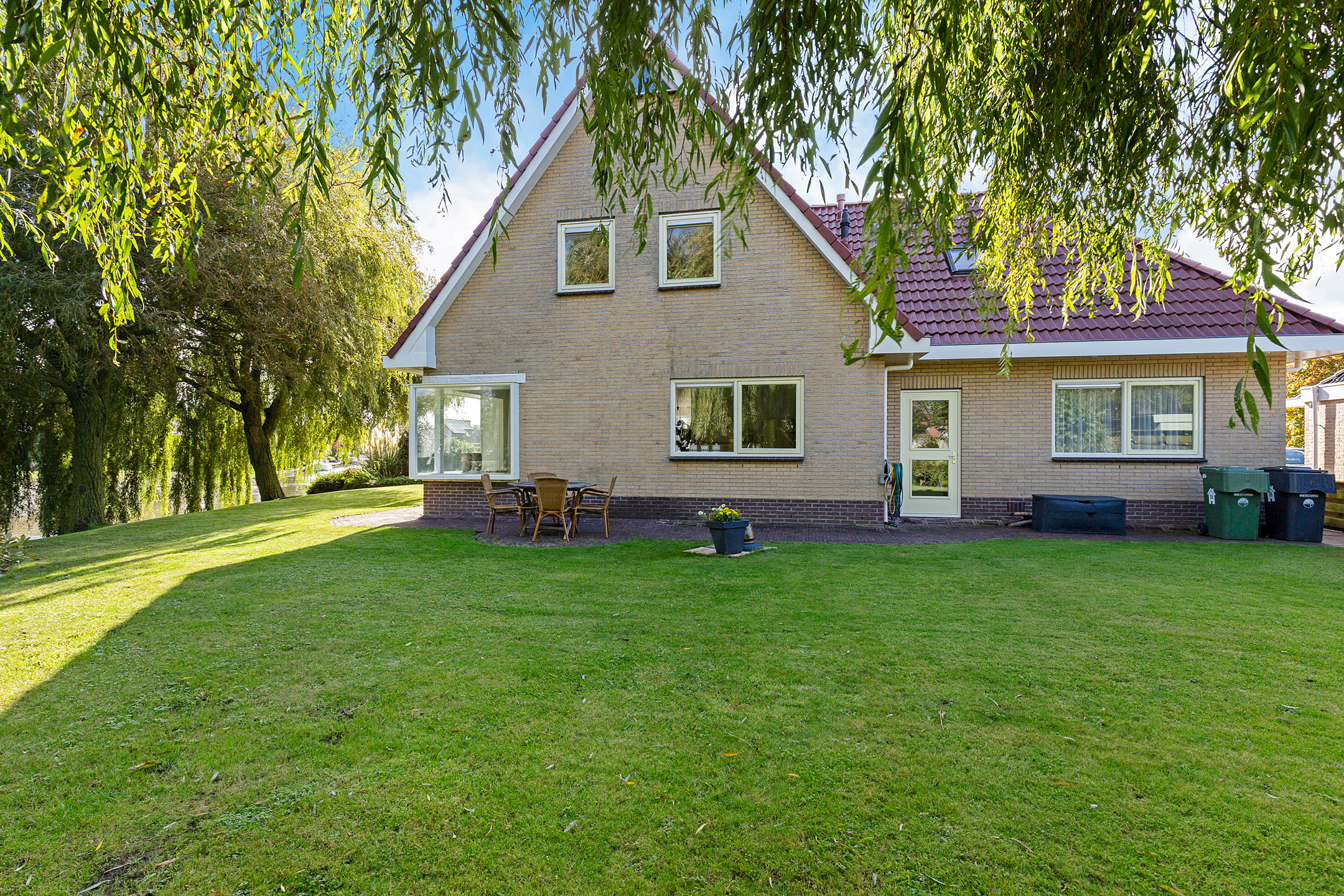 Er zijn verder diverse zon- of schaduwterrassen rondom de woning en aan het water waar je eindeloos kunt genieten van de fijne vrije tuin.