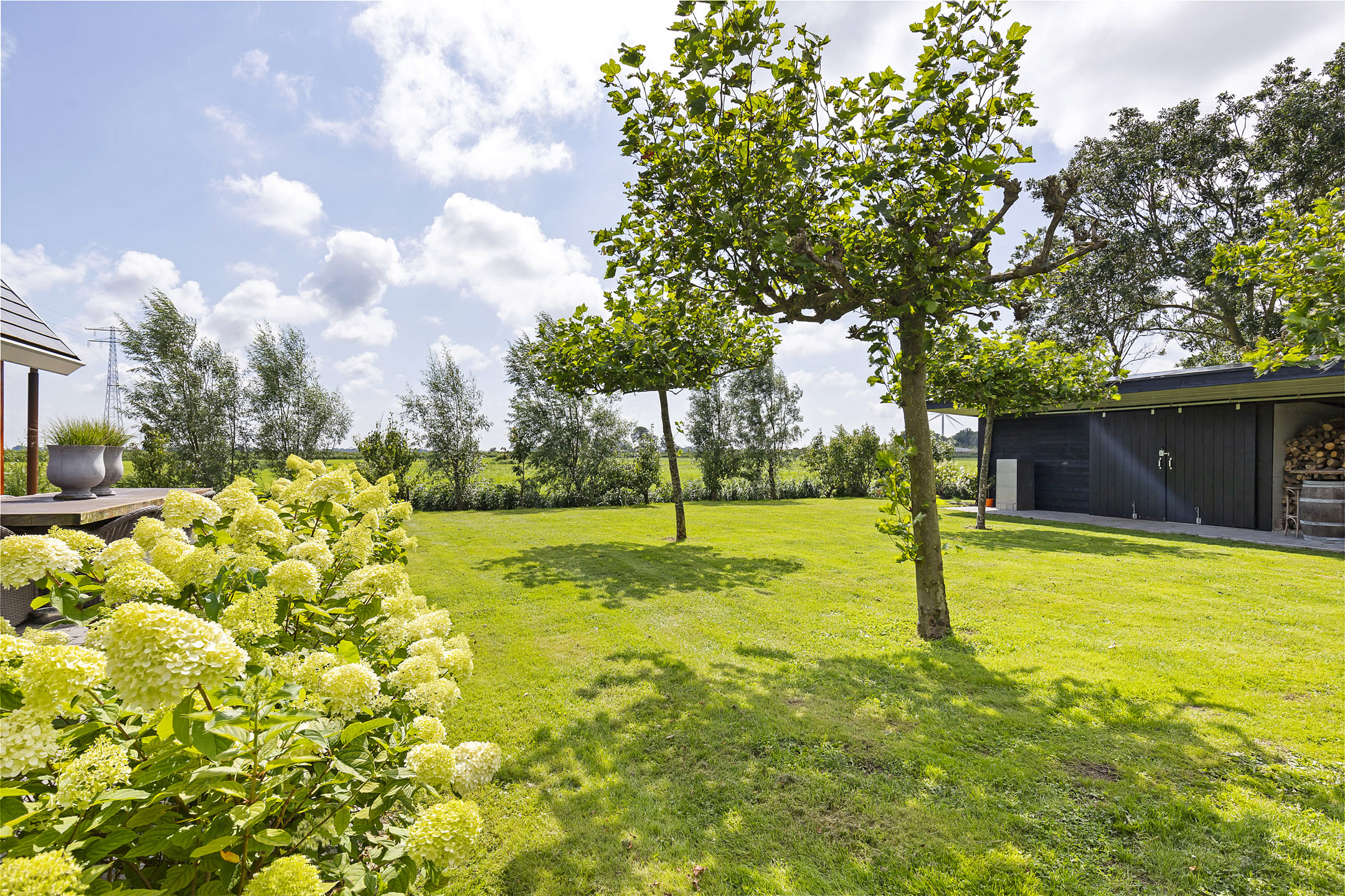De tuin direct om de woning heeft meerdere terrassen in zon- en schaduw, en biedt vanuit alle hoeken mooie vergezichten over afwisselend natuurgebied en de voorbijvarende zeilschepen, plezierjachtjes en beroepsvaart. De luwe carré-tuin met de 4 lindes, prachtige verlichting en buitenkeuken biedt het summum van privacy.