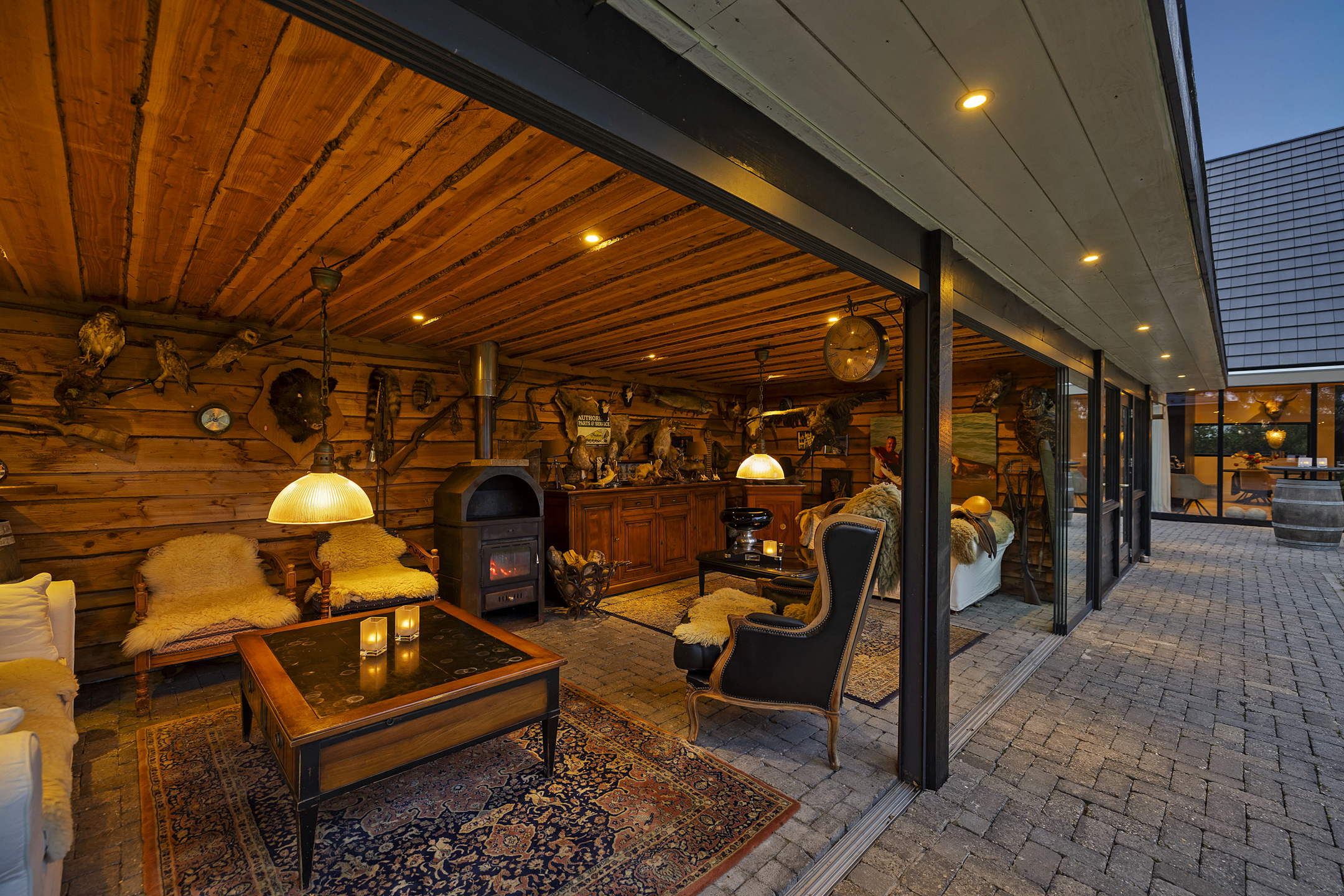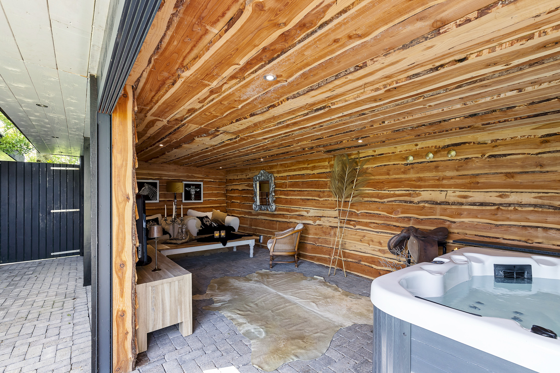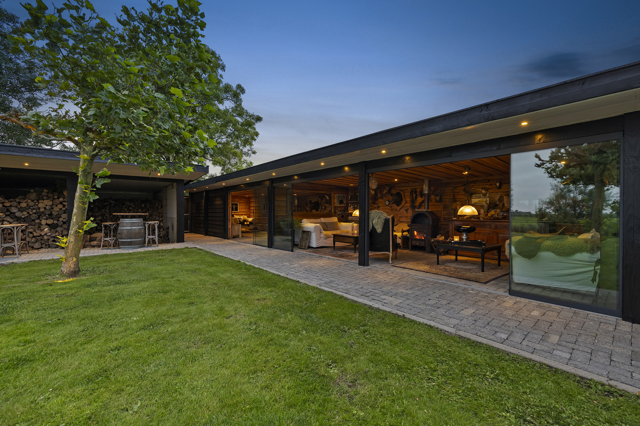 De wellness en jachthut zijn aan de binnenkant rustiek betimmerd en voorzien van houtkachel, lichtspots, jaccuzi, sauna, stoomdouche, stroom en water. Een fantastische ruimte die de woonbeleving maximaliseert en uitnodigt om met vrienden bijeen te komen.