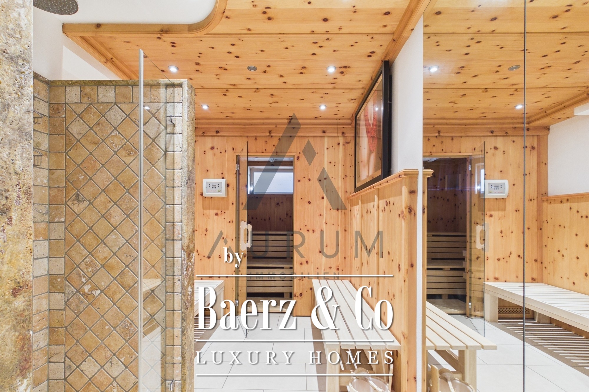 De indeling biedt een evenwicht tussen privacy en openheid. De master suite beschikt over een inloopkast en een badkamer afgewerkt met travertin, waardoor een privé toevluchtsoord ontstaat. Twee extra slaapkamers, elk met toegang tot een terras of tuin, delen een tweede badkamer op de benedenverdieping. Wellness is hier vanzelfsprekend, met een sauna op de begane grond, een aparte douche en een ontspanningsruimte.