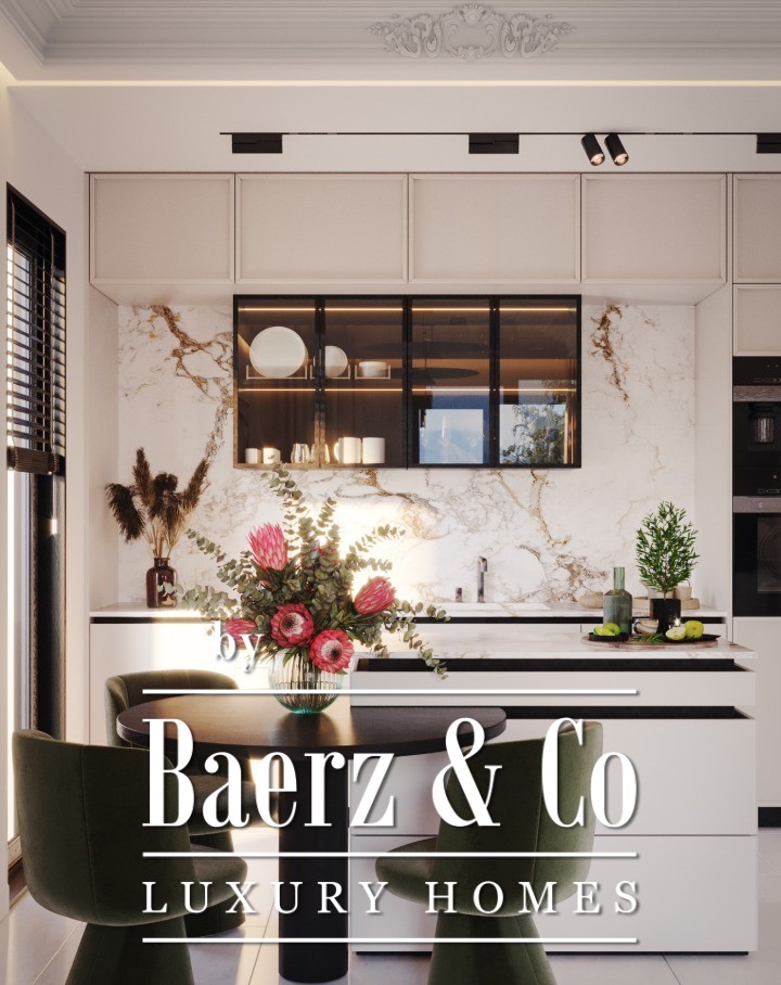 The project consists of 2 buildings. Both buildings have 2 floors, while this apartment is on the 1st floor. The project has a pool. It is connected by an asphalt road to the main road. This project will be finished in December 2027.