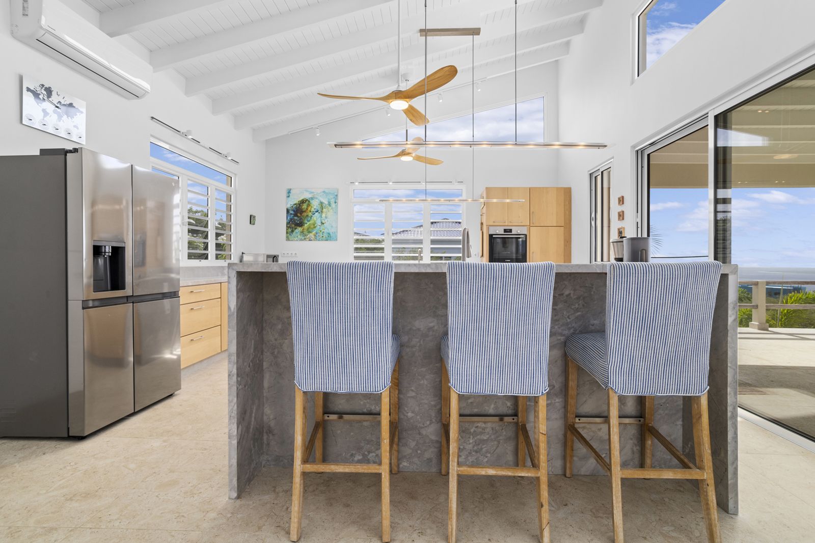 Met geen bebouwing achter de woning en een weids, panoramisch uitzicht over de Caribische Zee biedt deze villa een uitzonderlijk gevoel van privacy en rust. De horizon is hier geen detail, maar een blijvende waarde.