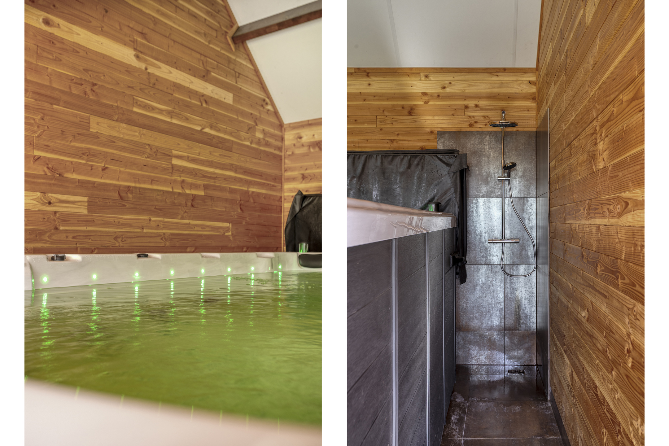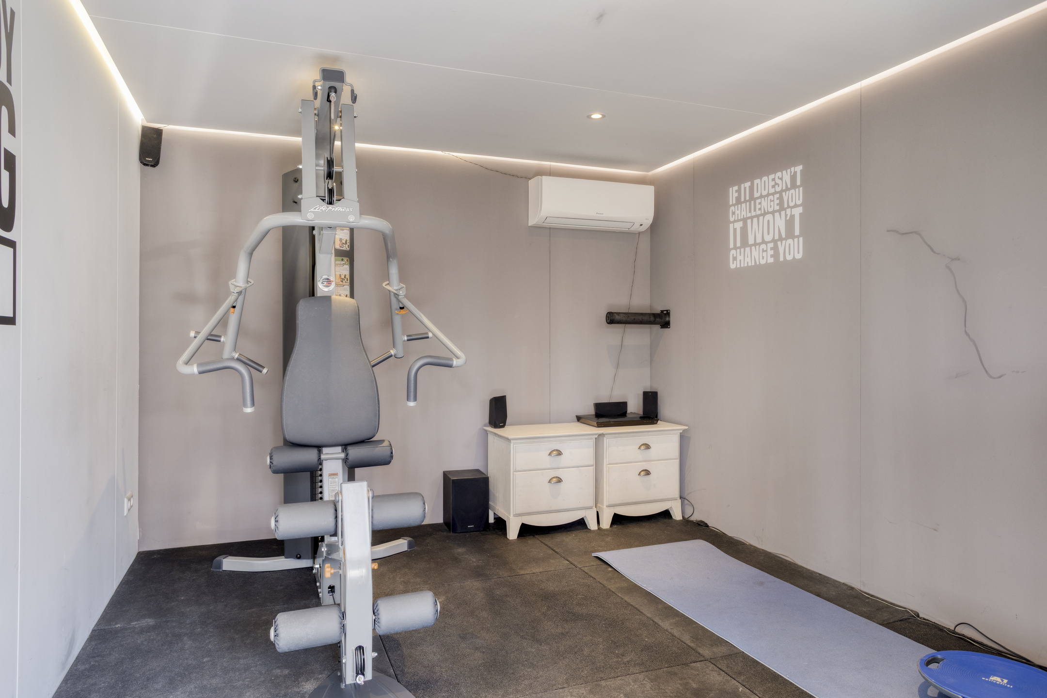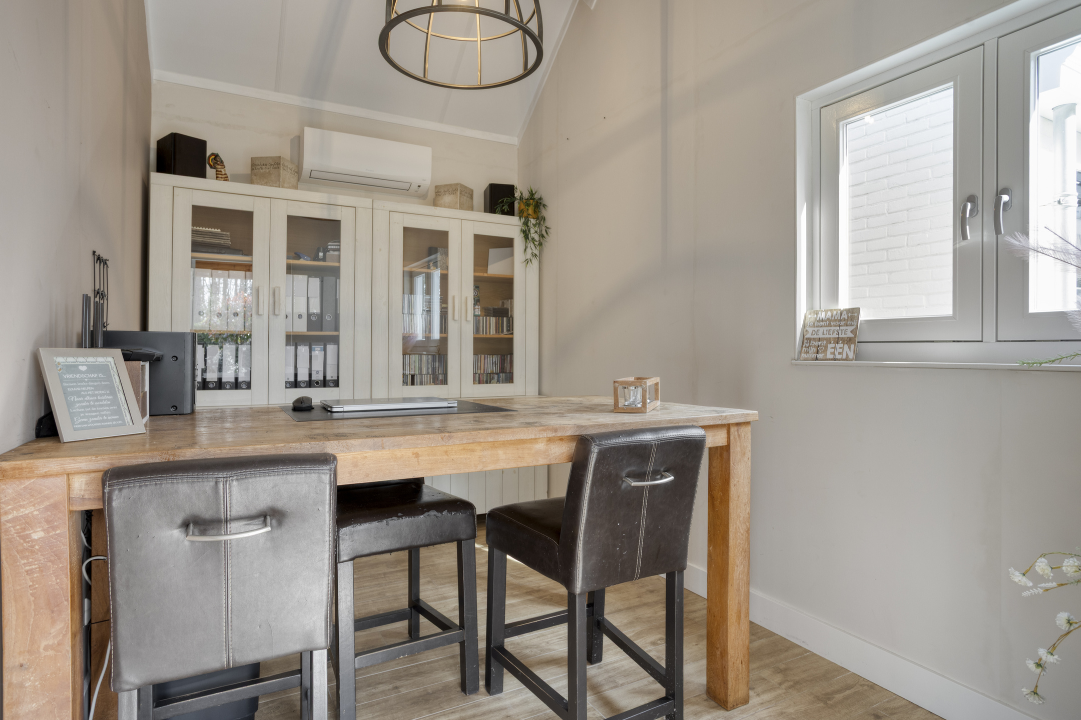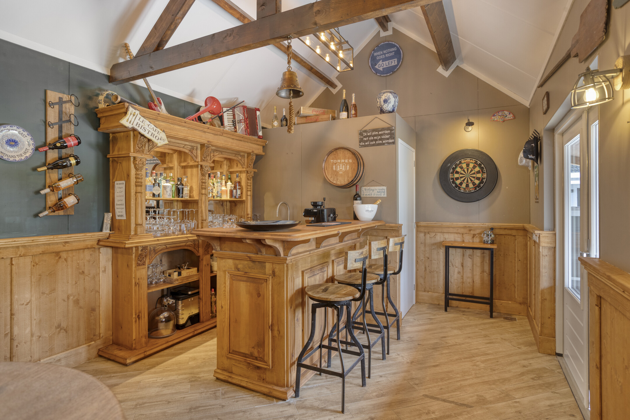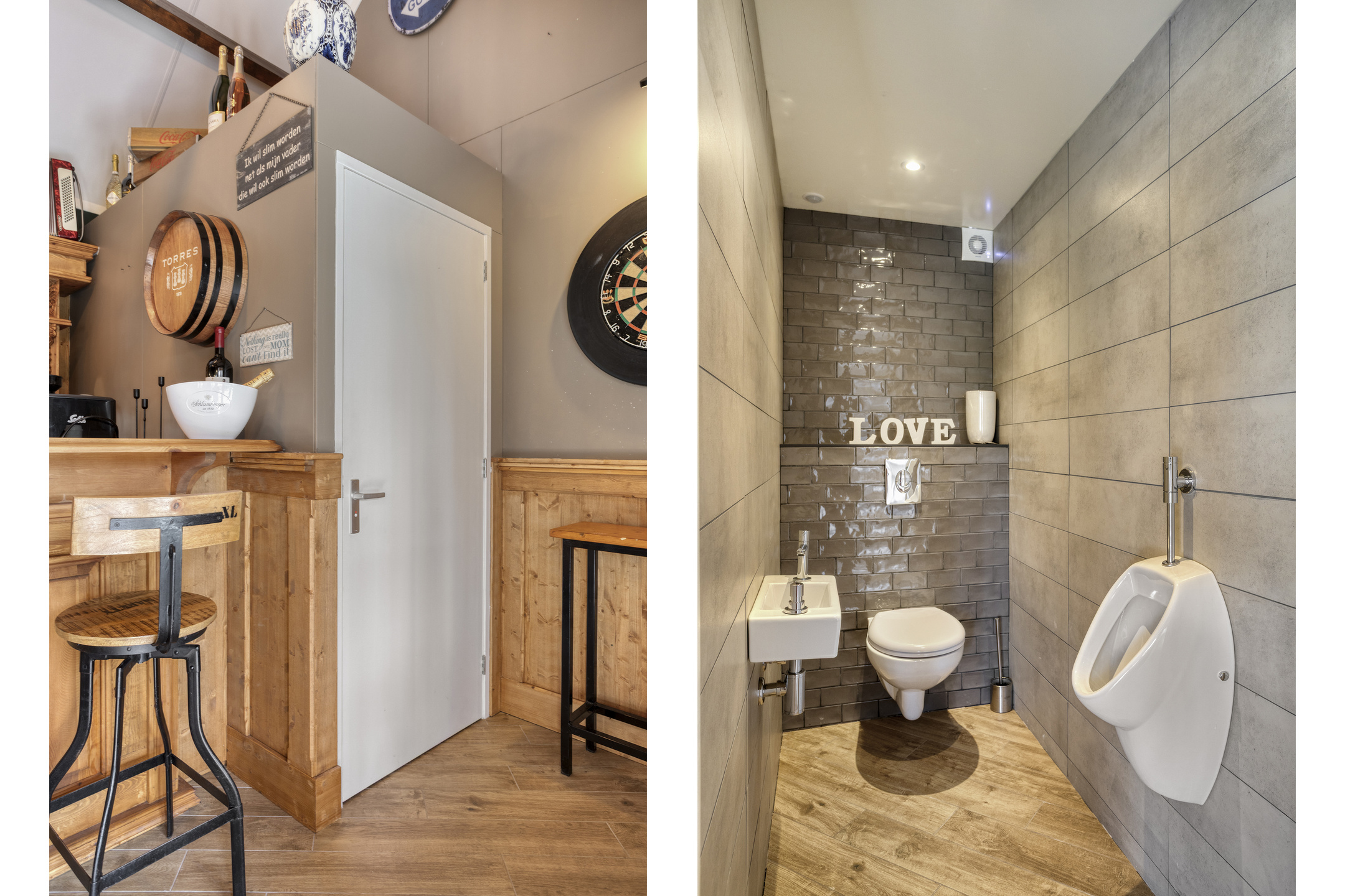 Zo is een kantoor / thuiswerkplek aanwezig, een open deel met luxe zwemspa welke achterblijft (vv. tegenstroming t.b.v. training of ontspanning), bargedeelte met bar, drankkoeling en separaat toilet, fitnessruimte met airconditioning en een (fietsen)berging met tussengroepenkast en bergzolder t.b.v. extra opslag. Mocht u toch een andere indeling of gebruik wensen is het bijgebouw uiteraard naar eigen visie in te delen.