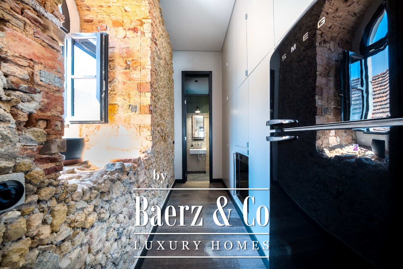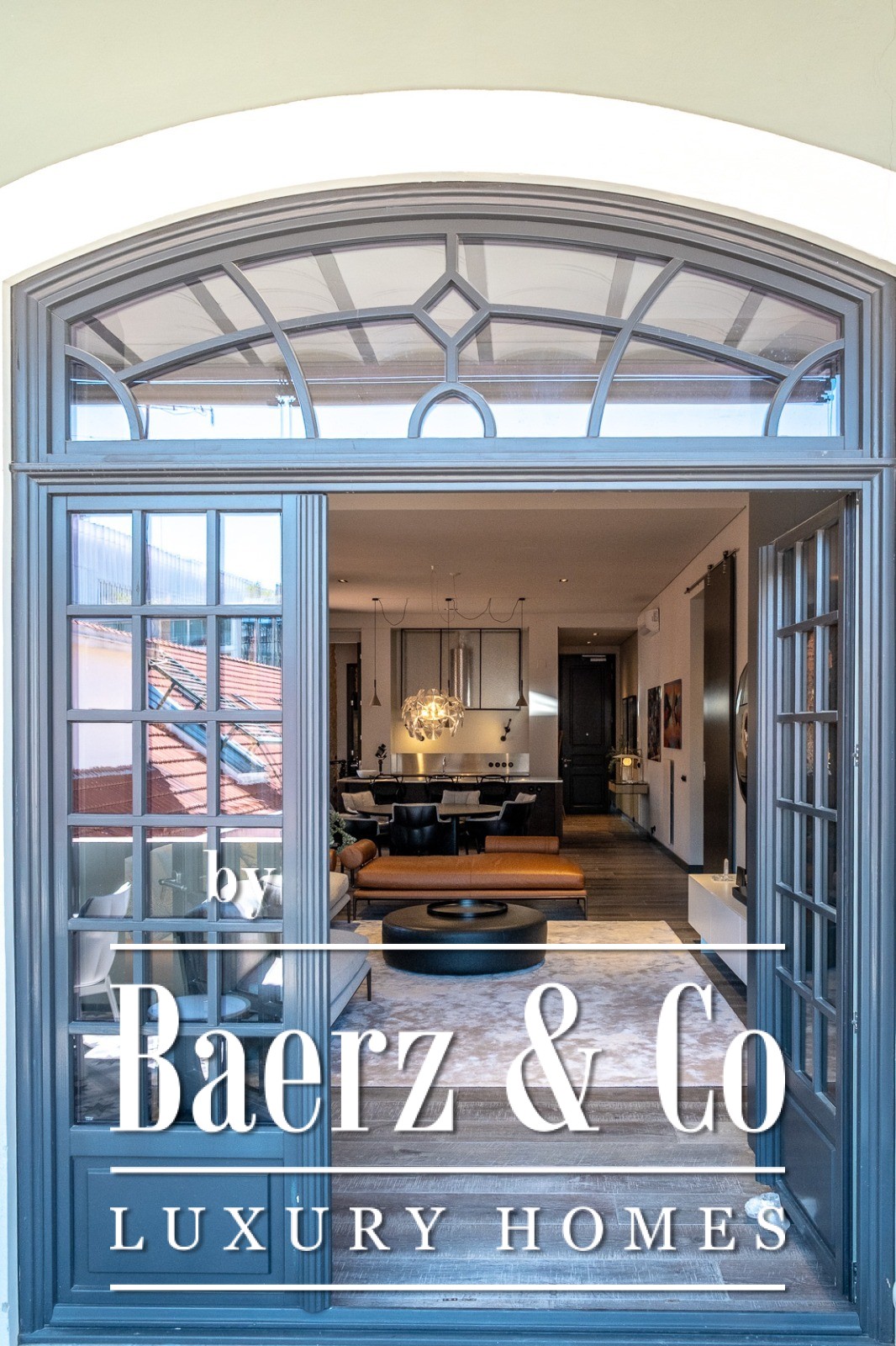 Located on a quiet cul-de-sac in Cais do Sodré, one of Lisbon’s most vibrant and historic neighborhoods, this 173 m² two-bedroom apartment offers a loft-style design with a distinct contemporary touch. Set on the second floor of a 19th-century building with elevator access, it underwent a full renovation in 2019 with meticulous attention to detail and high-quality materials.The generous living area impresses with 3.7 m high ceilings, a striking 14 m exposed stone wall, and large arched windows that fill the space with natural light thanks to its south and east orientation. The kitchen is seamlessly integrated with the living room, combining design and functionality with stainless steel countertops, oak cabinetry, and statement lighting.The living experience extends